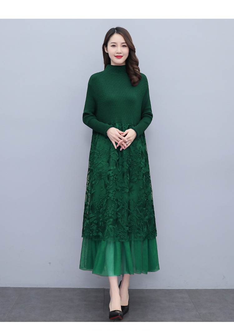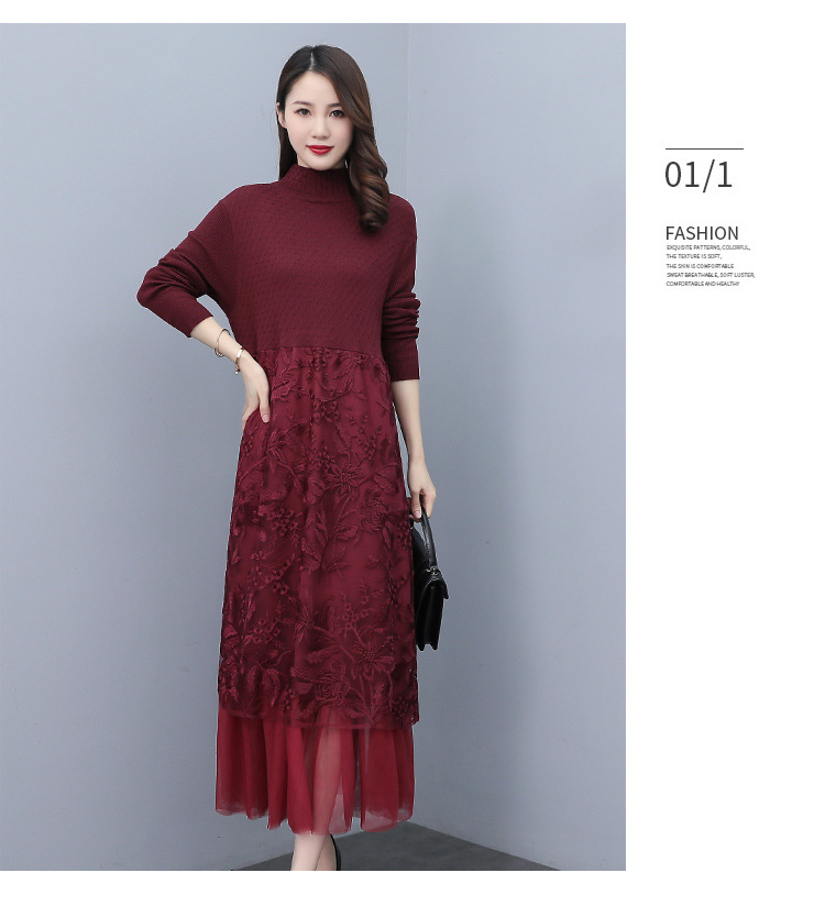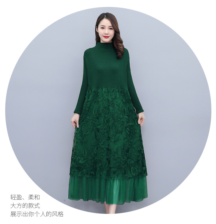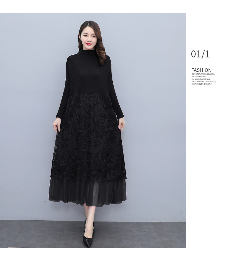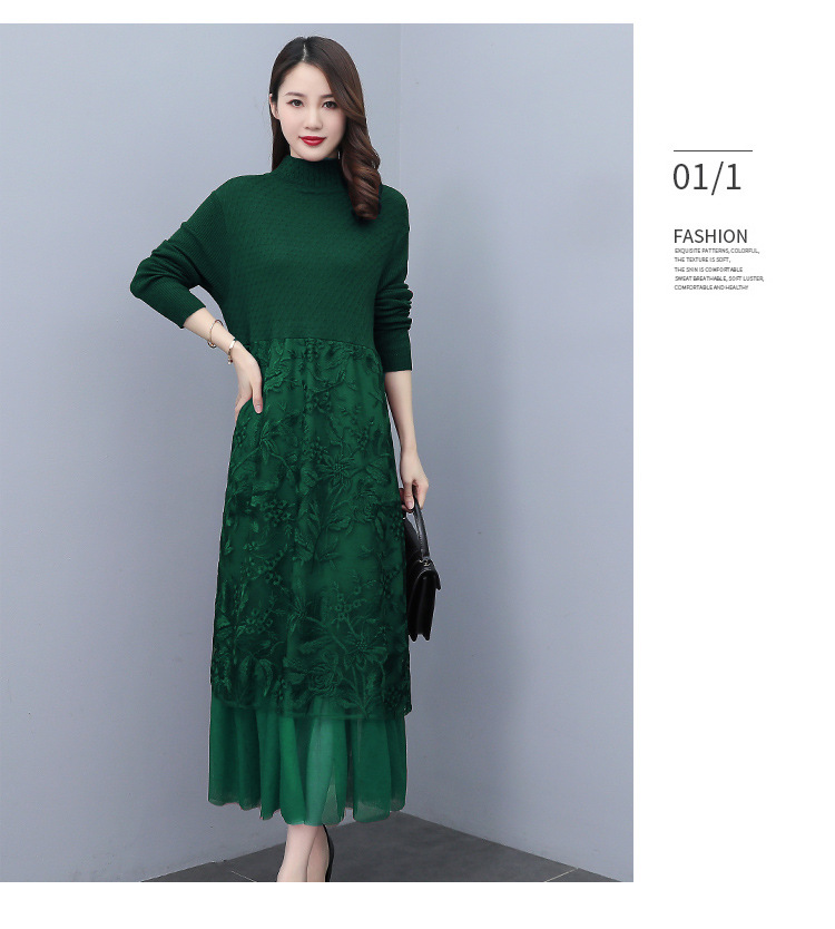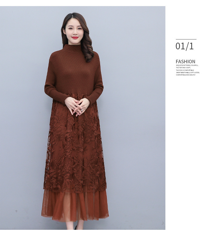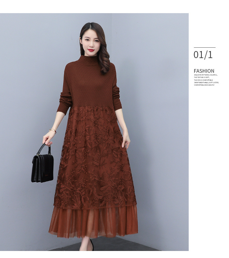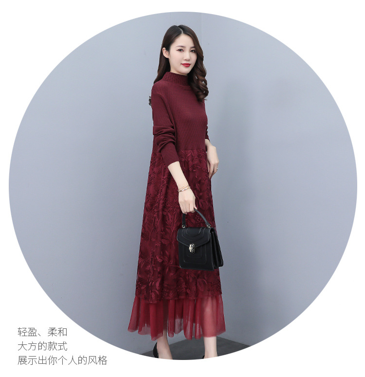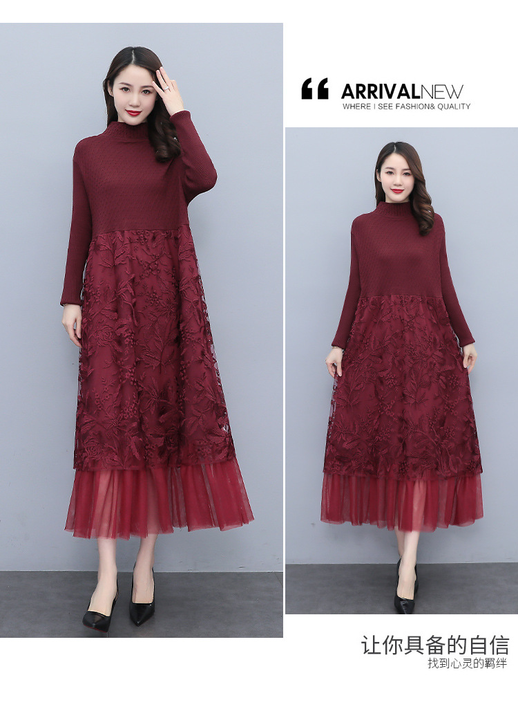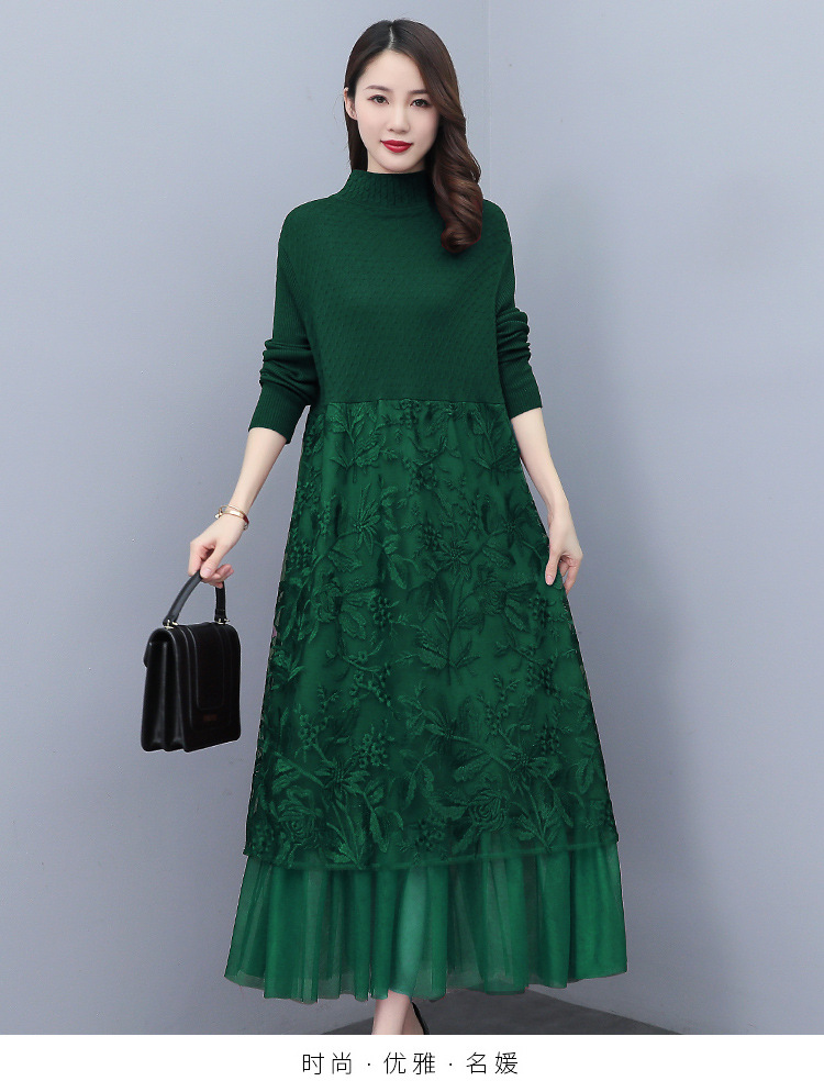HR WX28589春新款针织连衣裙蕾丝显瘦网纱减龄配大衣