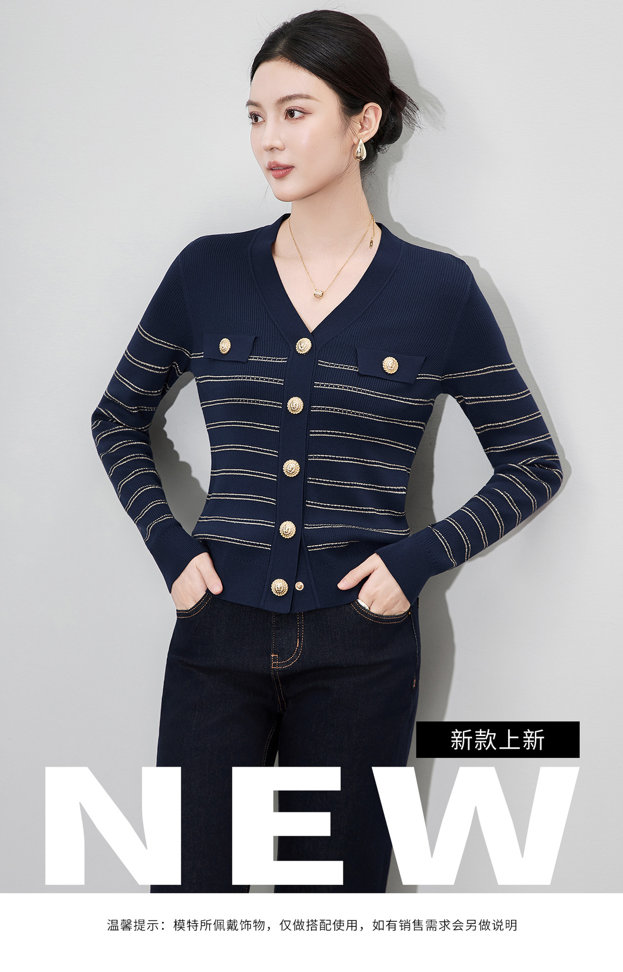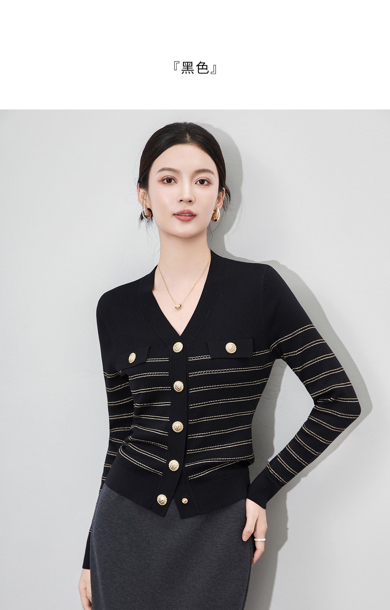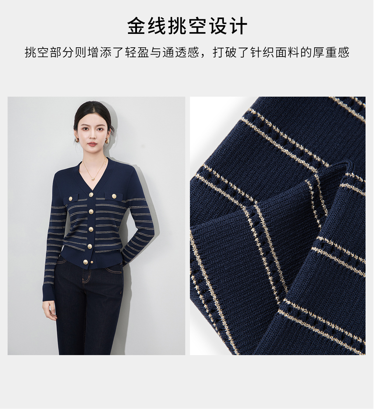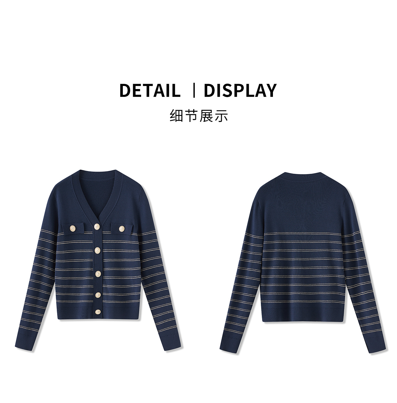 「高货wl」全新升级【铂金会员220/天猫299/差价79】(52529)洛诗琳气质小香风针织衫2025秋冬金线曲珠条纹开衫外套女