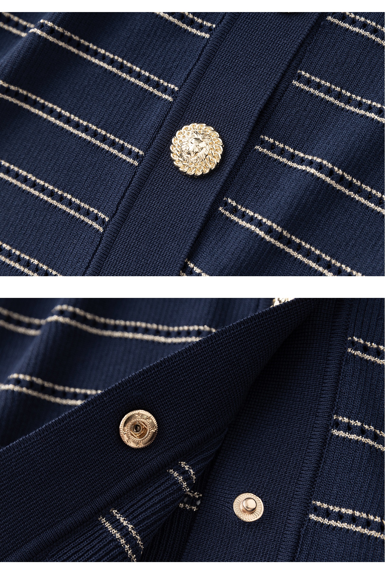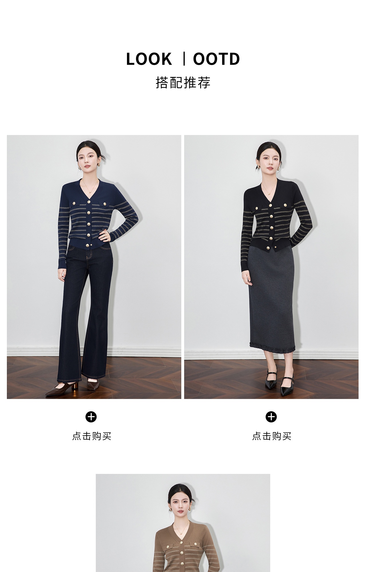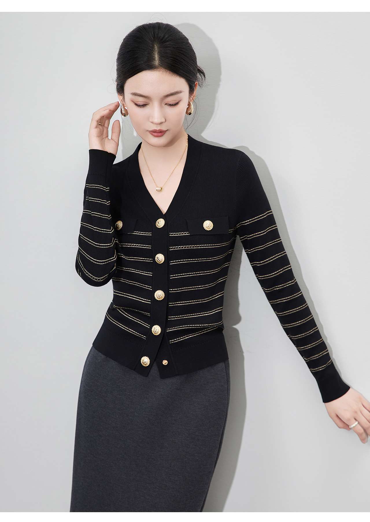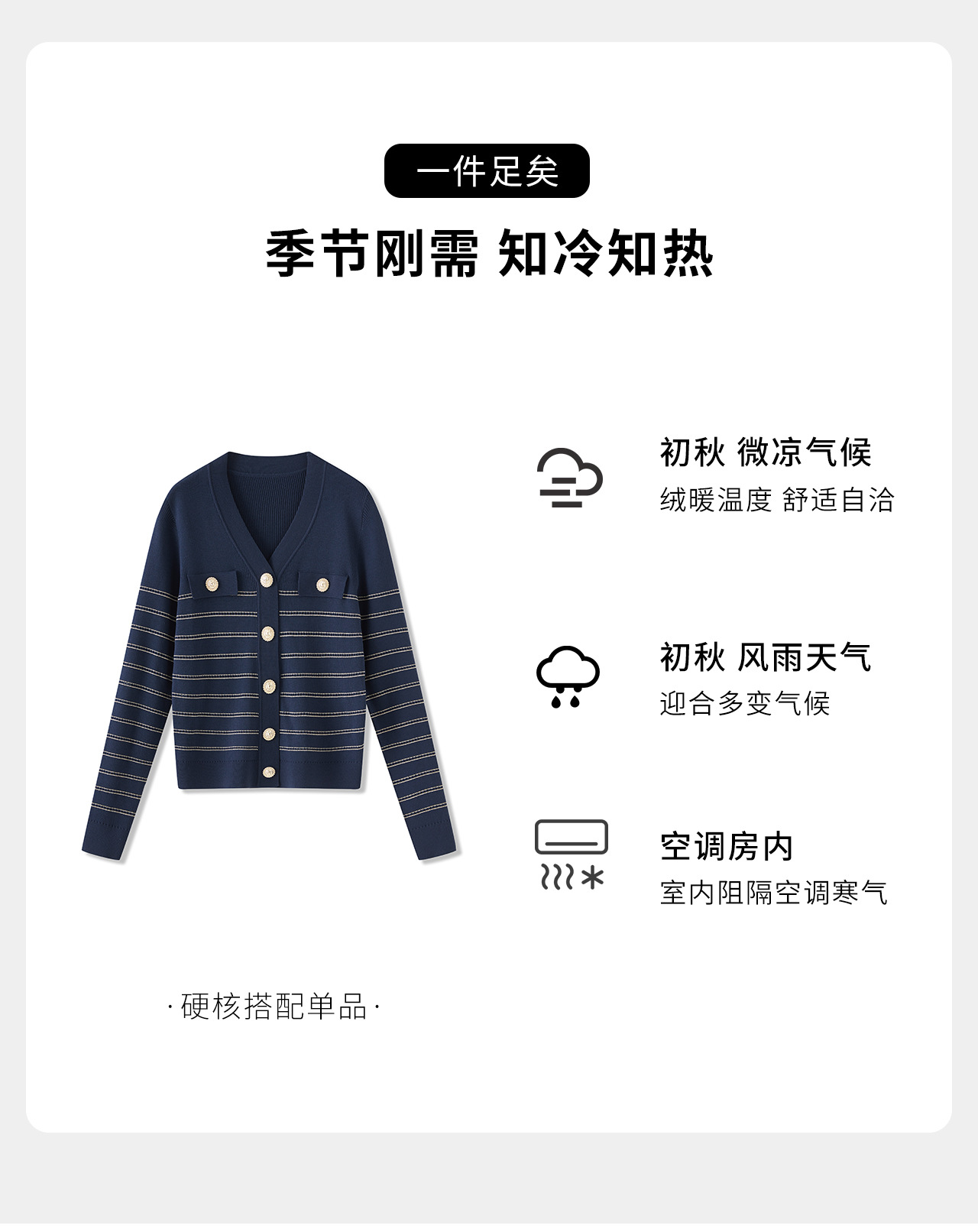 「高货wl」全新升级【铂金会员220/天猫299/差价79】(52529)洛诗琳气质小香风针织衫2025秋冬金线曲珠条纹开衫外套女