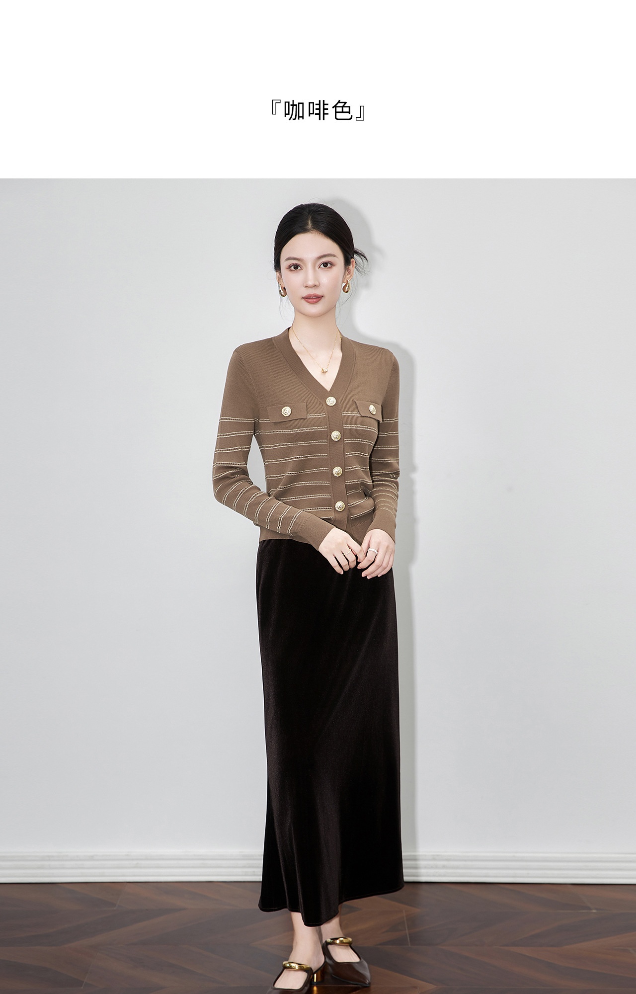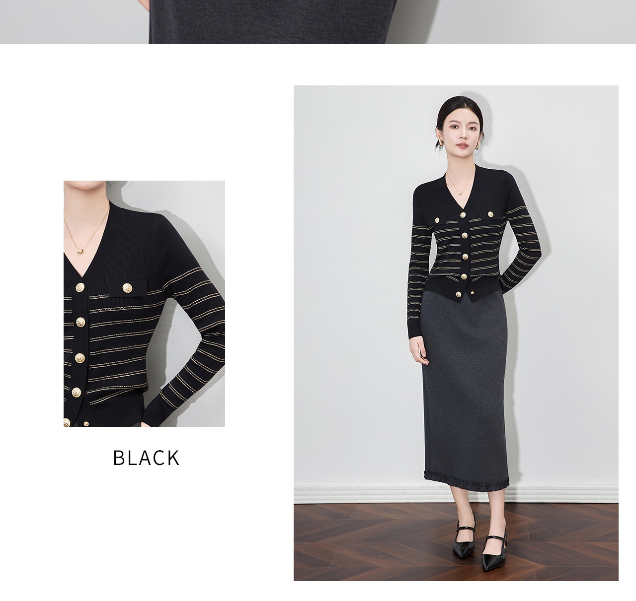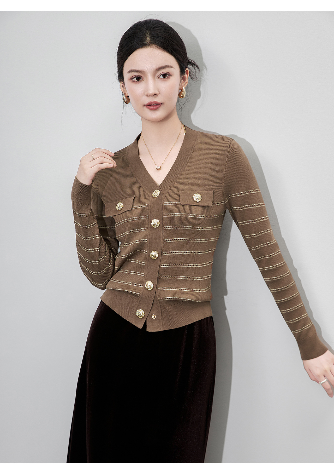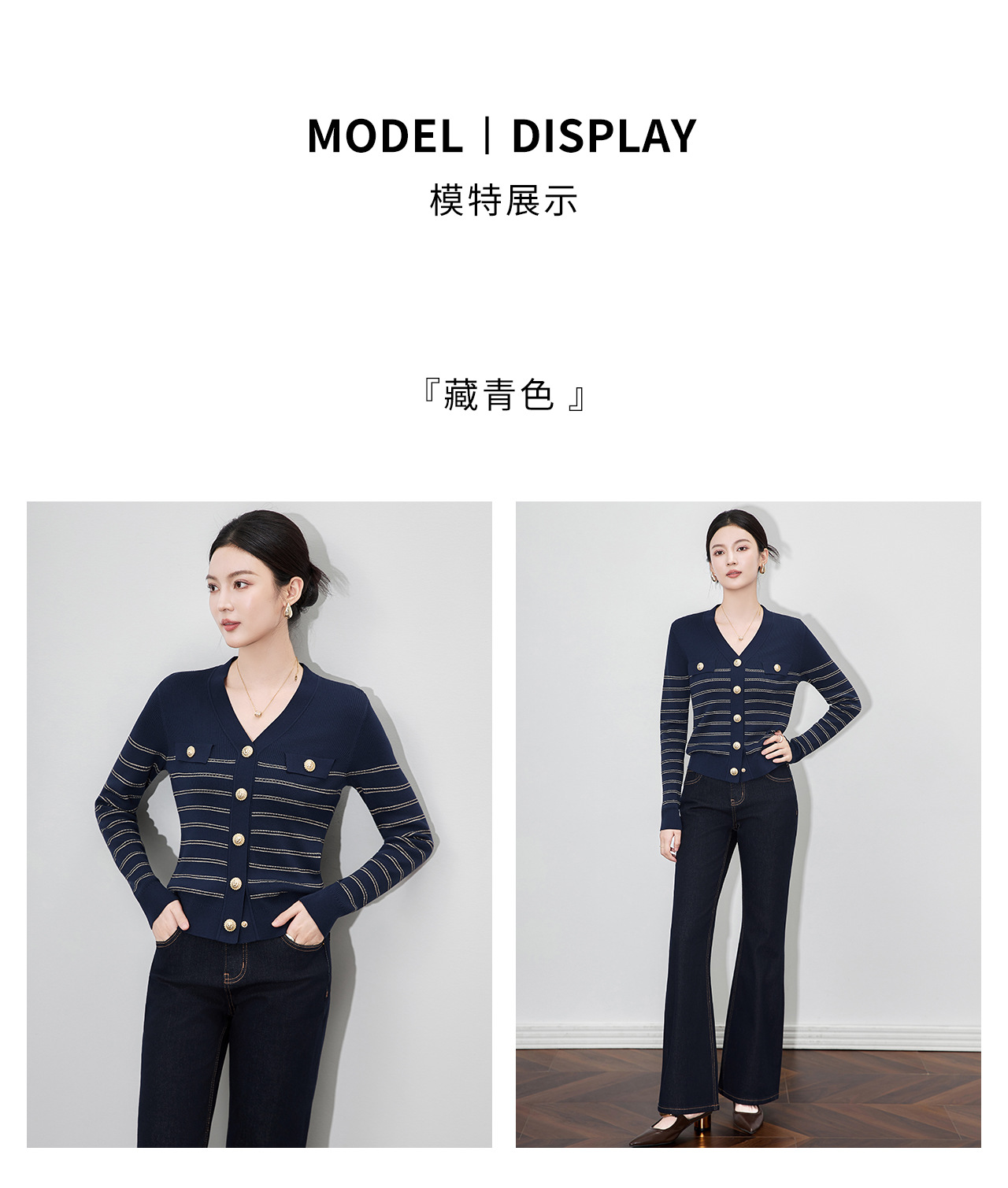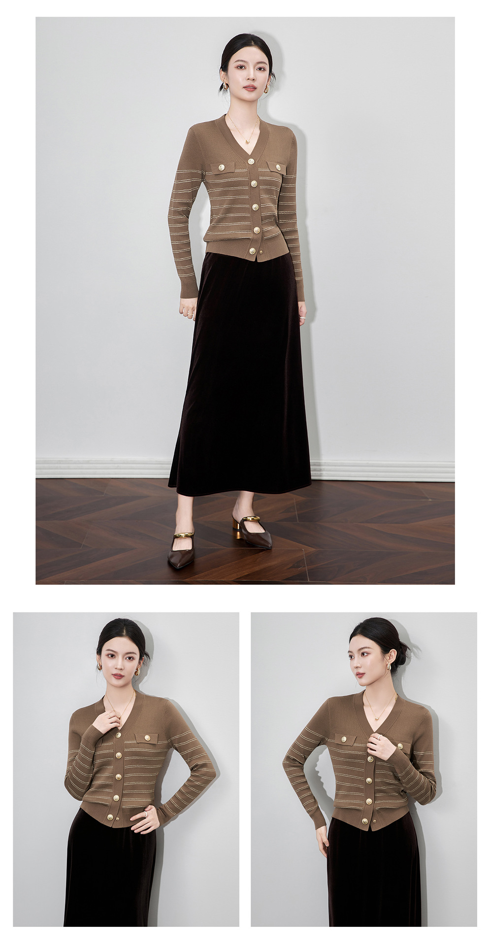 「高货wl」全新升级【铂金会员220/天猫299/差价79】(52529)洛诗琳气质小香风针织衫2025秋冬金线曲珠条纹开衫外套女