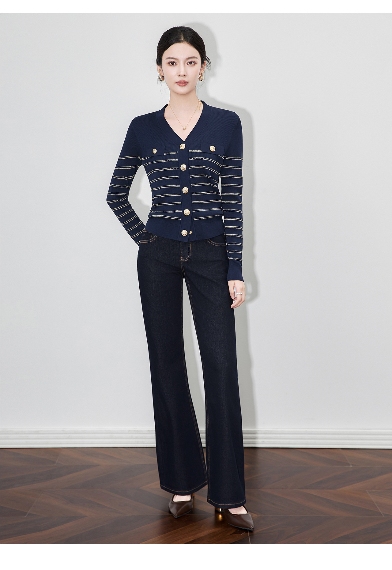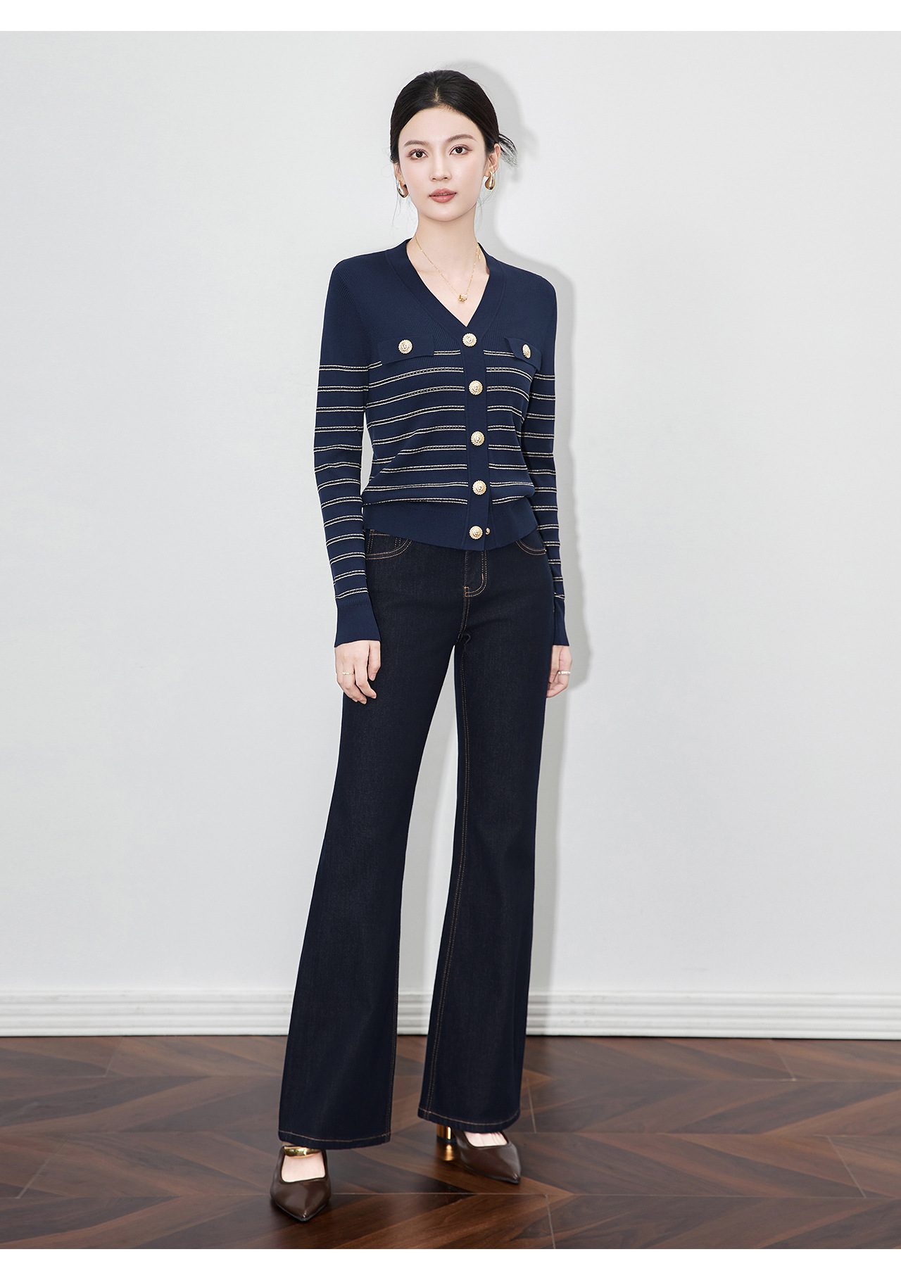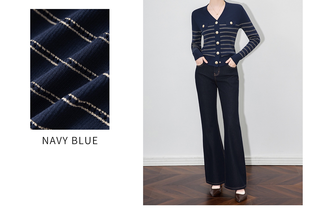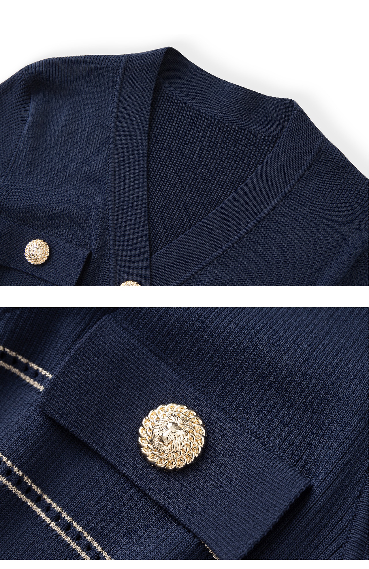 「高货wl」全新升级【铂金会员220/天猫299/差价79】(52529)洛诗琳气质小香风针织衫2025秋冬金线曲珠条纹开衫外套女