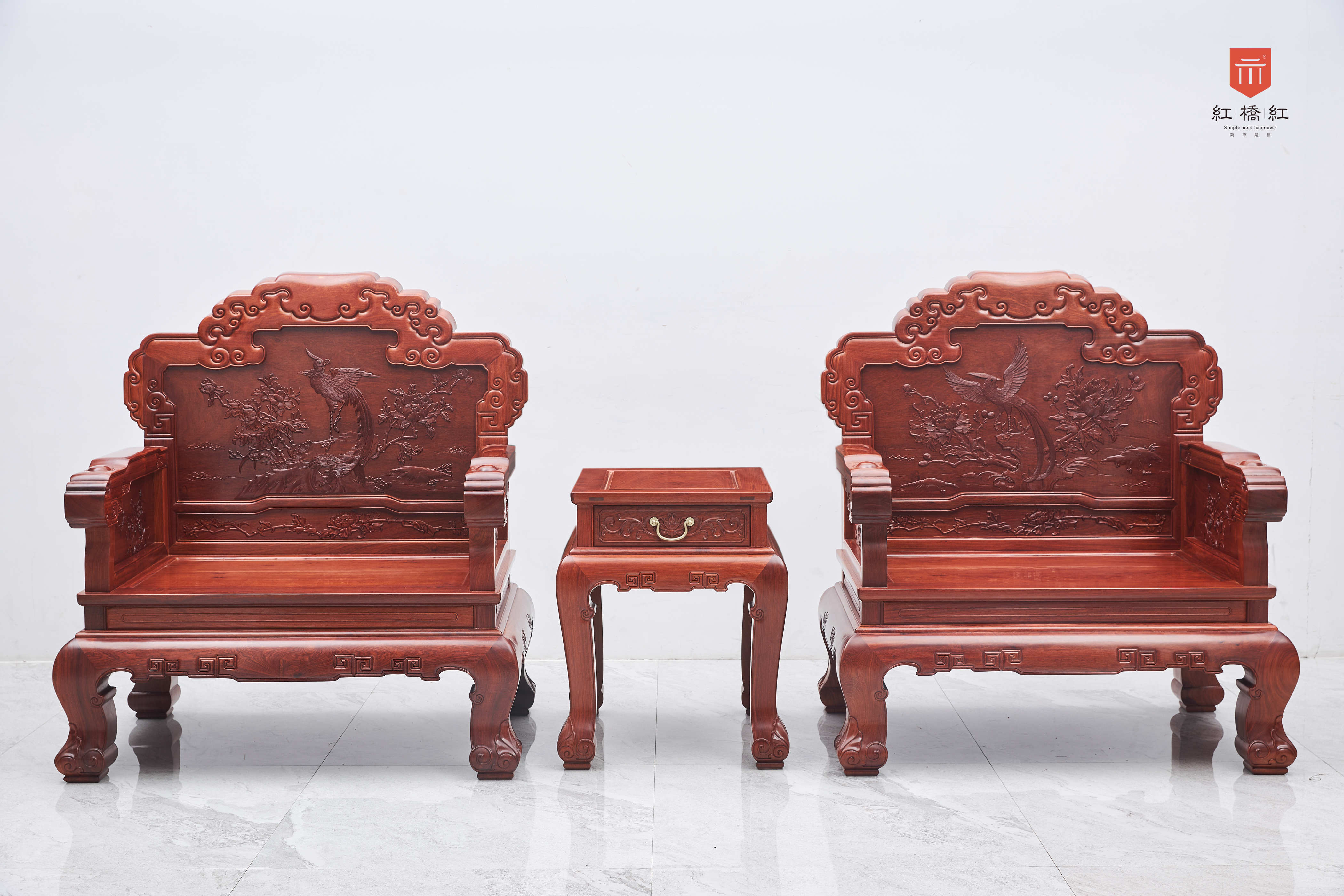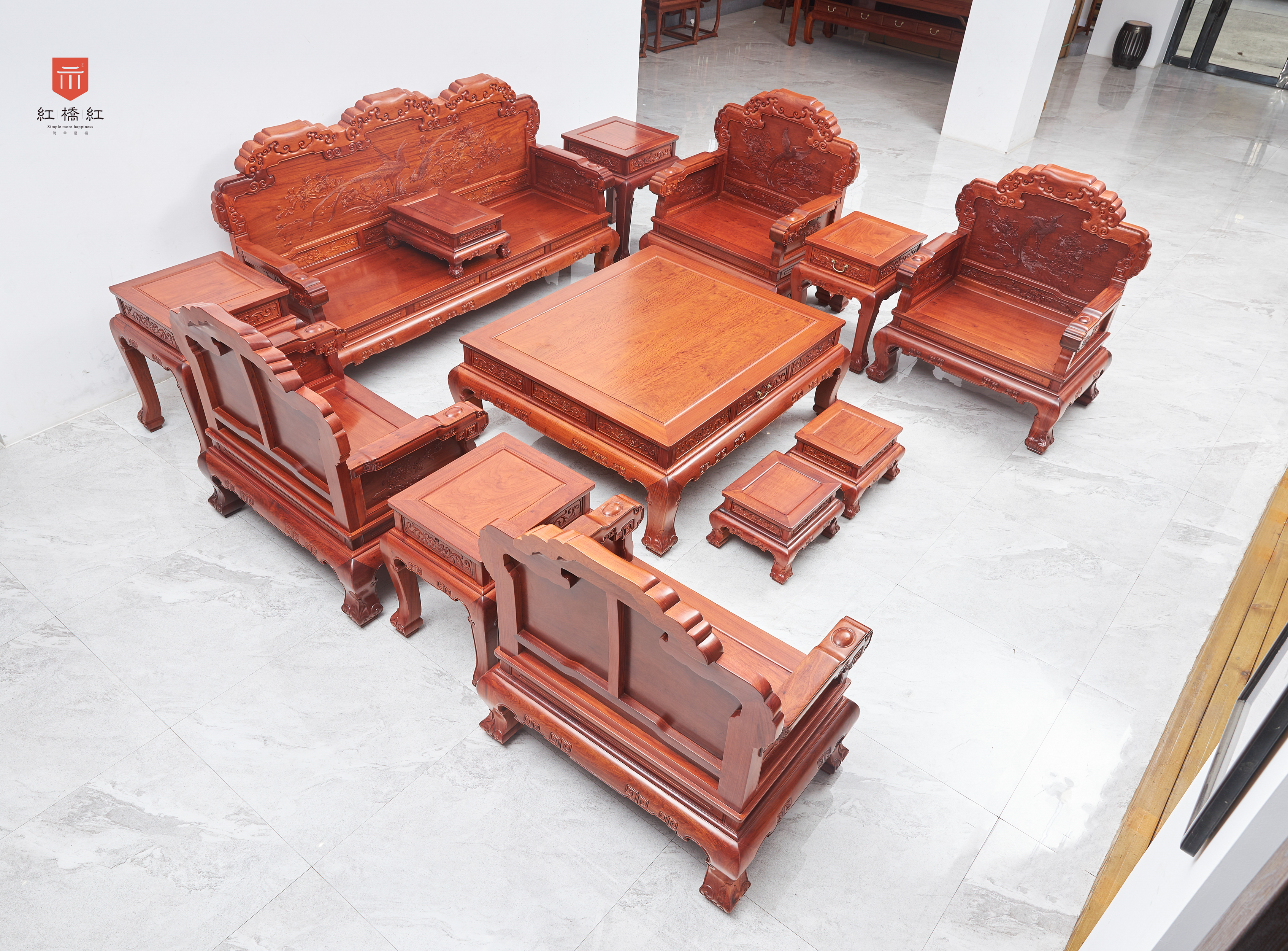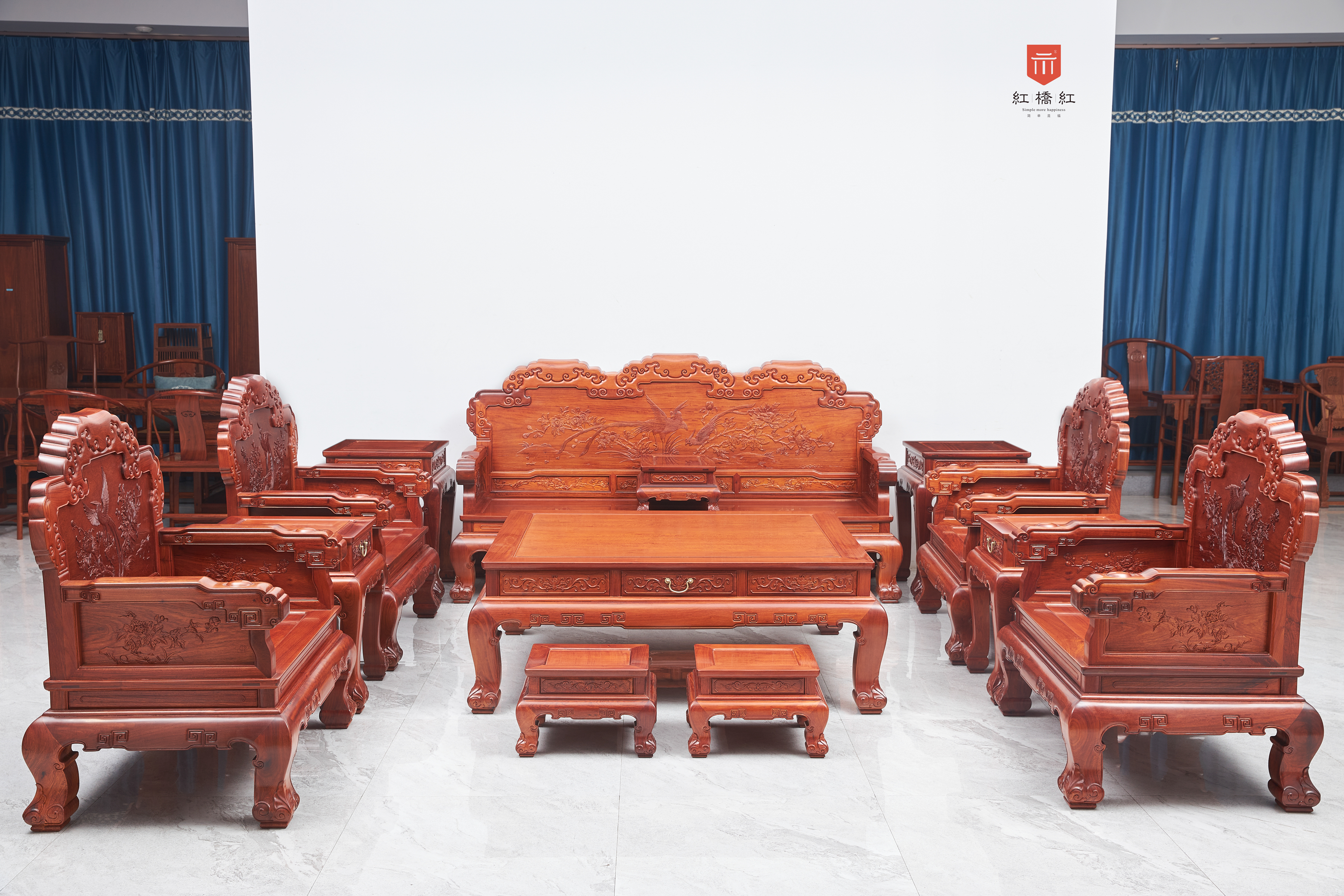 直背 凤凰牡丹弧腿沙发 十三件套