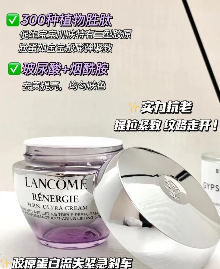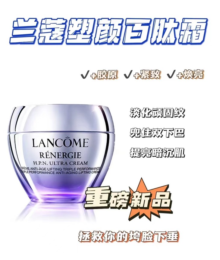 👑兰蔻百肽霜50ml 👍兰蔻重磅新品-拯救你的垮脸下垂 ✨专研300植物胜肽、长效玻尿酸、烟酰胺,配方妥妥高效 ✅功效:淡化顽固纹、紧致轮廓、提亮肤色、补水保湿 💥它不止能激活3种核心胶原蛋白,还能促进I型胶原生长,紧致下颚线 🙌面霜质感“水润柔软”,轻薄上脸,易吸收 💦直接把K老效果拉到满,温和不刺激,敏敏肌也能用 🔅推荐:25岁以上成熟肌,K老要趁早