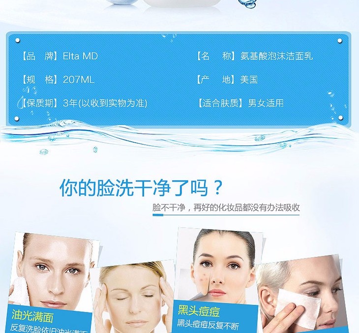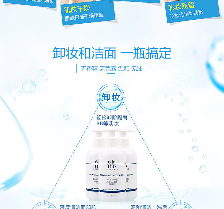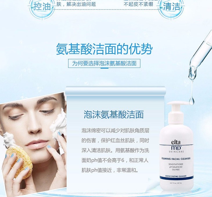 ELTA MD氨基酸泡沫洁面乳洗面奶207ml新旧包装随机