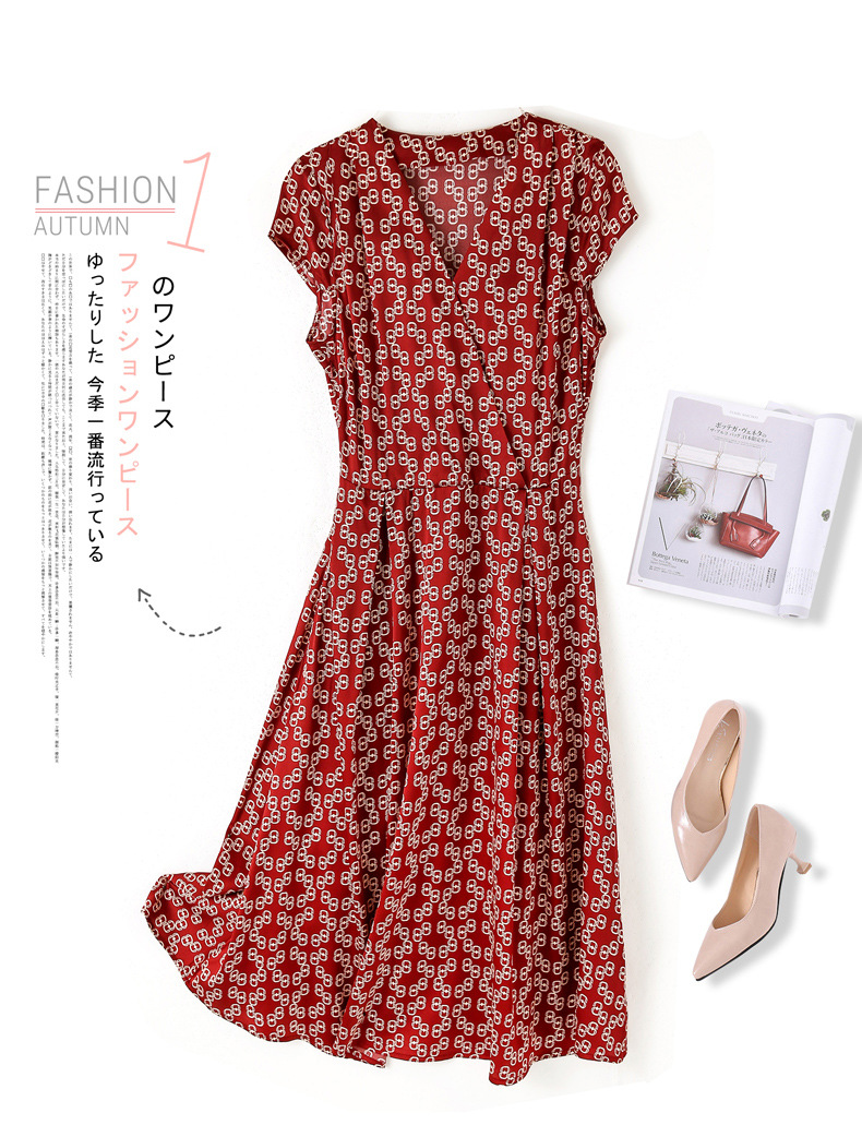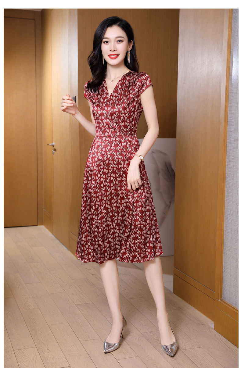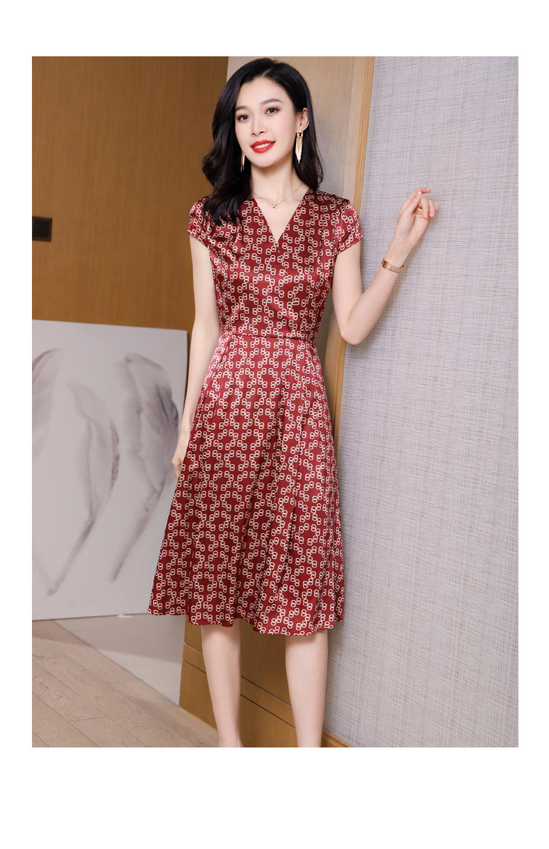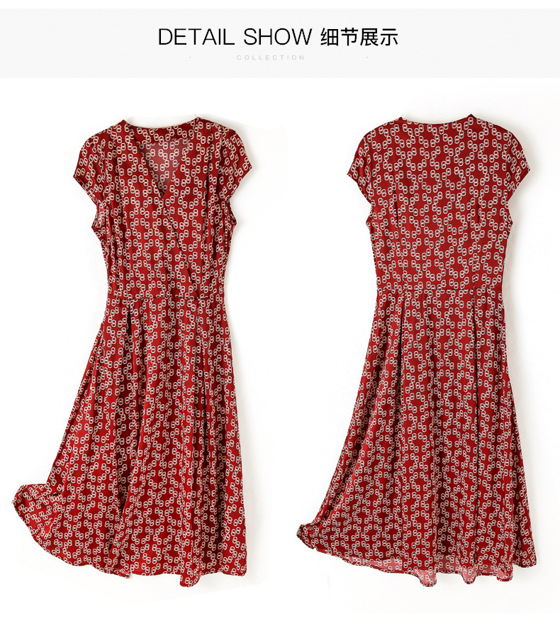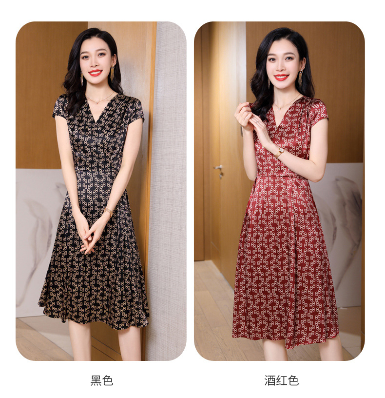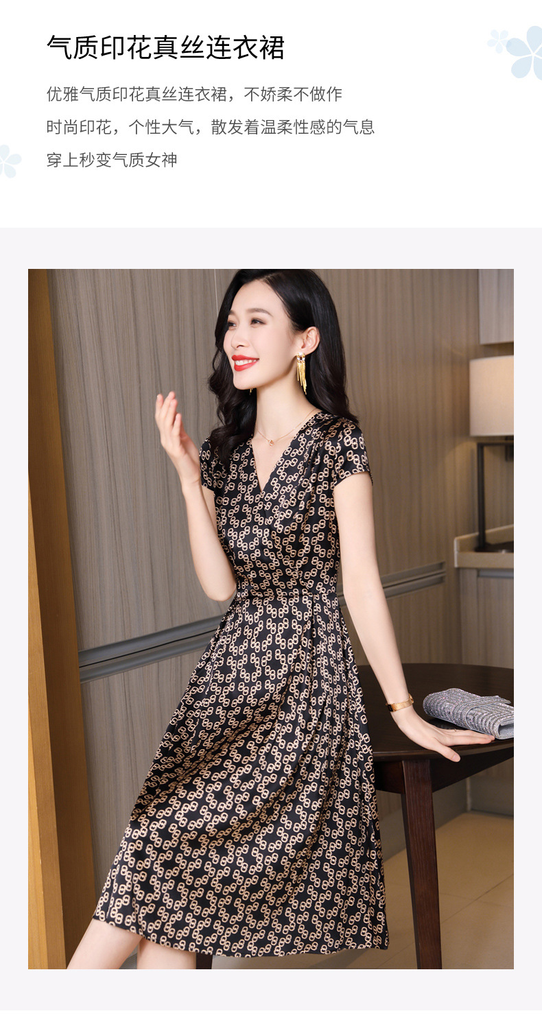 ASE-2369 V领印花气质时尚女士连衣裙
