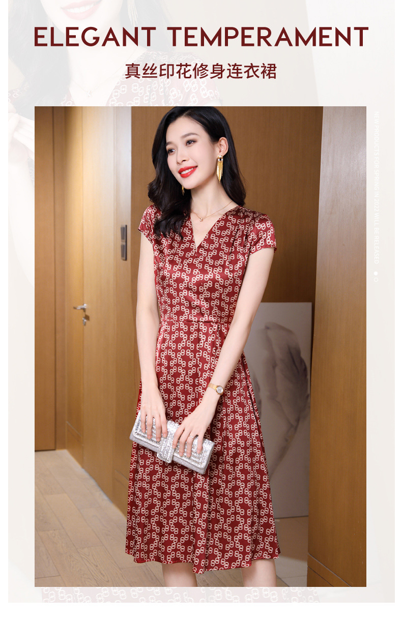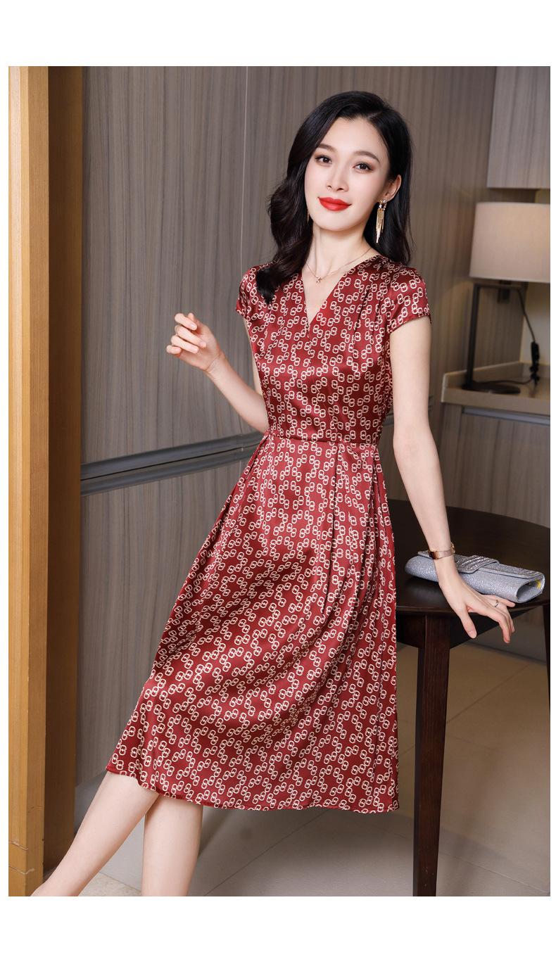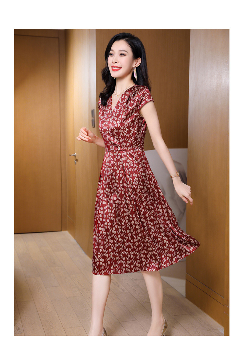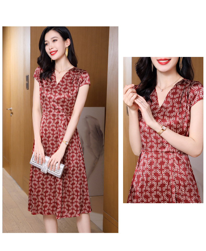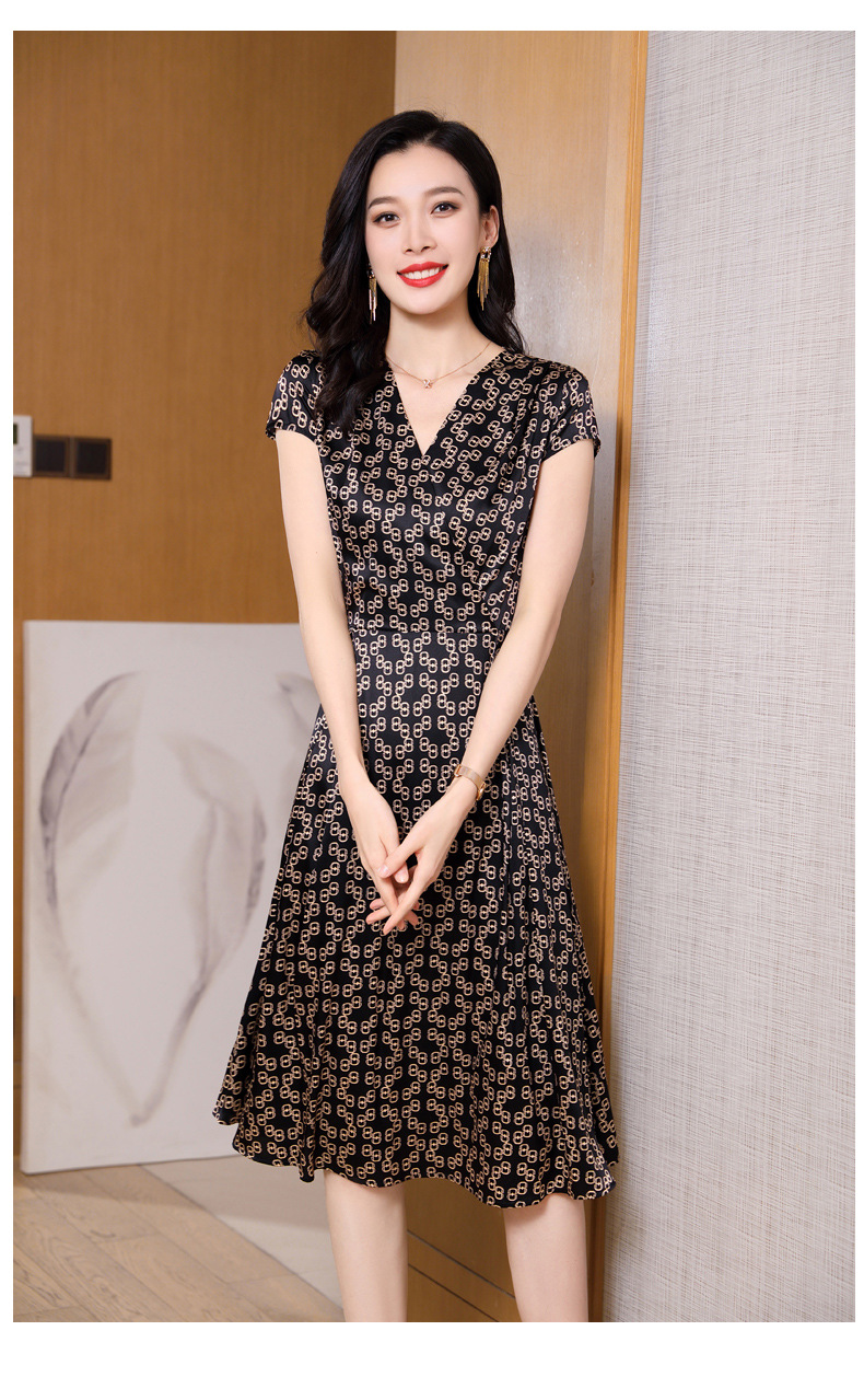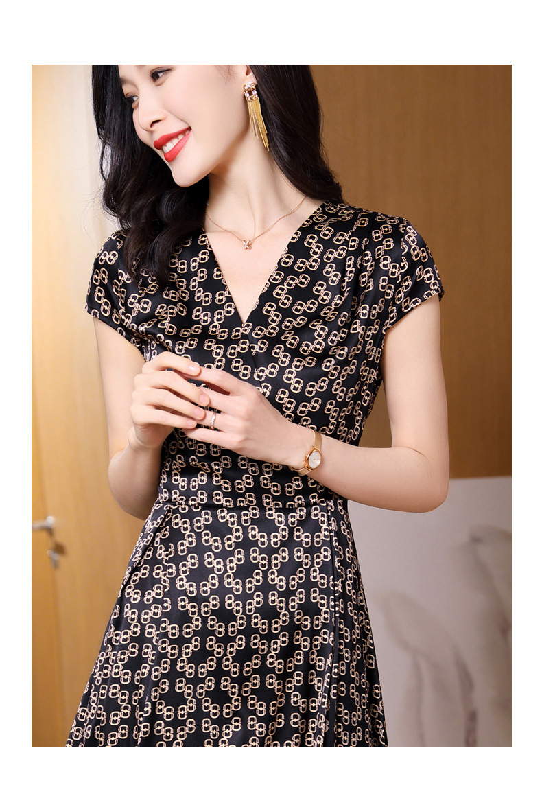 ASE-2369 V领印花气质时尚女士连衣裙