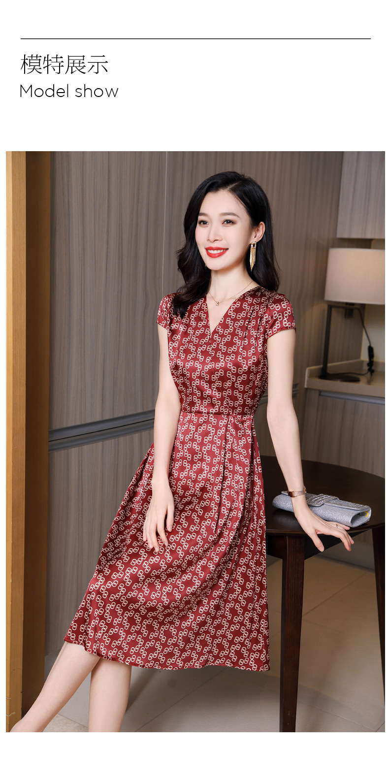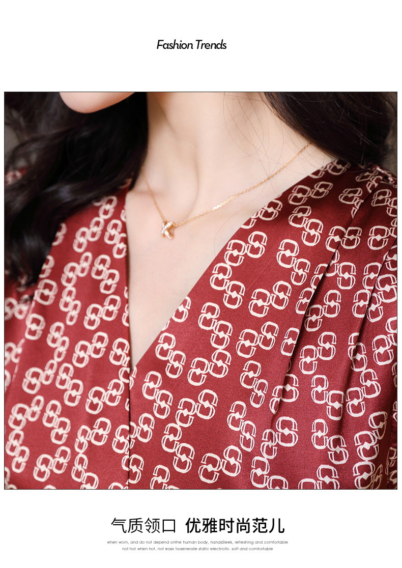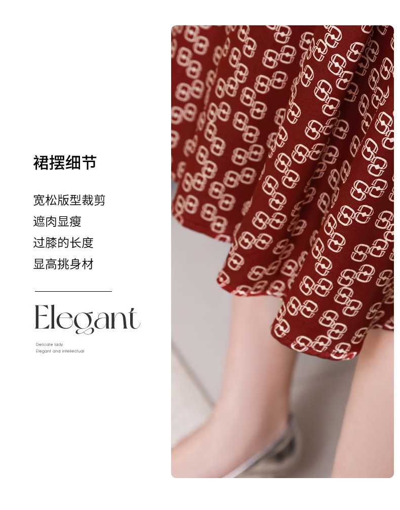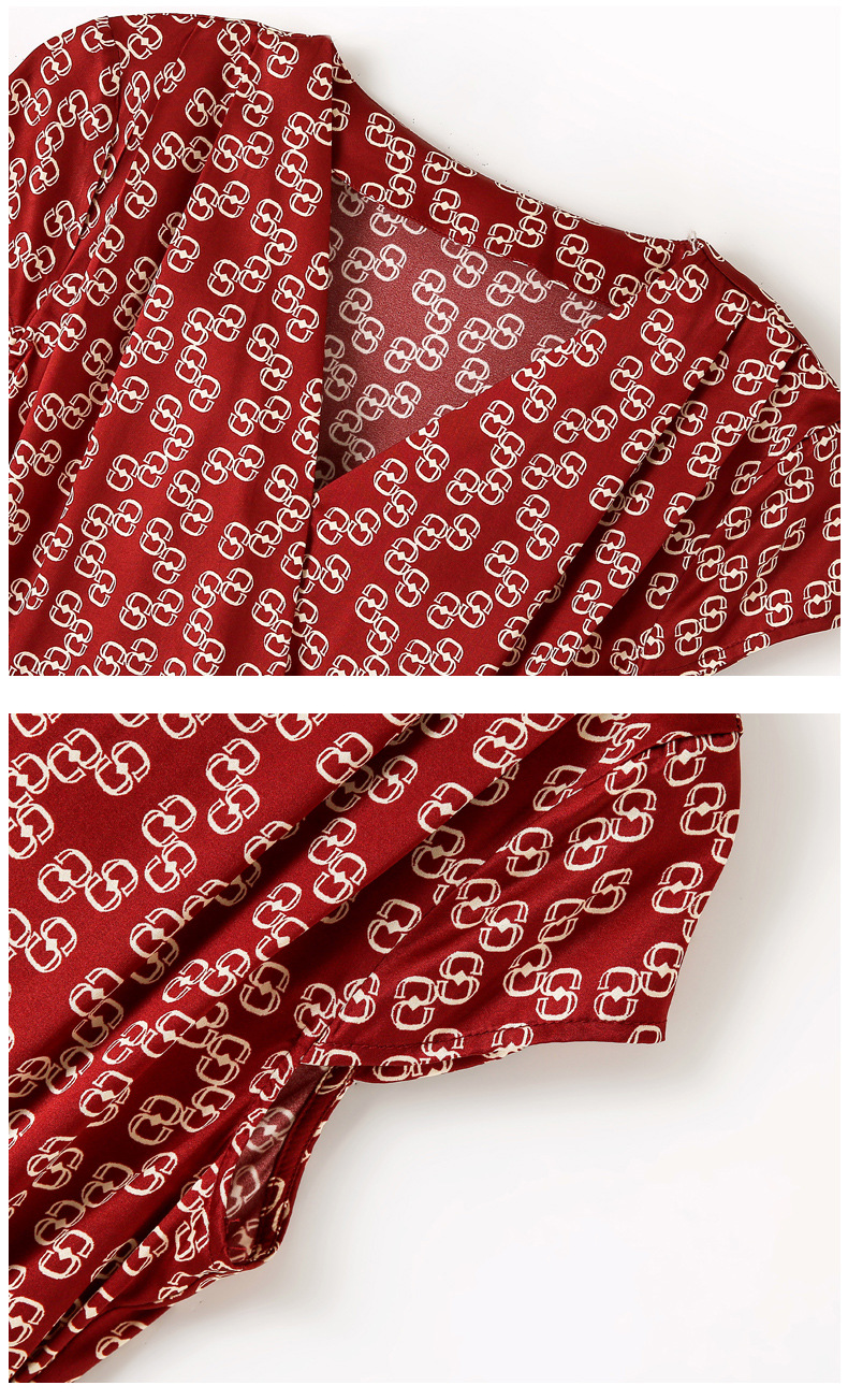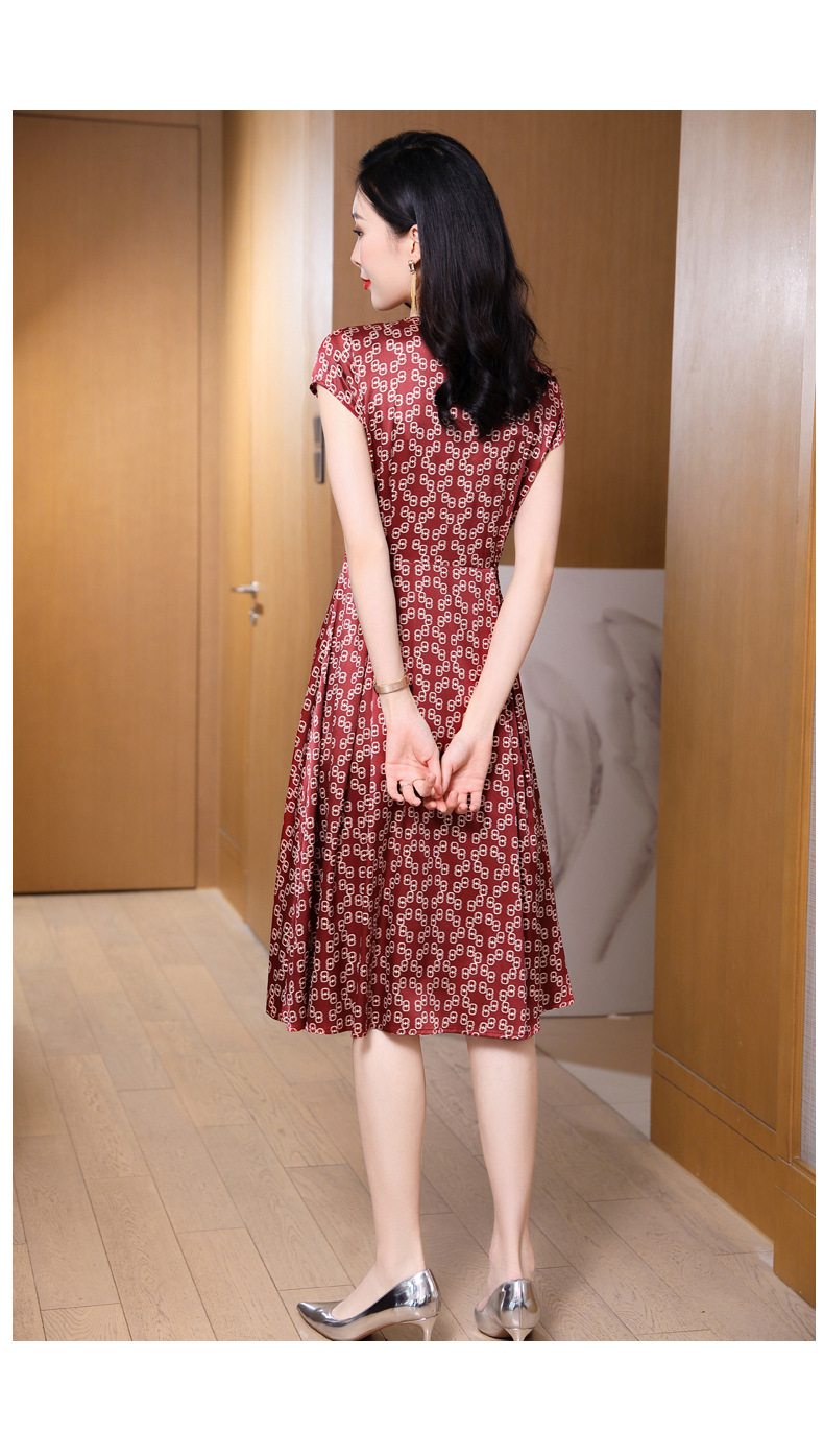 ASE-2369 V领印花气质时尚女士连衣裙