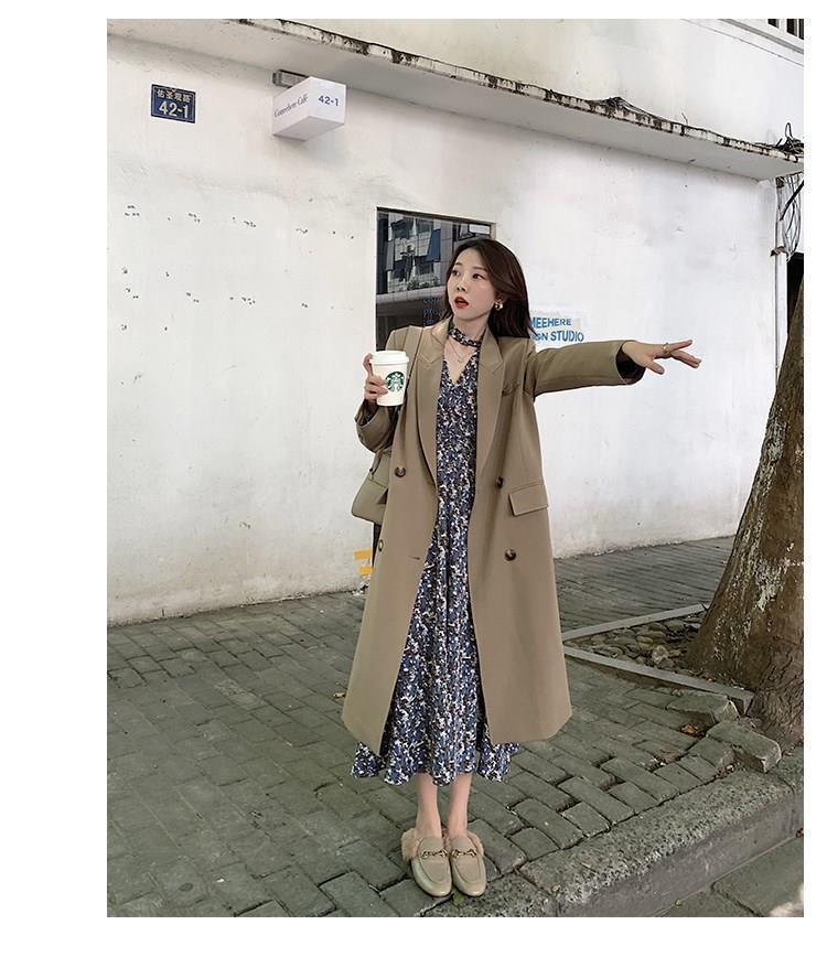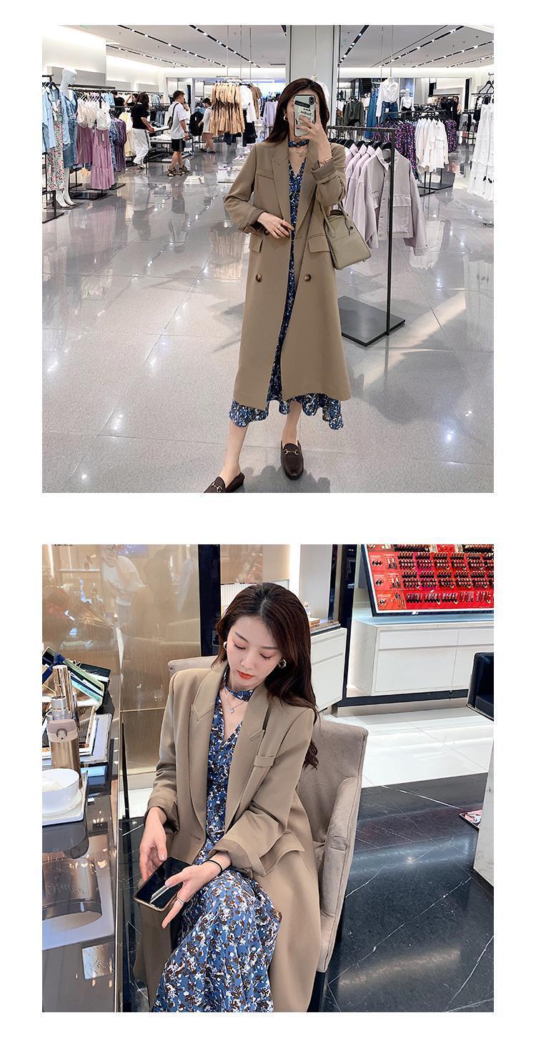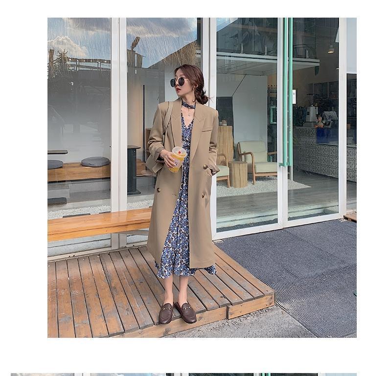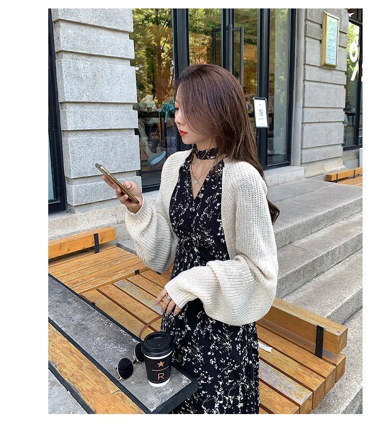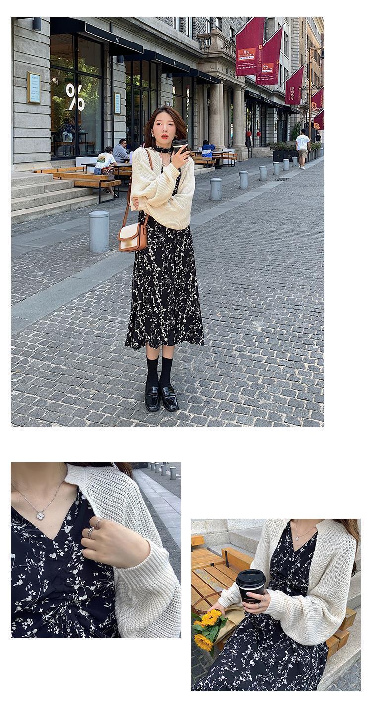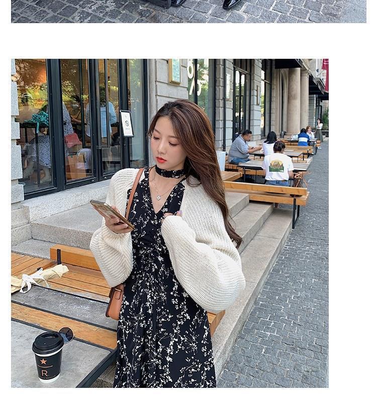 雪纺碎花v领长袖连衣裙女2021新款收腰显瘦气质喇叭袖中长款裙子