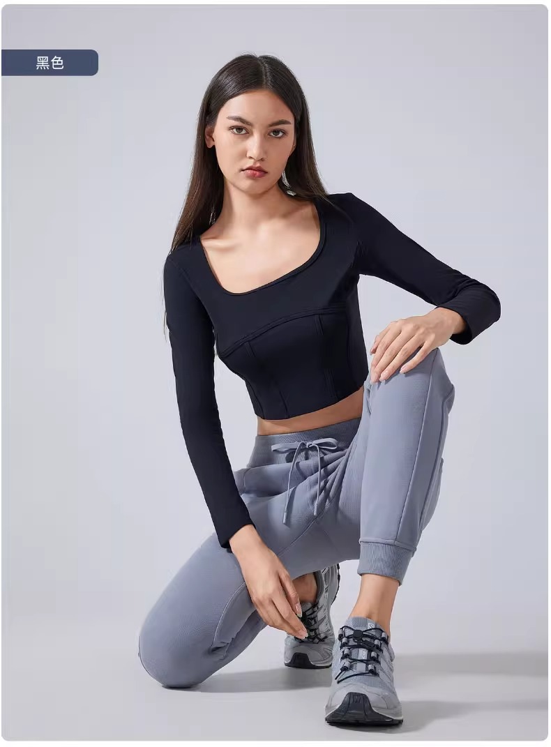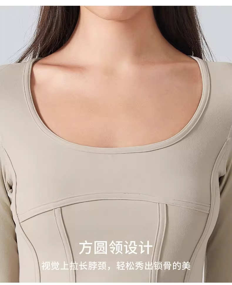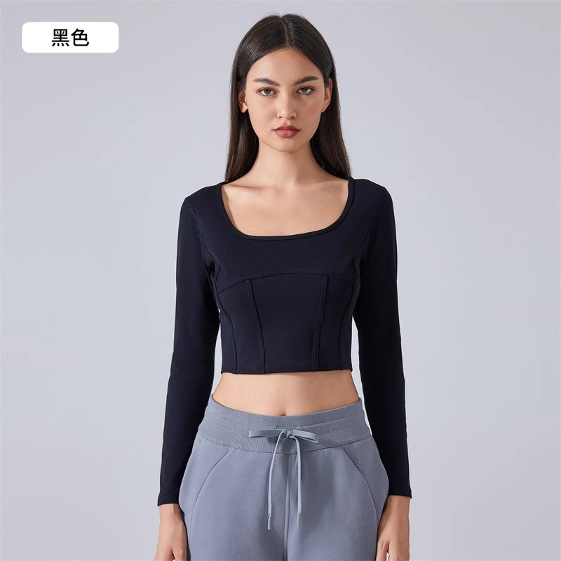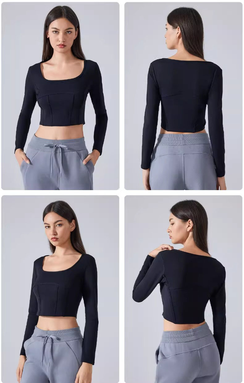 跃牌【倚窗听雨】系列 Athena 抗菌短款方领鱼骨线修身运动健身长袖上衣女CX85