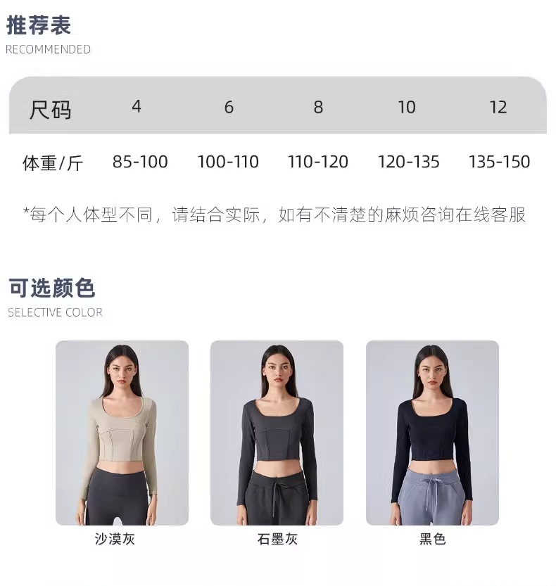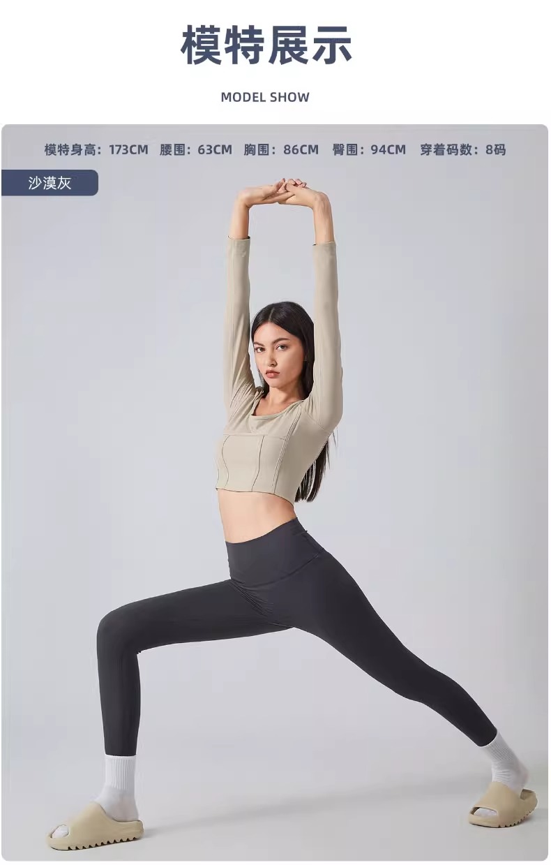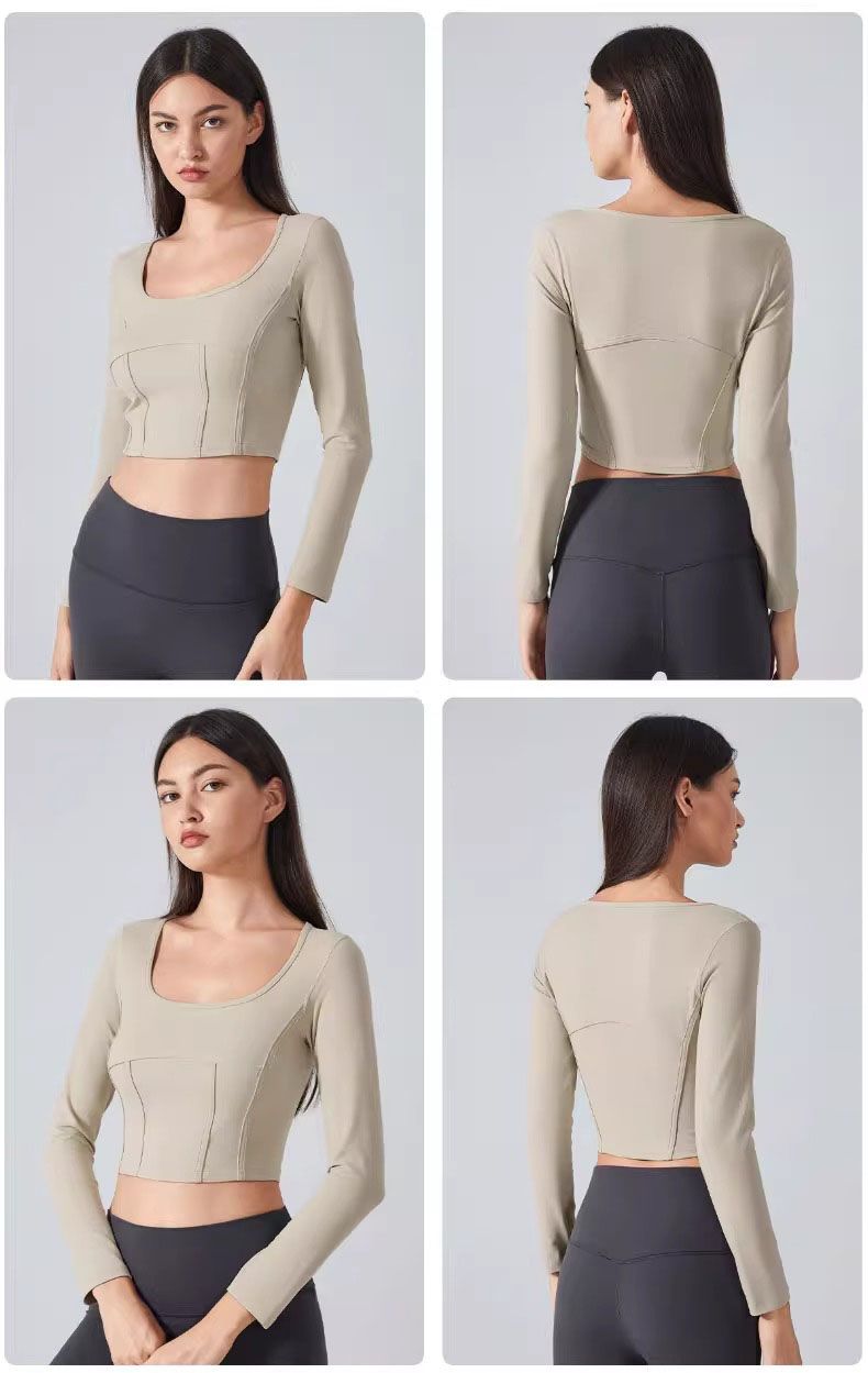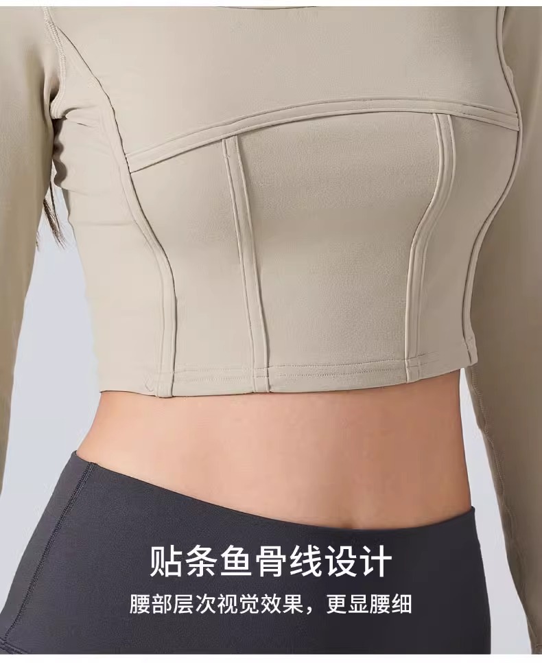 跃牌【倚窗听雨】系列 Athena 抗菌短款方领鱼骨线修身运动健身长袖上衣女CX85