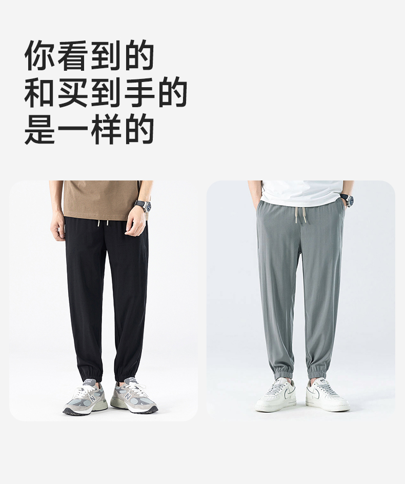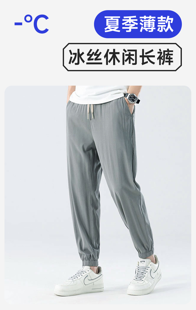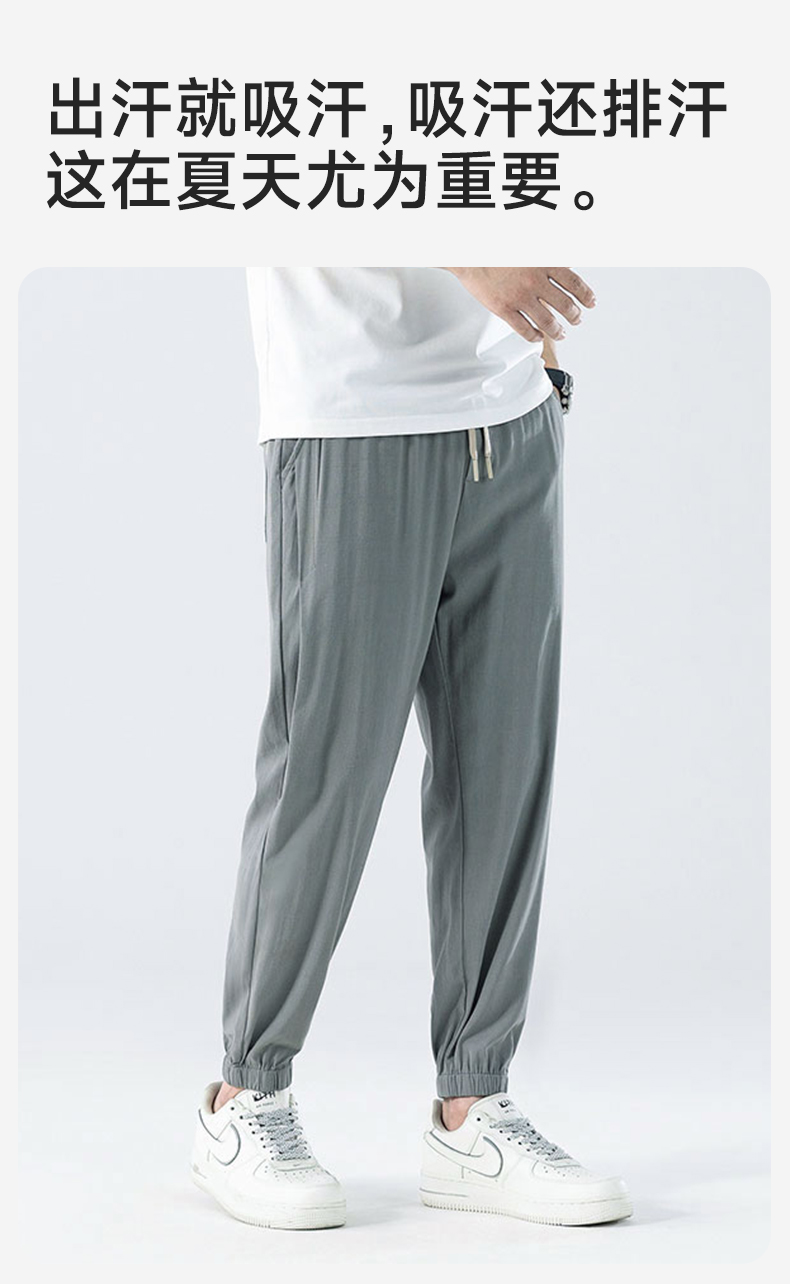 【新款DQ】大码男装冰丝裤透气休闲裤宽松弹力小脚运动裤加肥加大长裤夏季透气