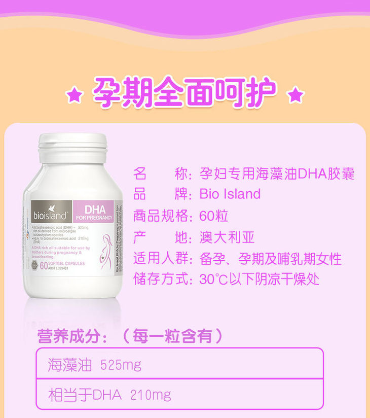 Bio Island 孕妇DHA海藻油 60粒/瓶