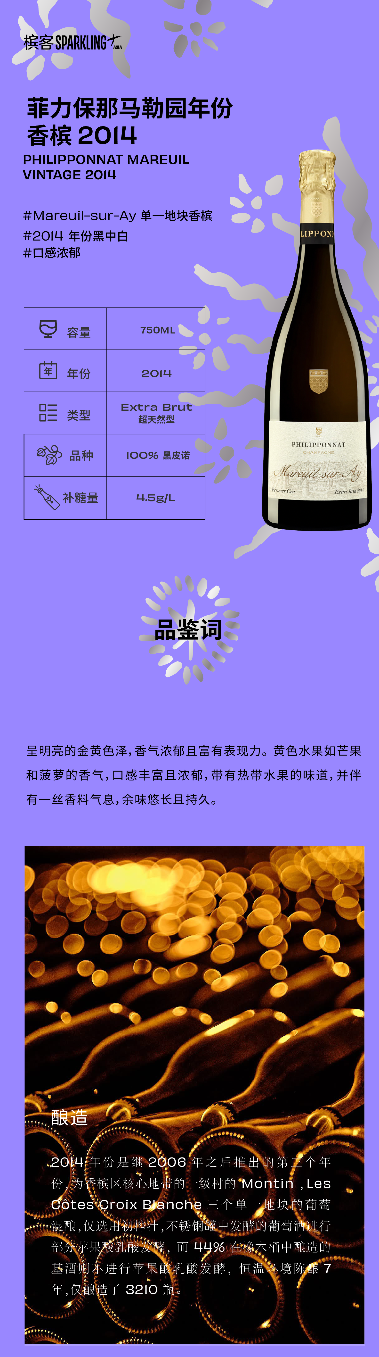 Philipponnat Mareuil Vintage 2014 菲力保那马勒园年份香槟 2014