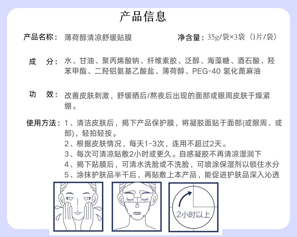 爱丽泰 薄荷醇清凉舒缓贴膜(分体面膜)(有效期2027年11月)