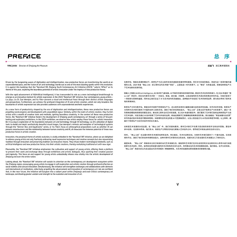 2018年,浙江美术馆正式推出自主策划的“当代探索与实验艺术系列”品牌之“南山138”浙江青年当代艺术推广项目。“南山138”以城市新地标、新视角为出发点,重点关注浙江地域的当代艺术发展生态,聚焦多元化社会语境下的浙江当代青年艺术家生产模式,鼓励青年艺术家在对社会现实和文化创新的深入思考中进行自我探索与艺术创作并为其提供发声场。系列展览将着力探讨例如当代与传统、生活与艺术、想像与创造等人文主题,积极推行艺术创作的文化立场,以更开放、更包容的姿态彰显浙江美术馆于当代艺术文化立场的对话空间作用,推动建构浙江青年群体的当代艺术发展机制。