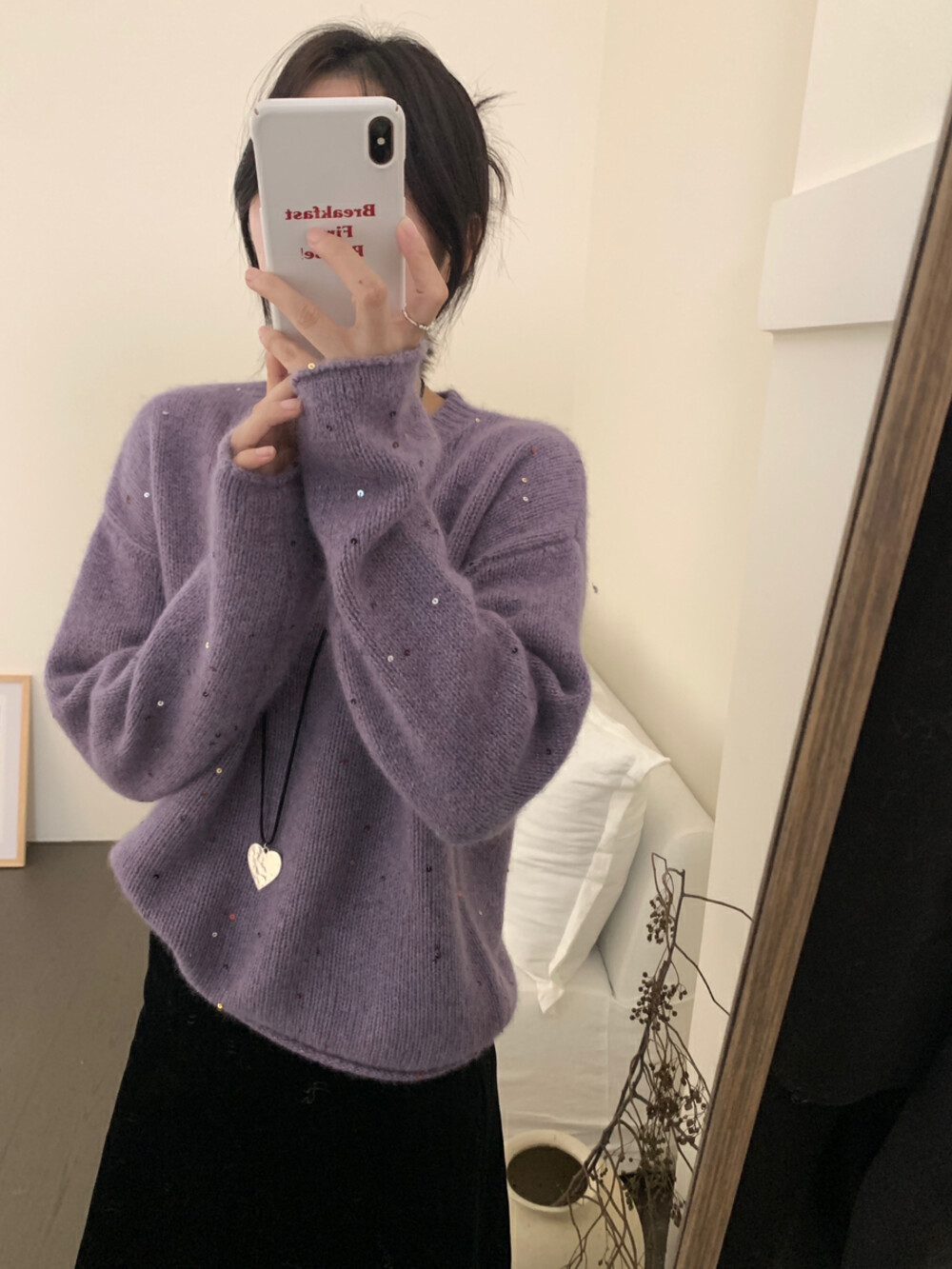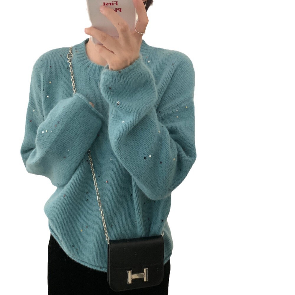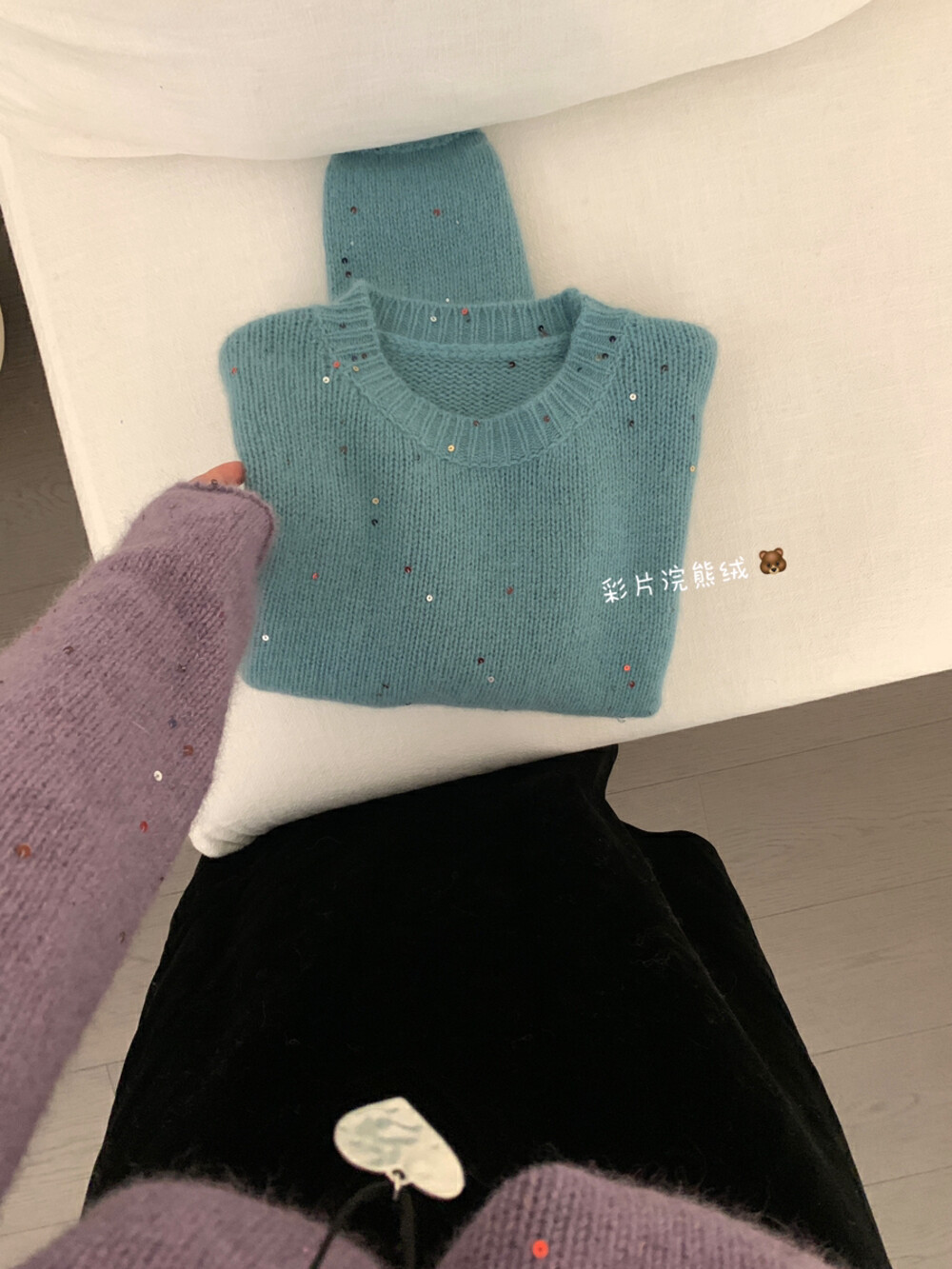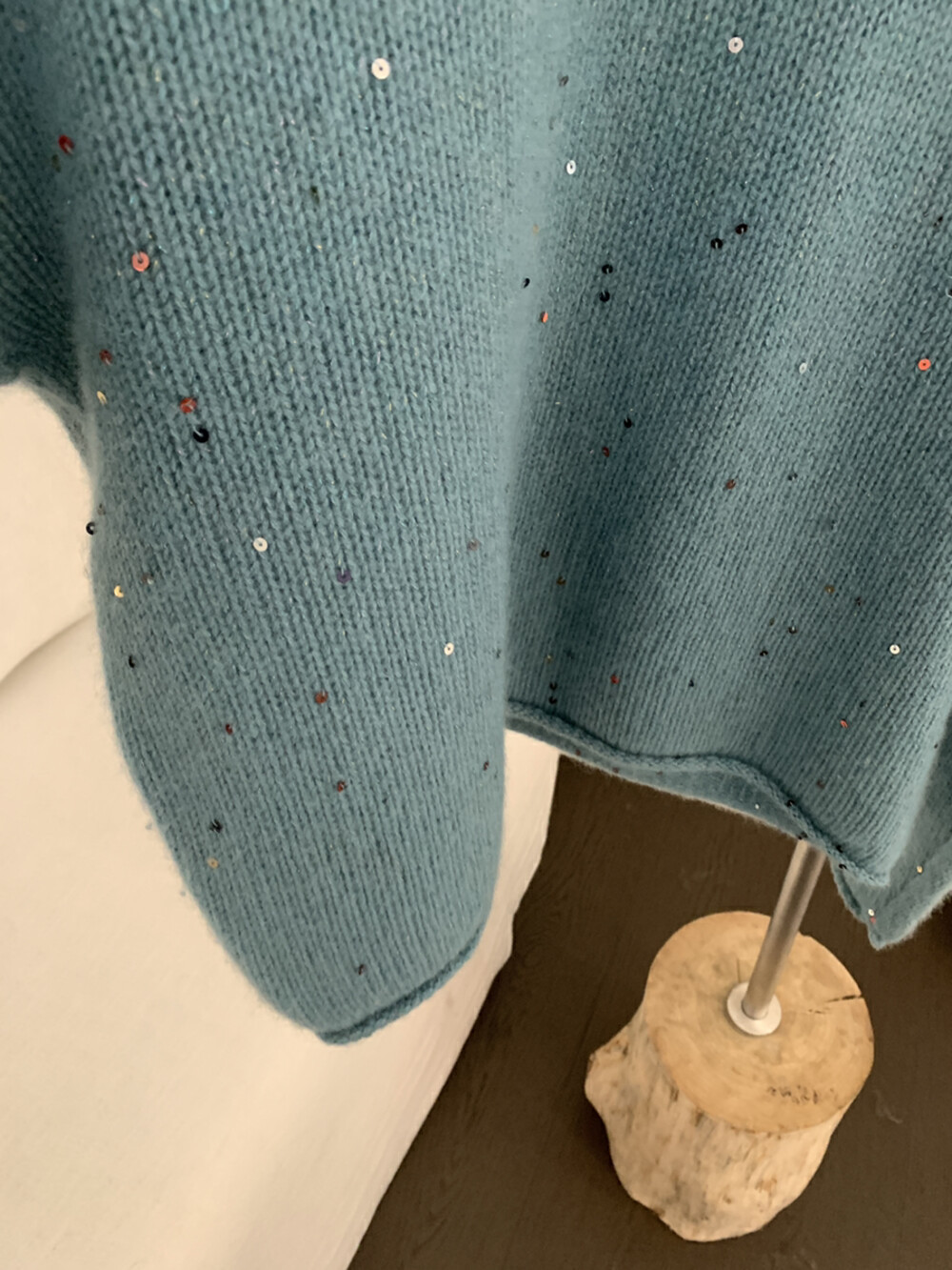 特妮娜【星空亮片卷边毛衣】多种优质面料混纺 上身轻盈舒适又温暖 自带微微光泽感纱线 触感细腻 肌理精致有型 呈现优雅唯美视觉感
