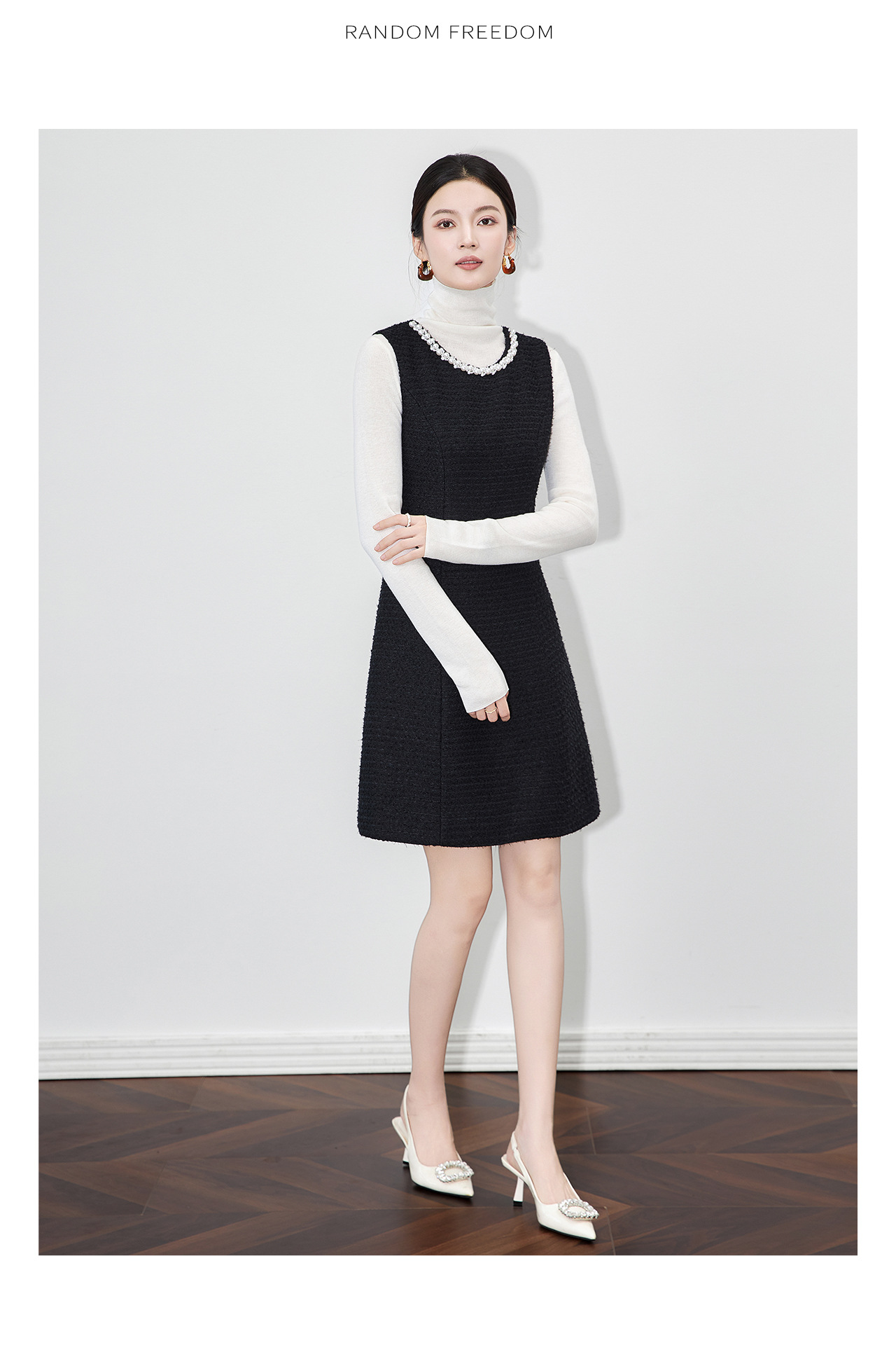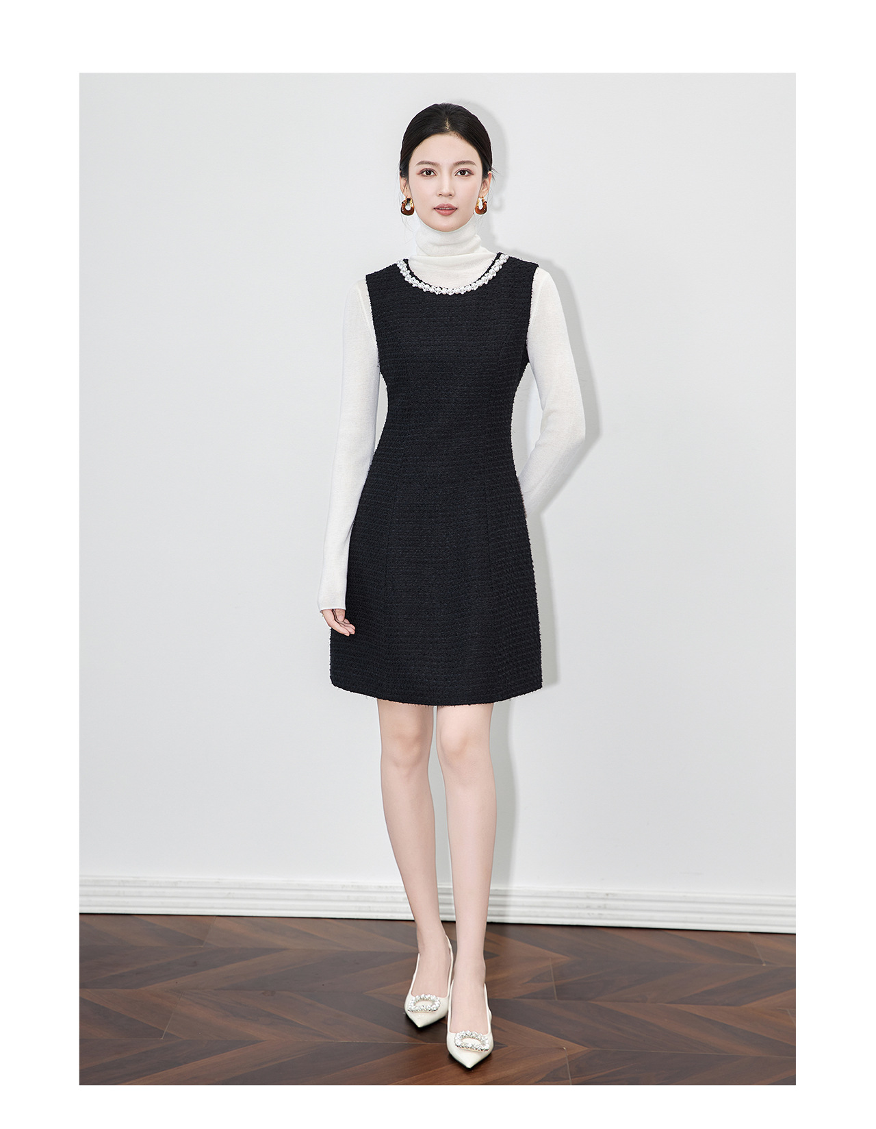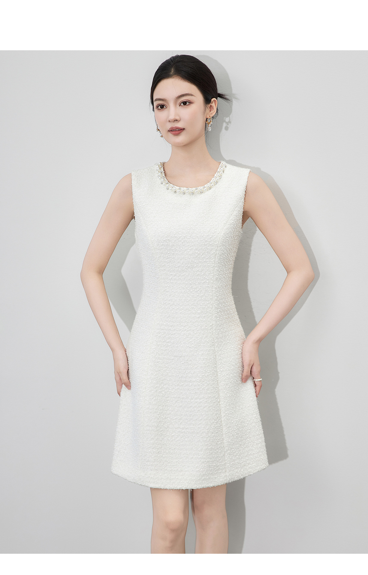 「高货wl」全新升级【铂金会员395/天猫529/差价134】(92530)洛诗琳重工钉珠粗花呢无袖连衣裙2025秋季气质小香风A字裙