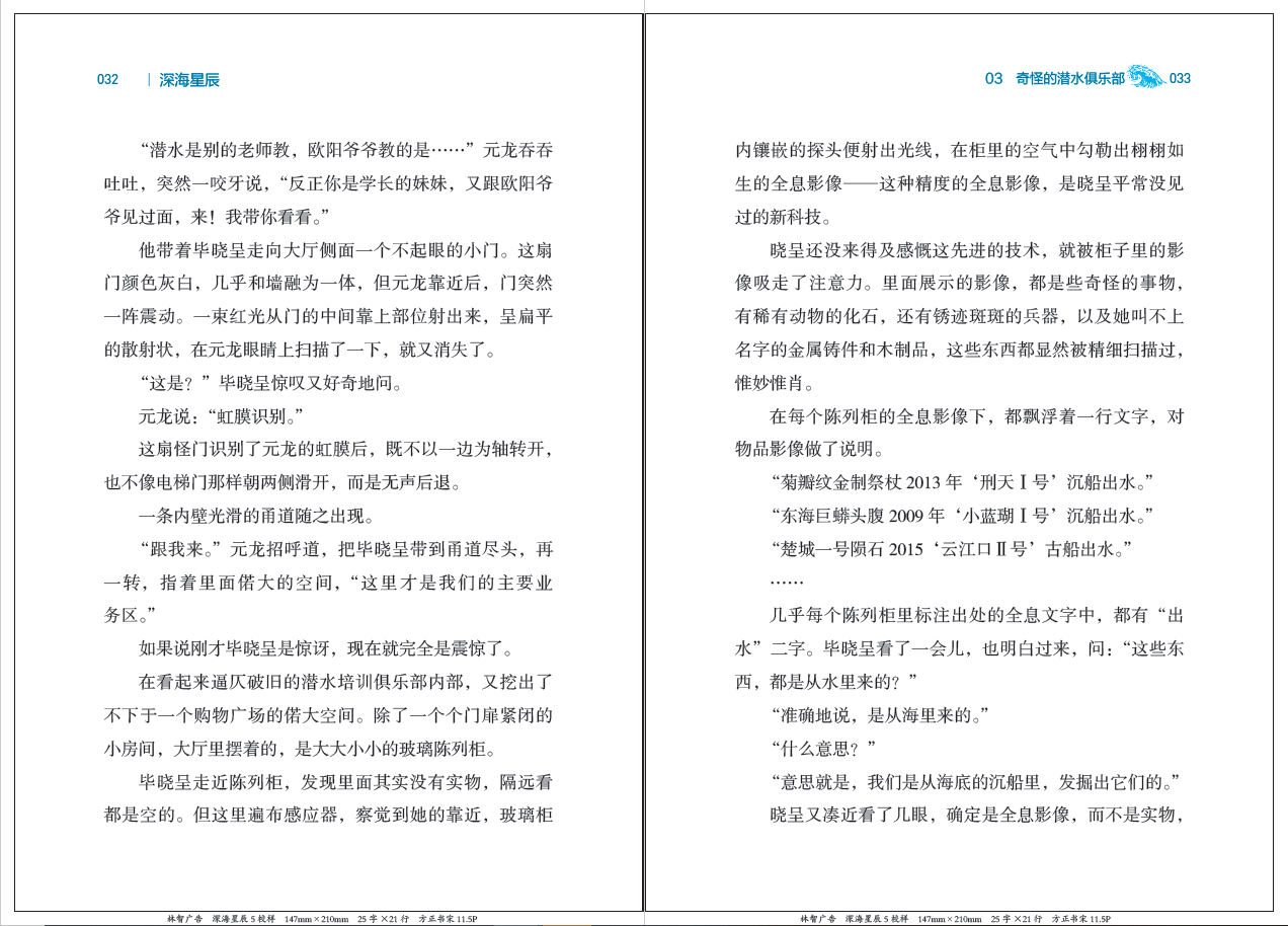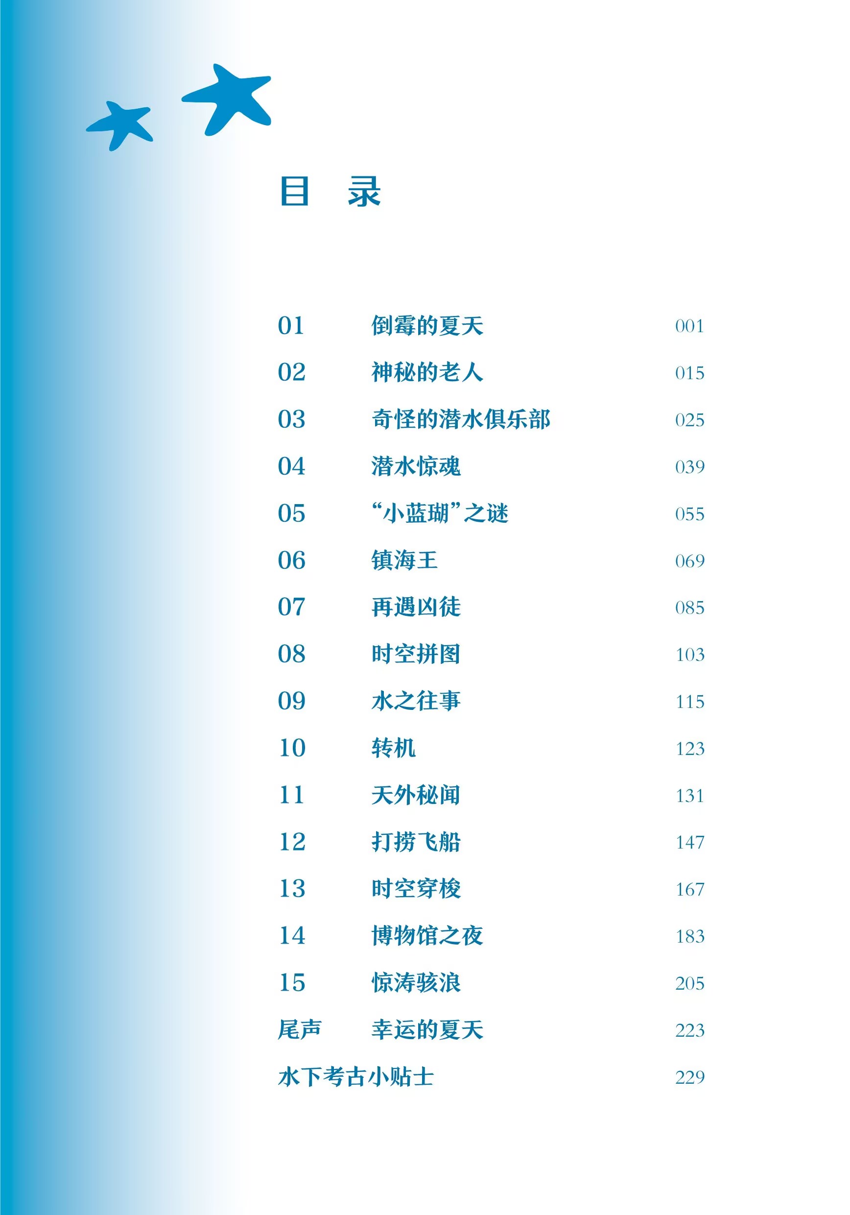 该作品在悬念重重的故事中穿插丰富的水下考古科普知识,旨在通过奇幻的故事,让小读者获得智力比拼、想象力上的快感,在感受水下考古历史文化、增强科学素养的同时,激发对神秘的水下考古的兴趣,在广大青少年心中埋下一颗颗探索求知的种子。