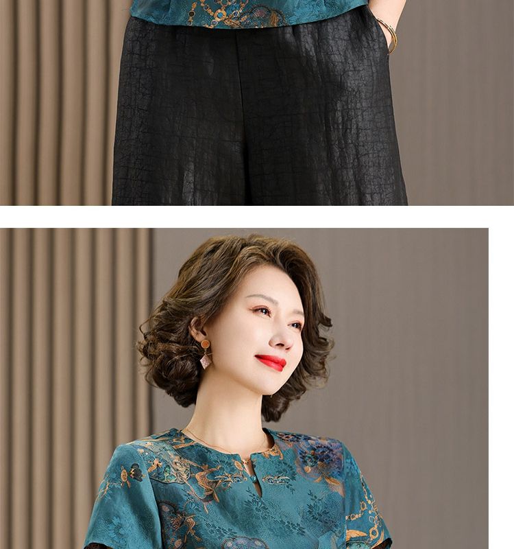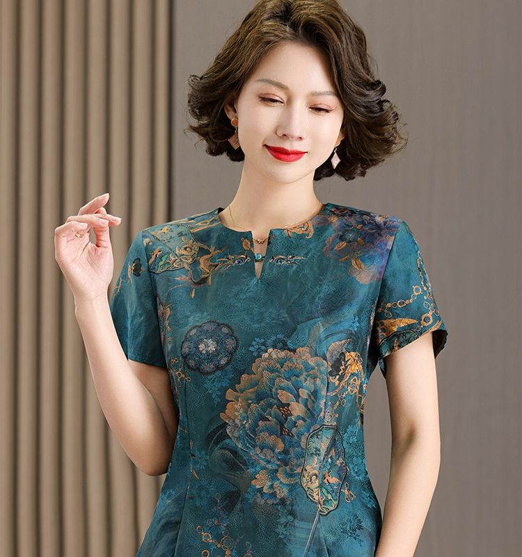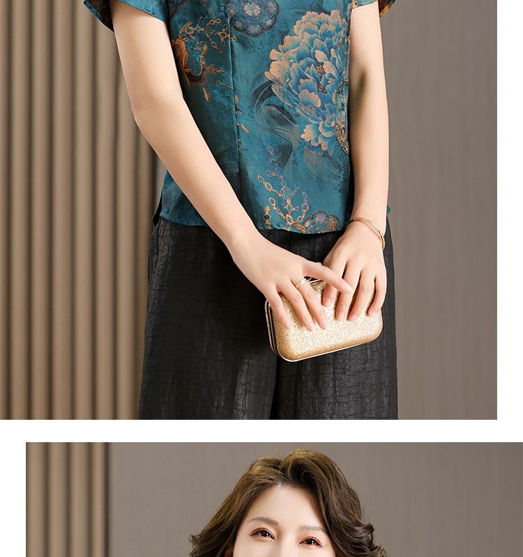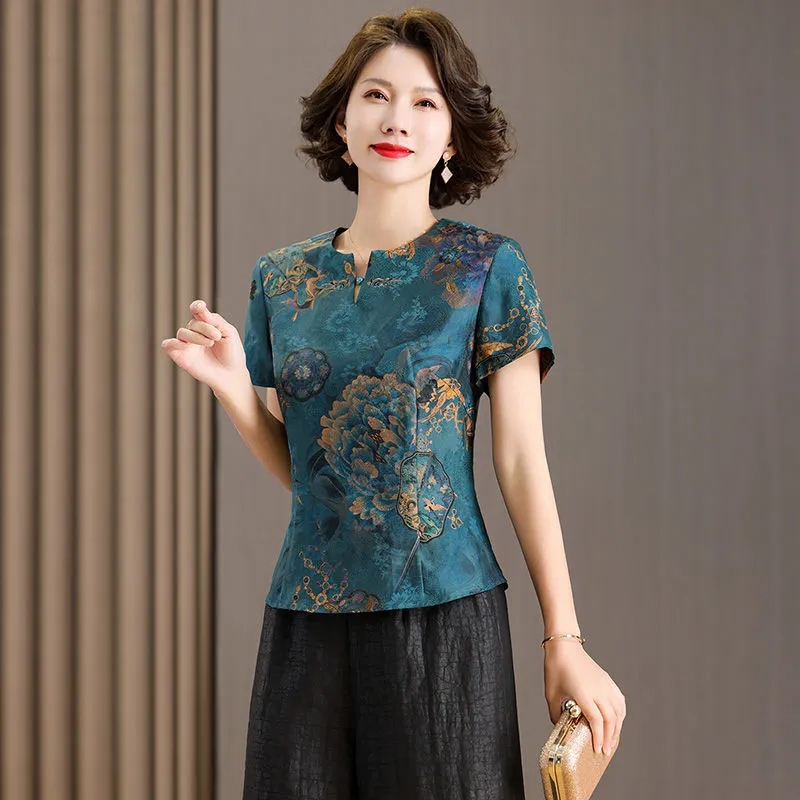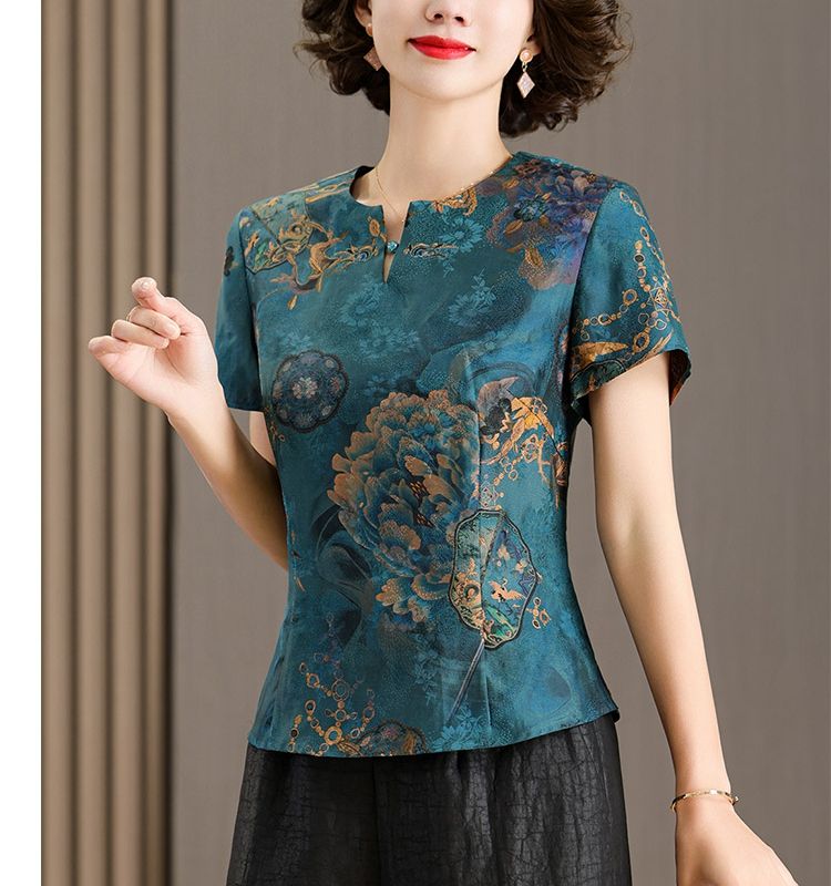 A3303香云纱女上衣修身2023新款中式真丝衬衫短袖中老年妈妈桑蚕丝春夏