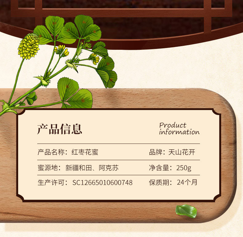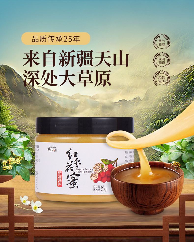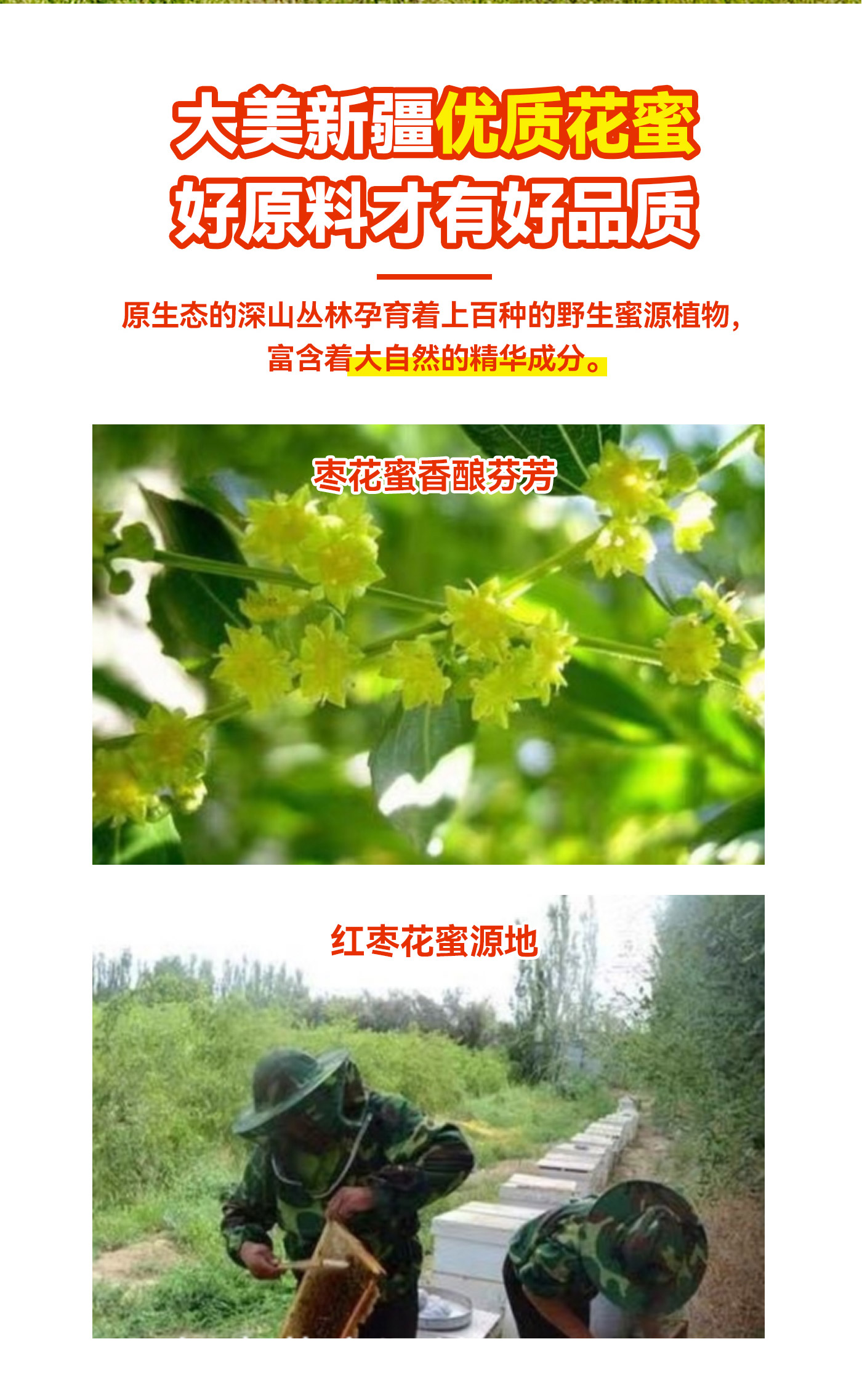 天山花开·新疆红枣蜂蜜250g*2 挂勺成丝 补脾润肠