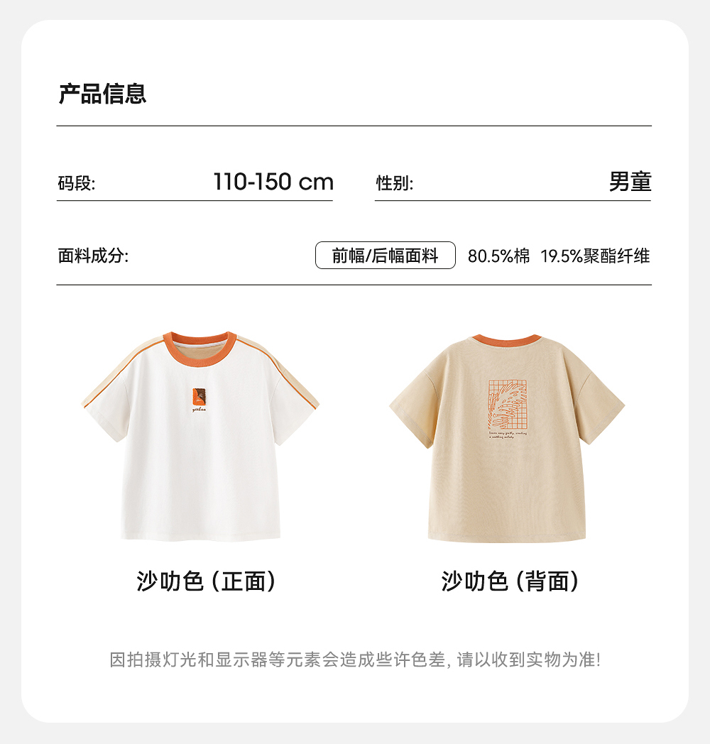【商场同款】英氏儿童短袖T恤夏季透气吸湿户外男童上衣2025新款