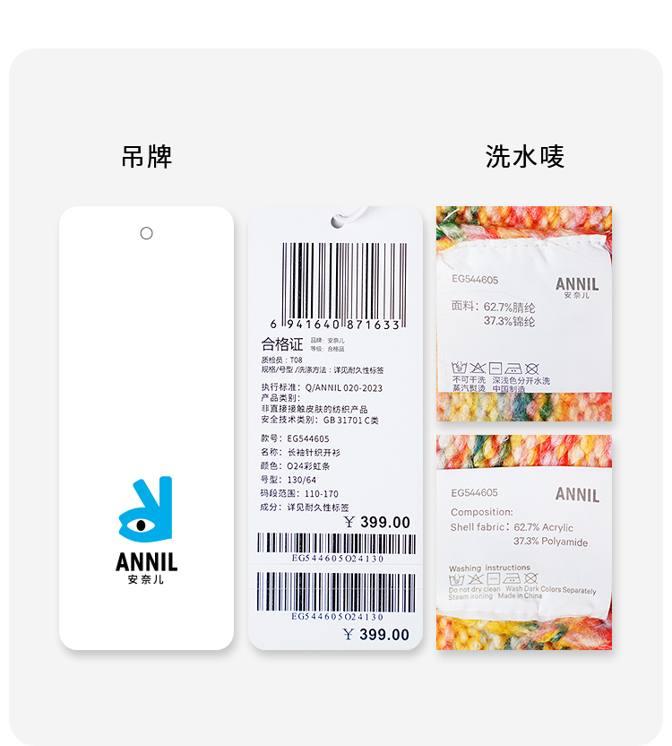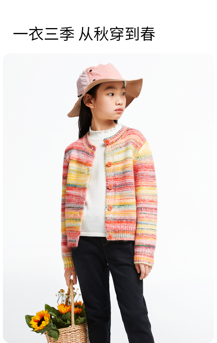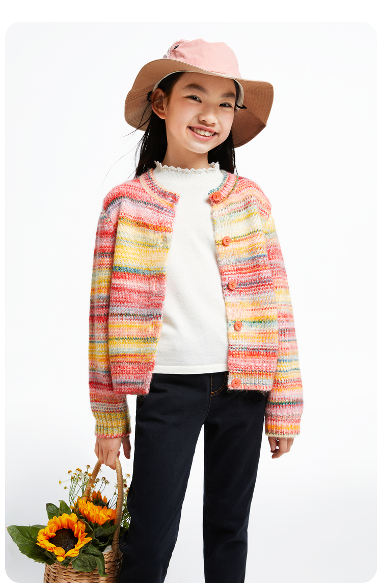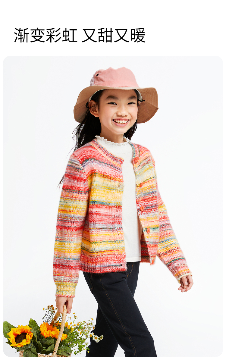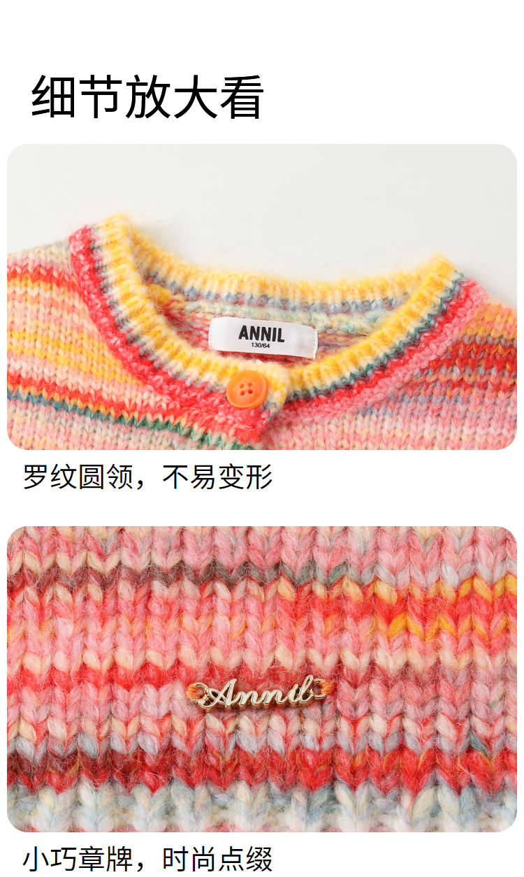 【甜系彩虹开衫】女童长袖针织开衫秋季新款安奈儿童装EG544605