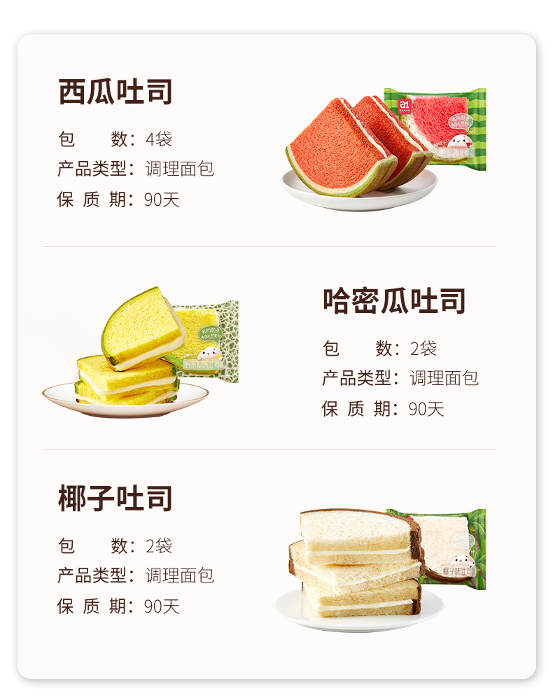 a1夹馅水果吐司 西瓜火龙果哈密瓜口味可选 有颜有料 网红休闲零食 营养早餐面包 400g/480g/盒