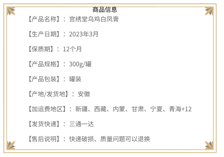 【宫绣堂·乌鸡白凤膏】百年传承 女性滋补养生膏 真材实料 古法熬制 美丽自信 有内而外 300g/瓶