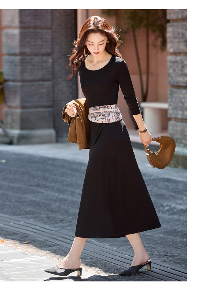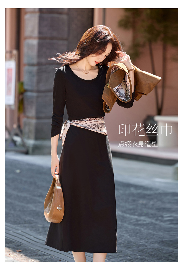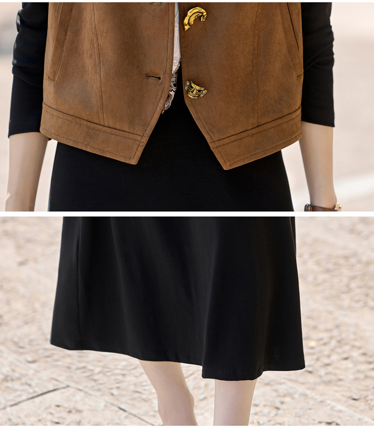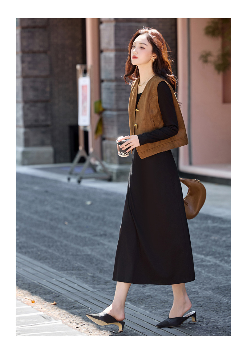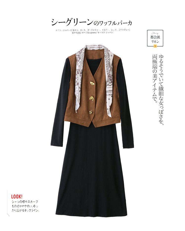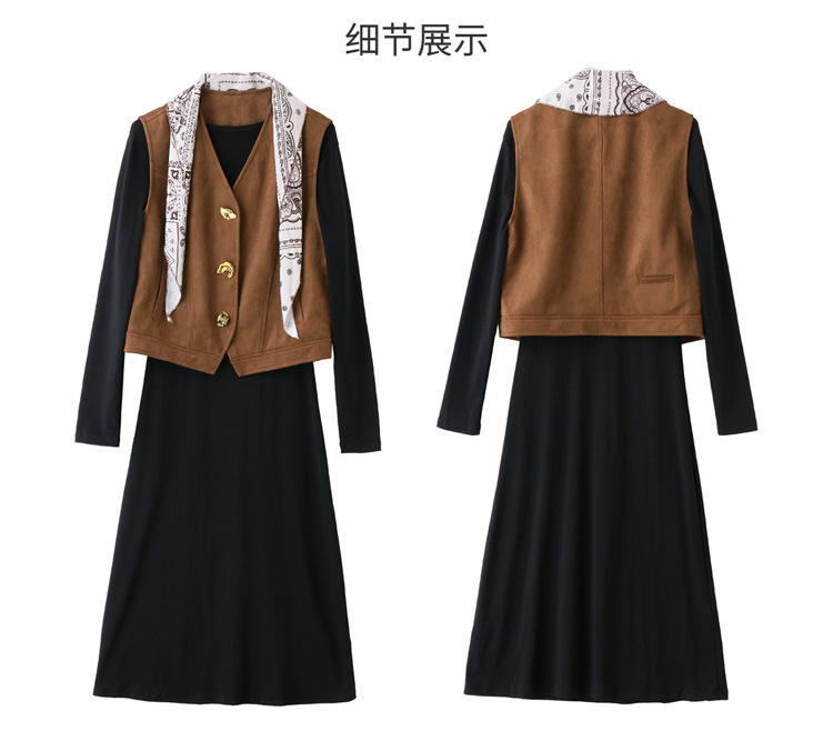 韩系时尚气质麂皮绒马甲,丝巾显瘦打底裙两件套HR-YF2621