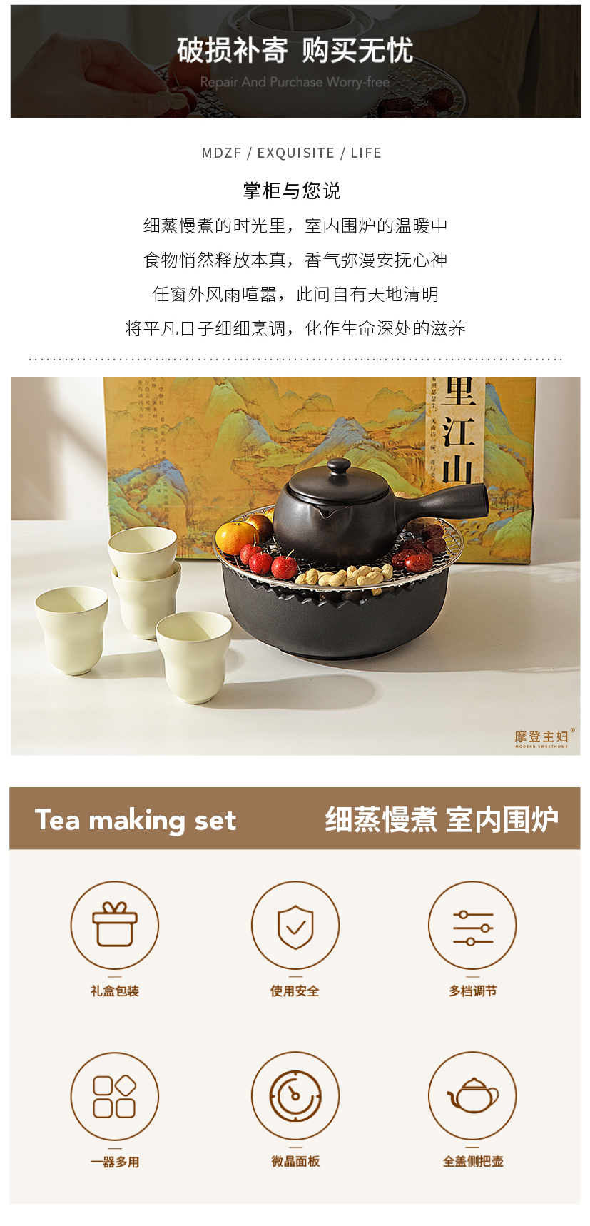 摩登主妇围炉煮茶礼盒陶瓷泡茶壶2025新款煮茶炉烤奶茶罐茶具套装