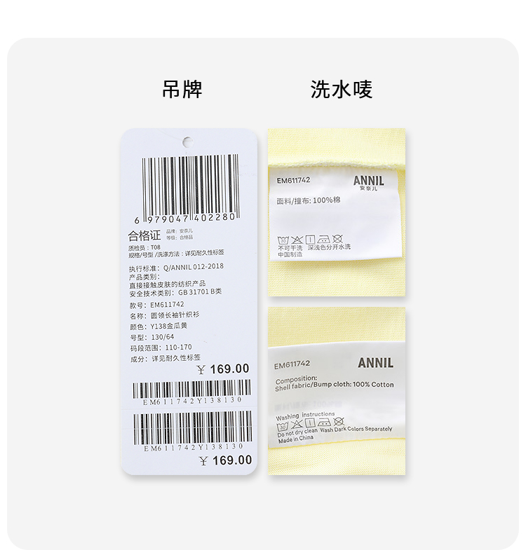 男女童圆领长袖针织衫春季新款安奈儿童装EM611742