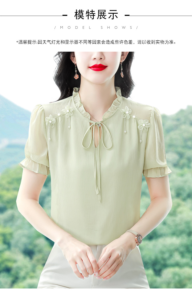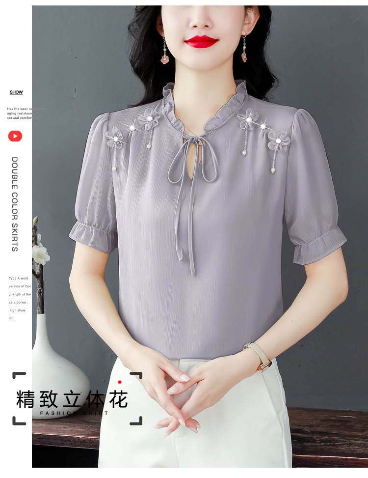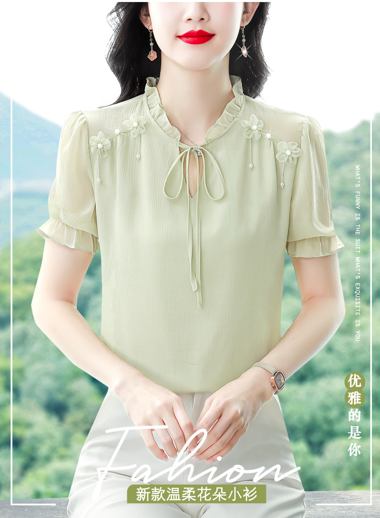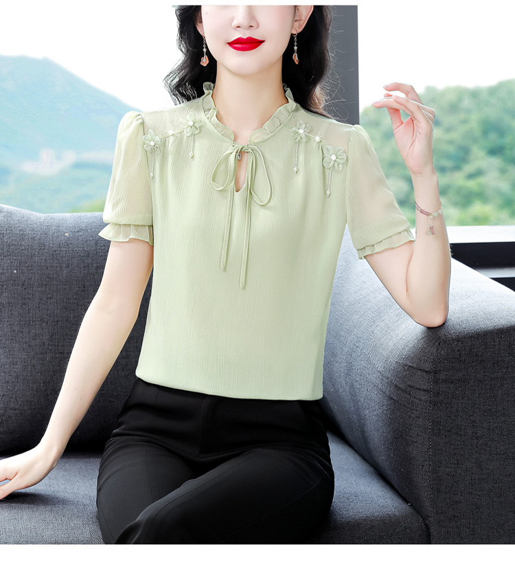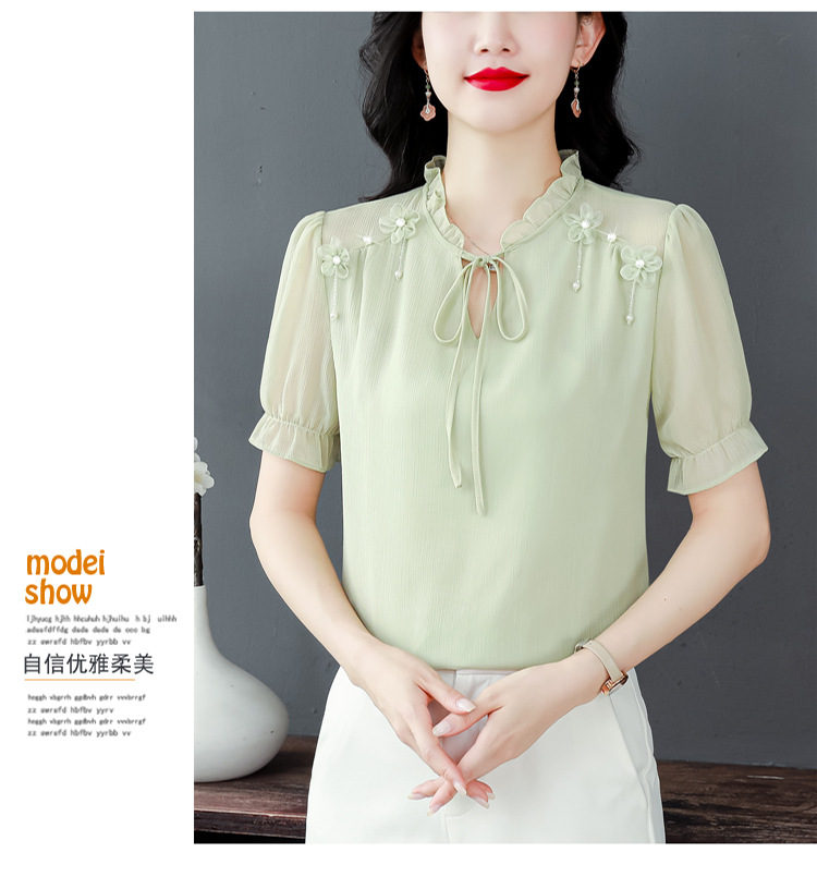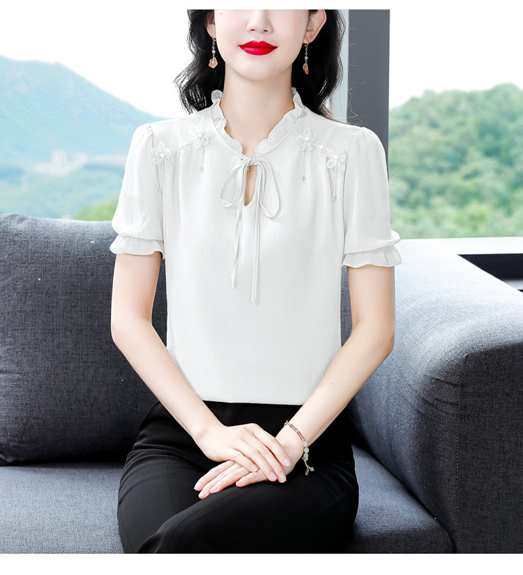 MZ 16578系带木耳边雪纺衫洋气小衫