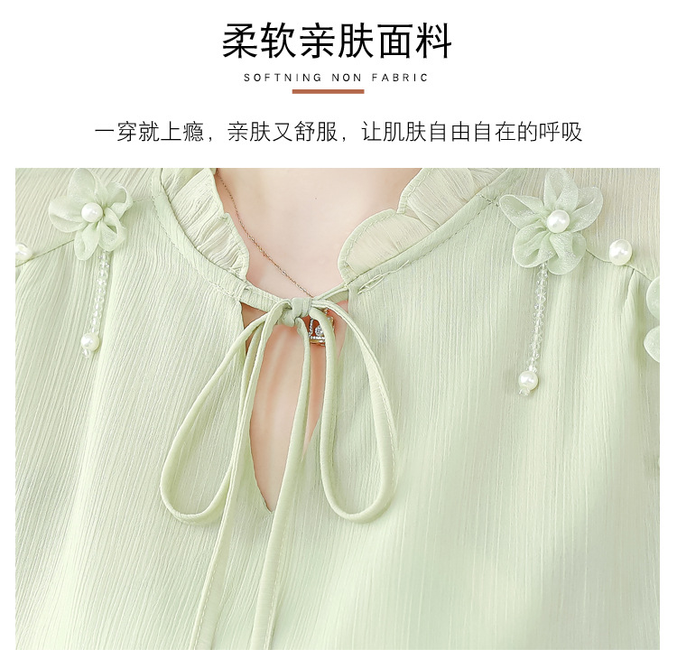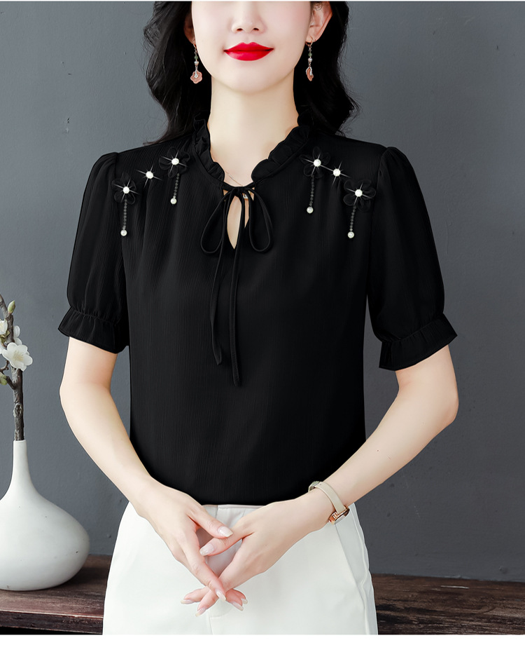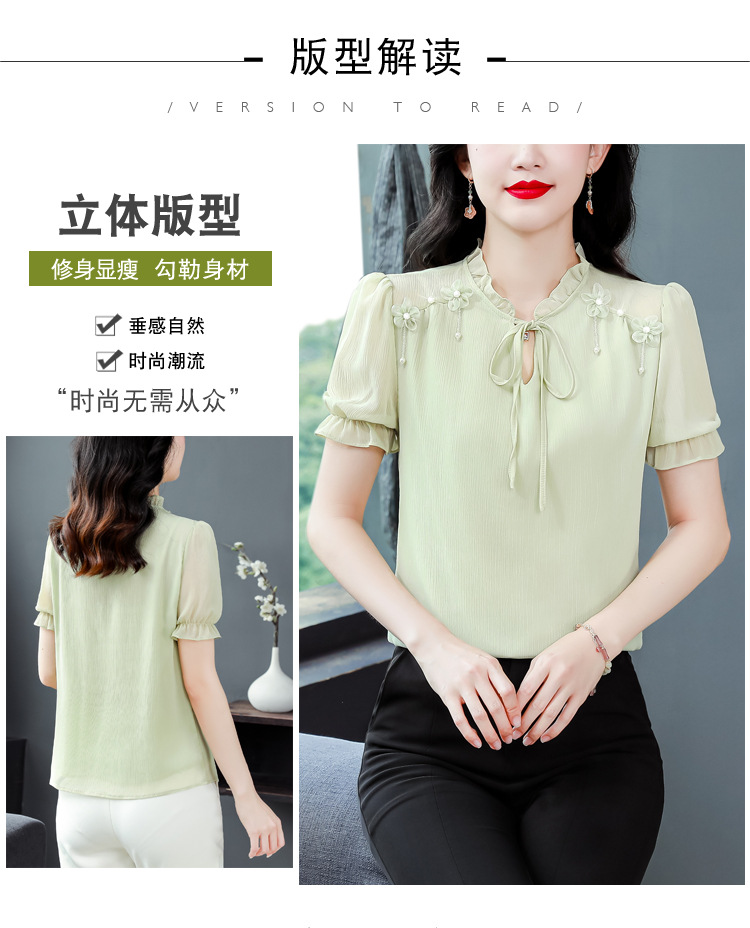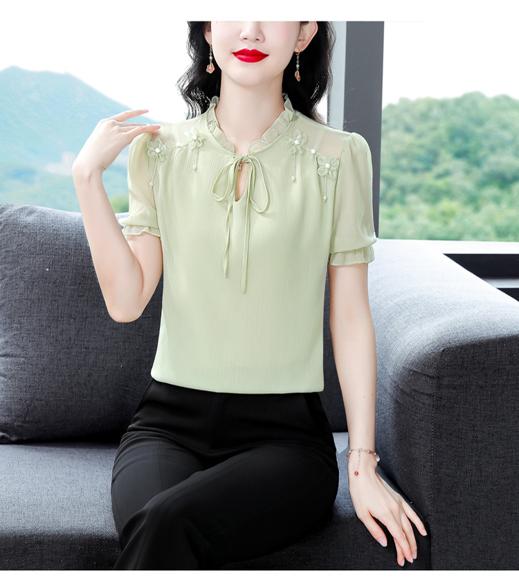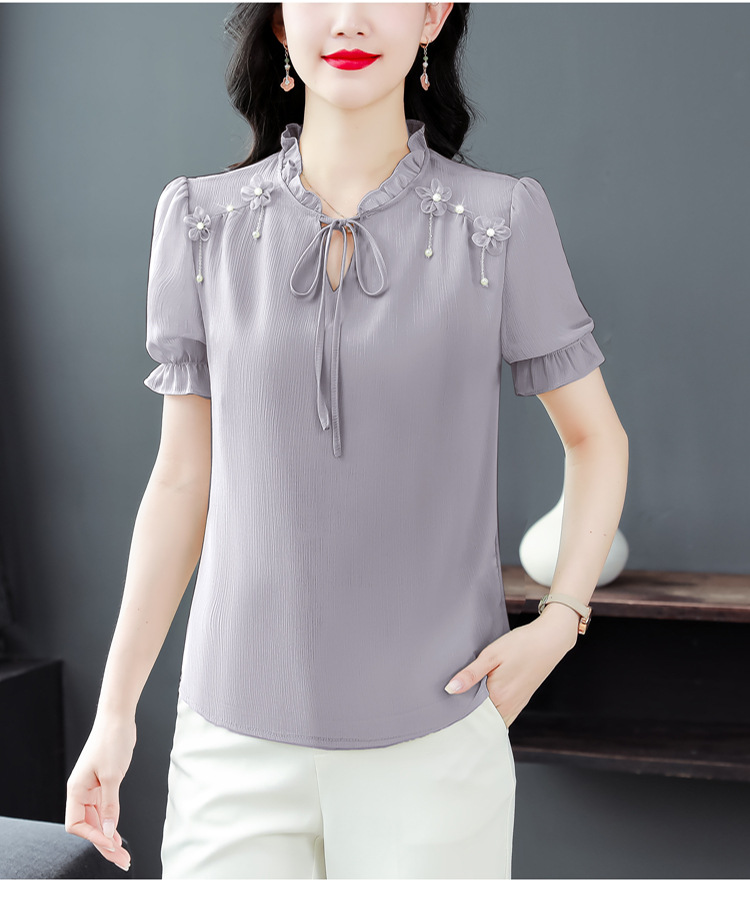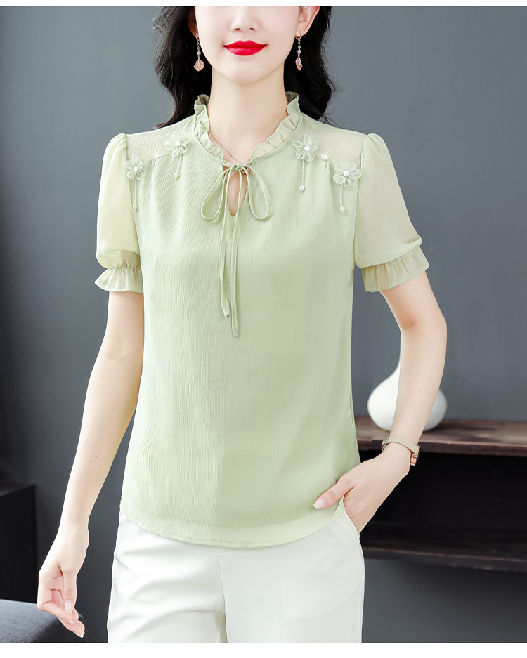 MZ 16578系带木耳边雪纺衫洋气小衫
