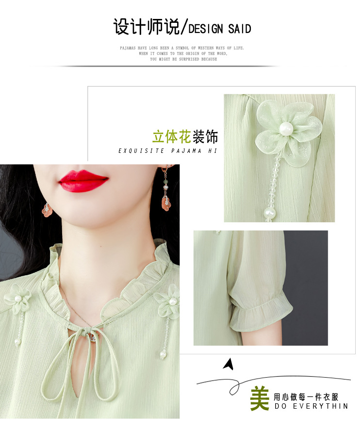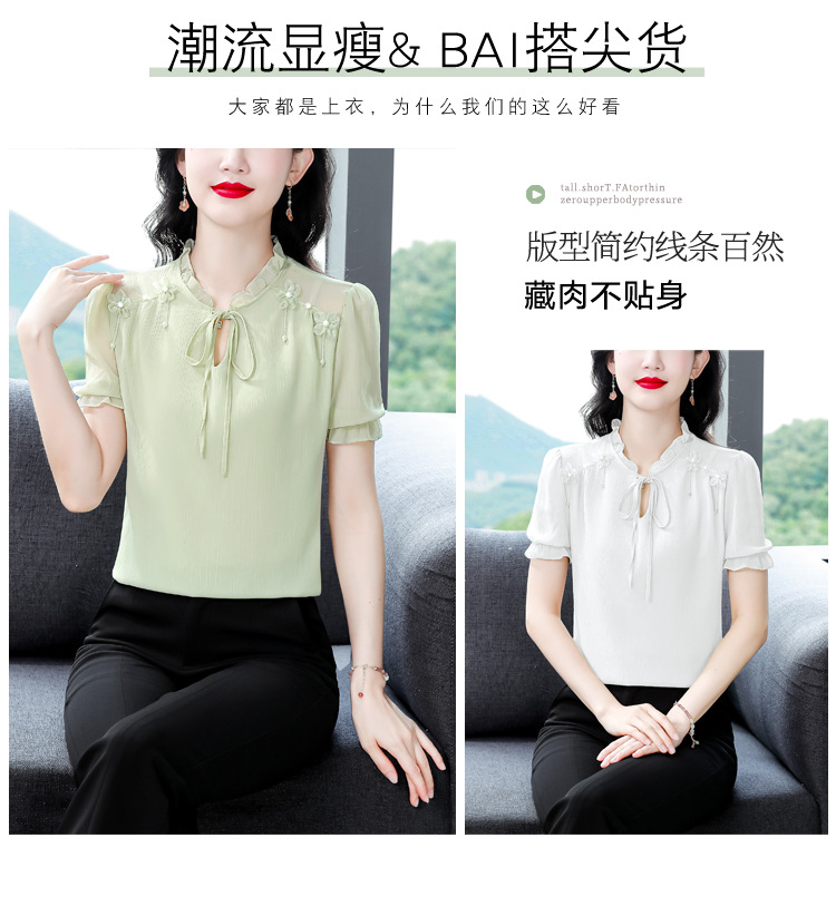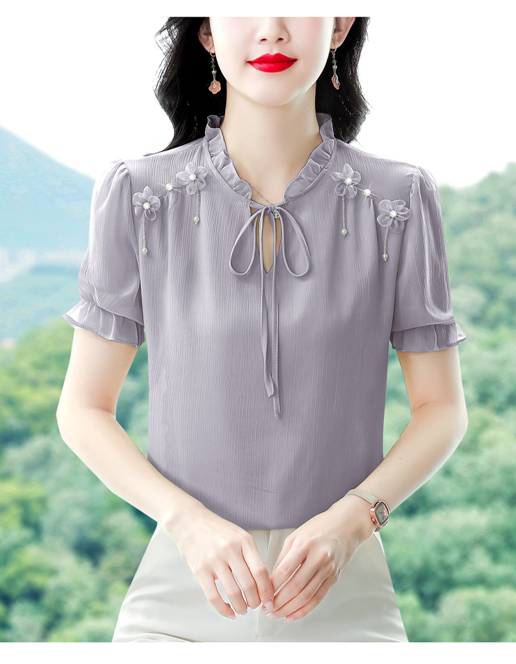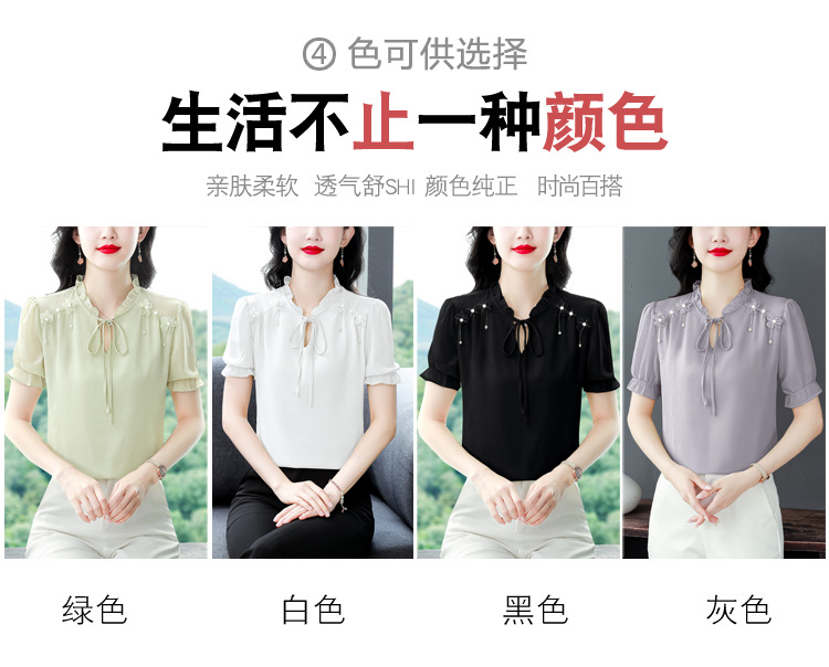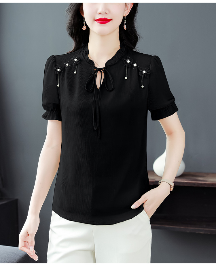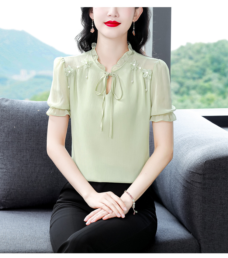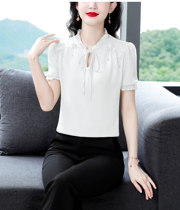 MZ 16578系带木耳边雪纺衫洋气小衫