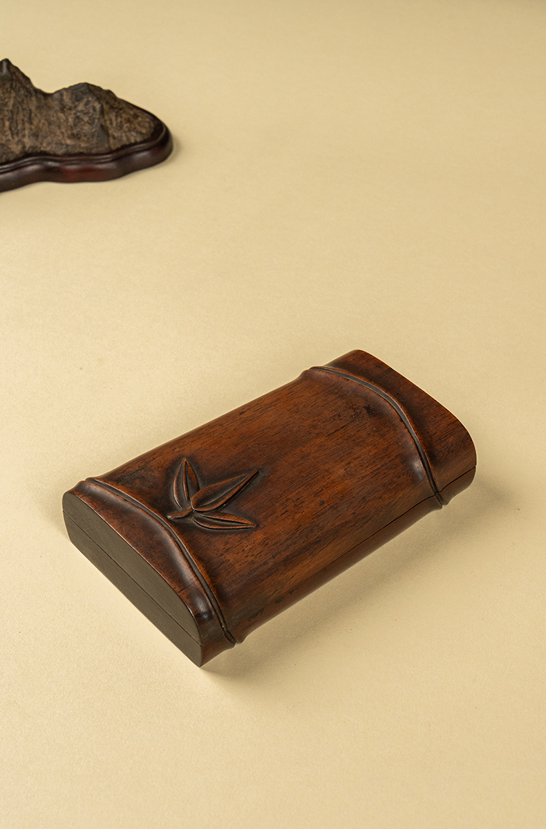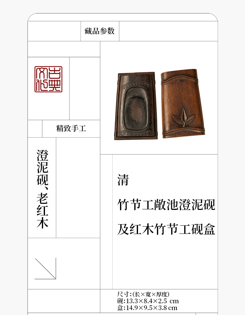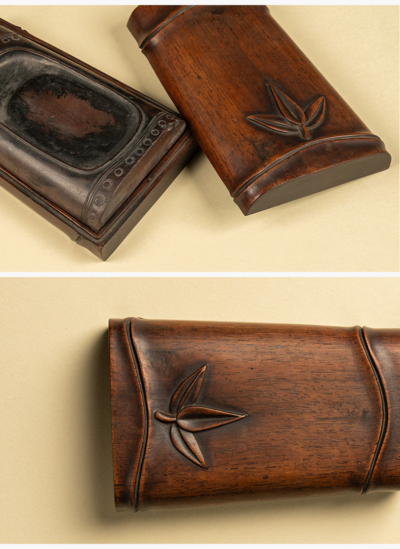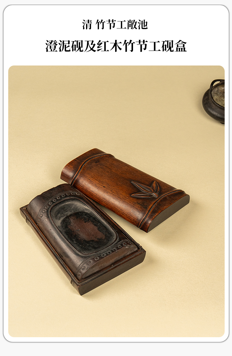 清 竹节工敞池澄泥砚及红木竹节工砚盒