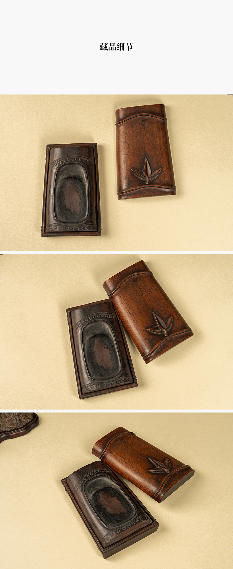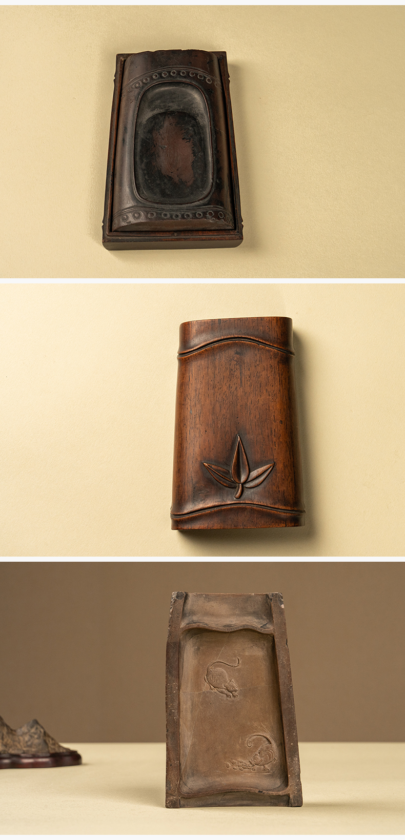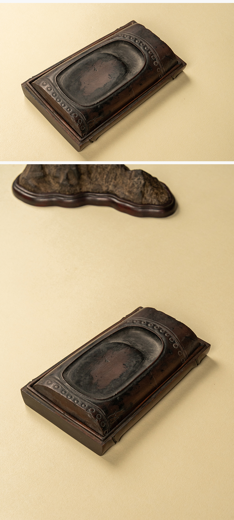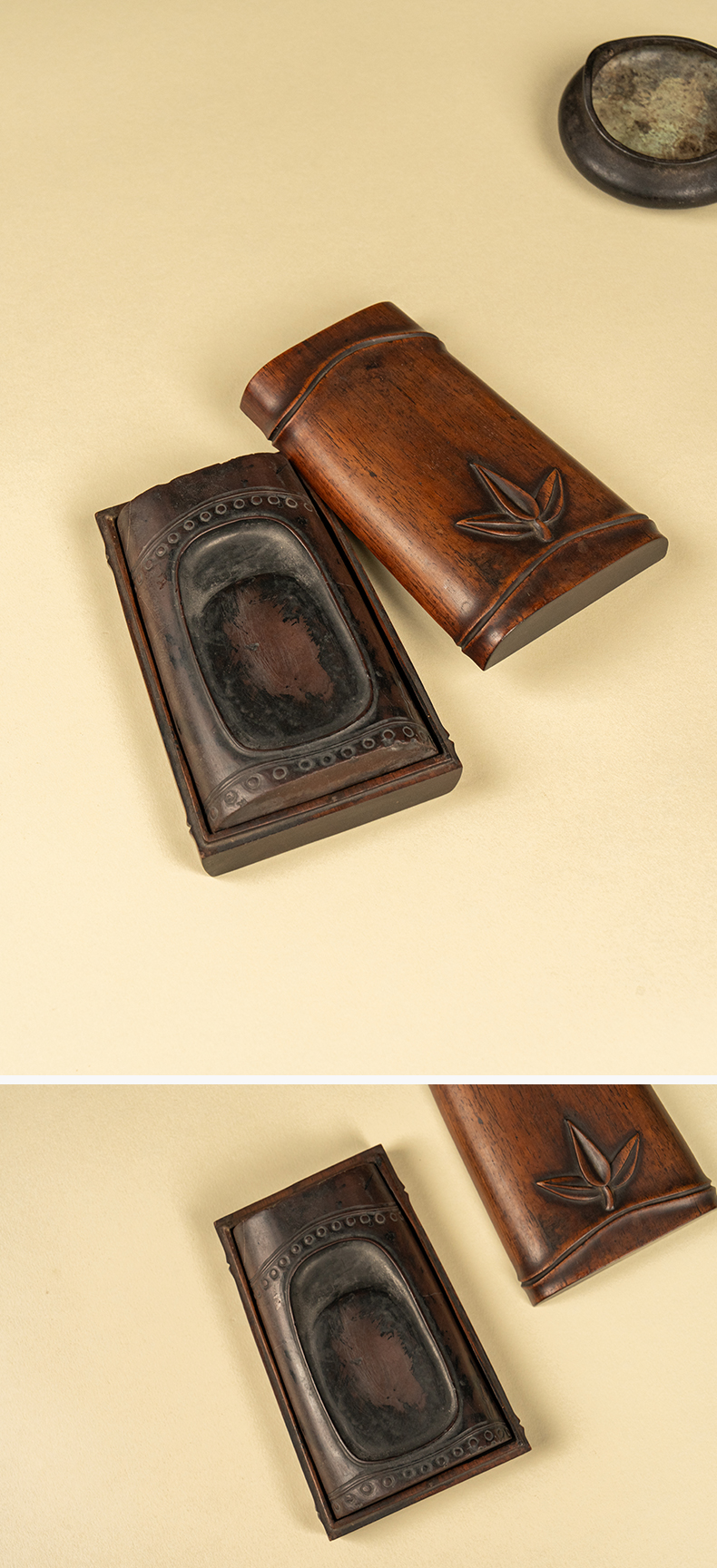 清 竹节工敞池澄泥砚及红木竹节工砚盒