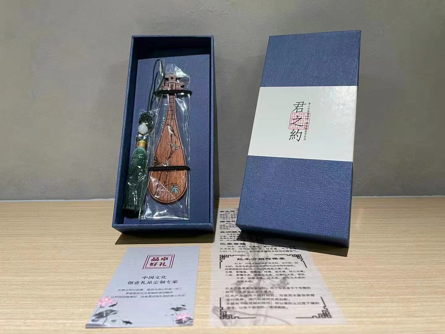 红木古典中国风乐器彩绘书签礼盒装