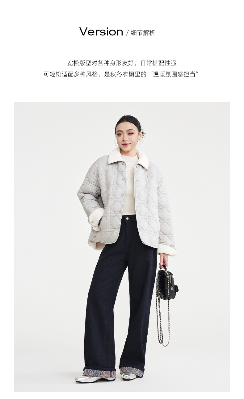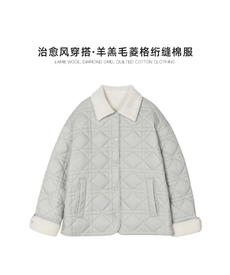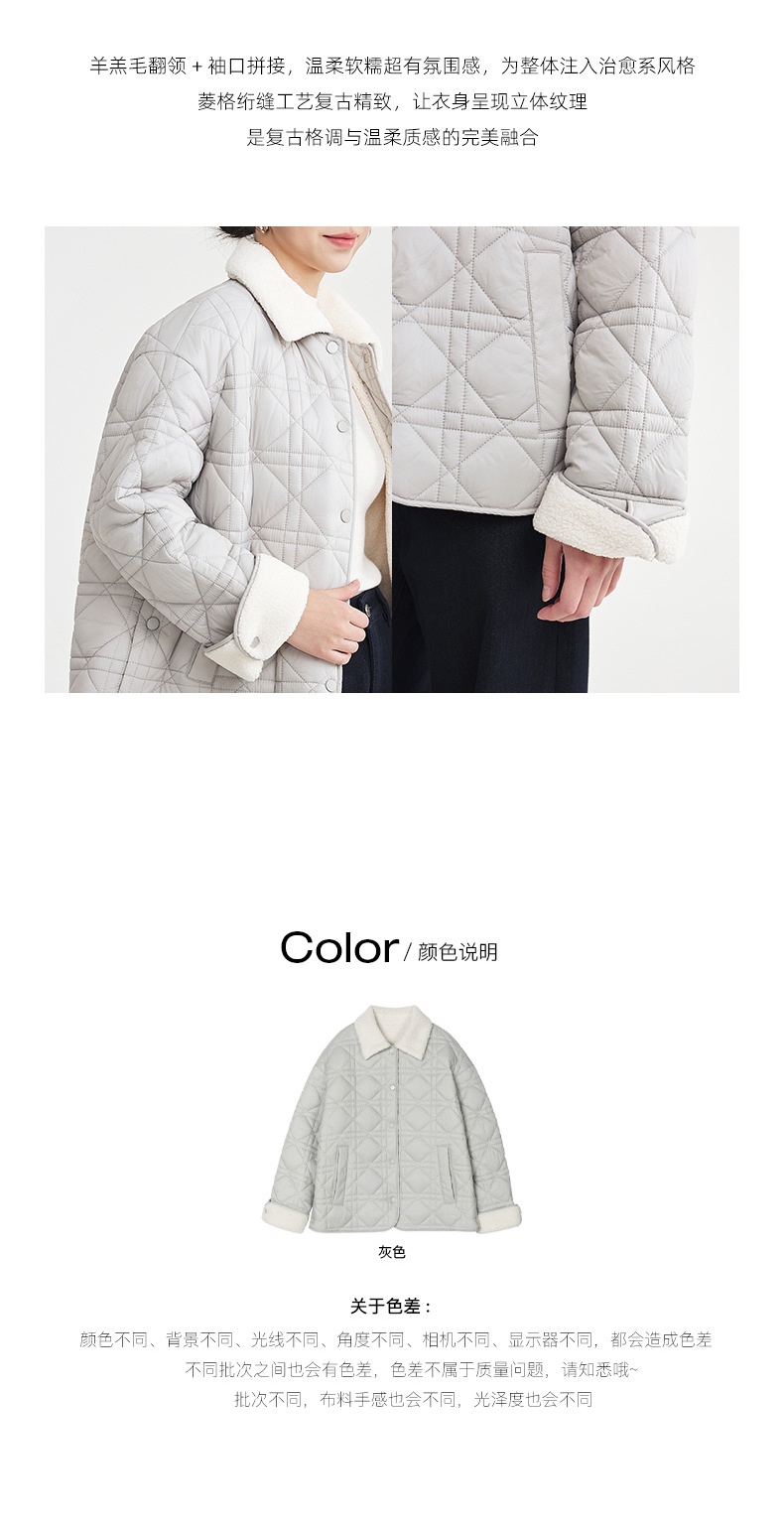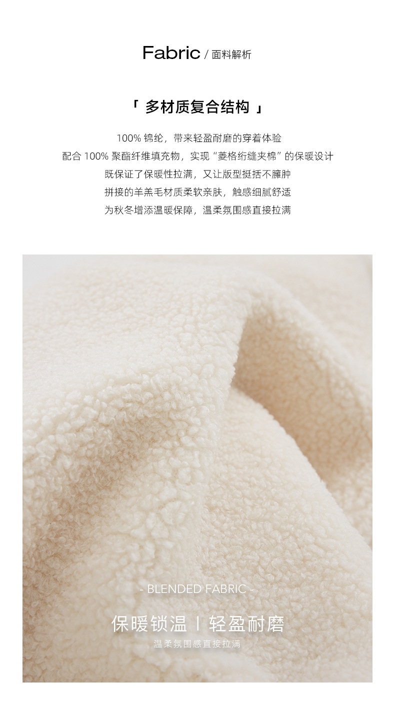「自」全新升级【铂金会员293/天猫389/差价96】(20505)洛诗琳简约翻领撞色棉服2025冬季新款绗缝羊羔毛厚外套女