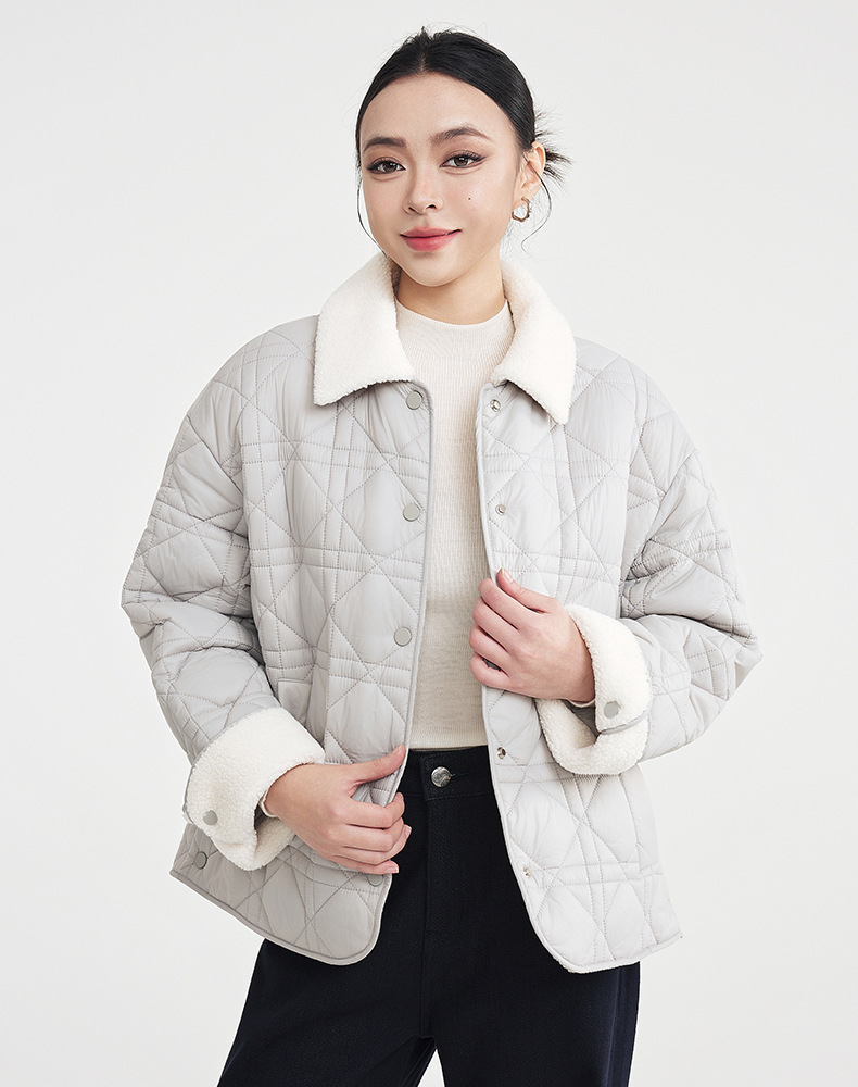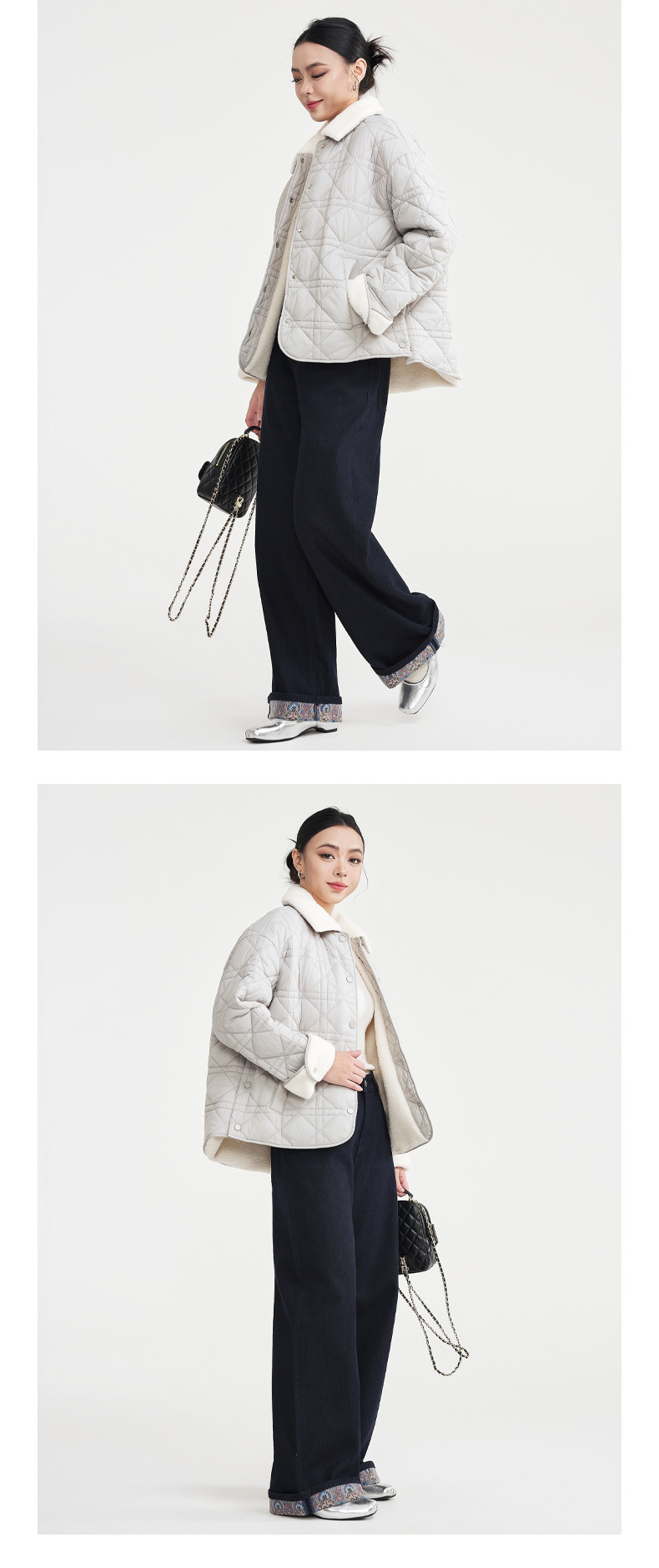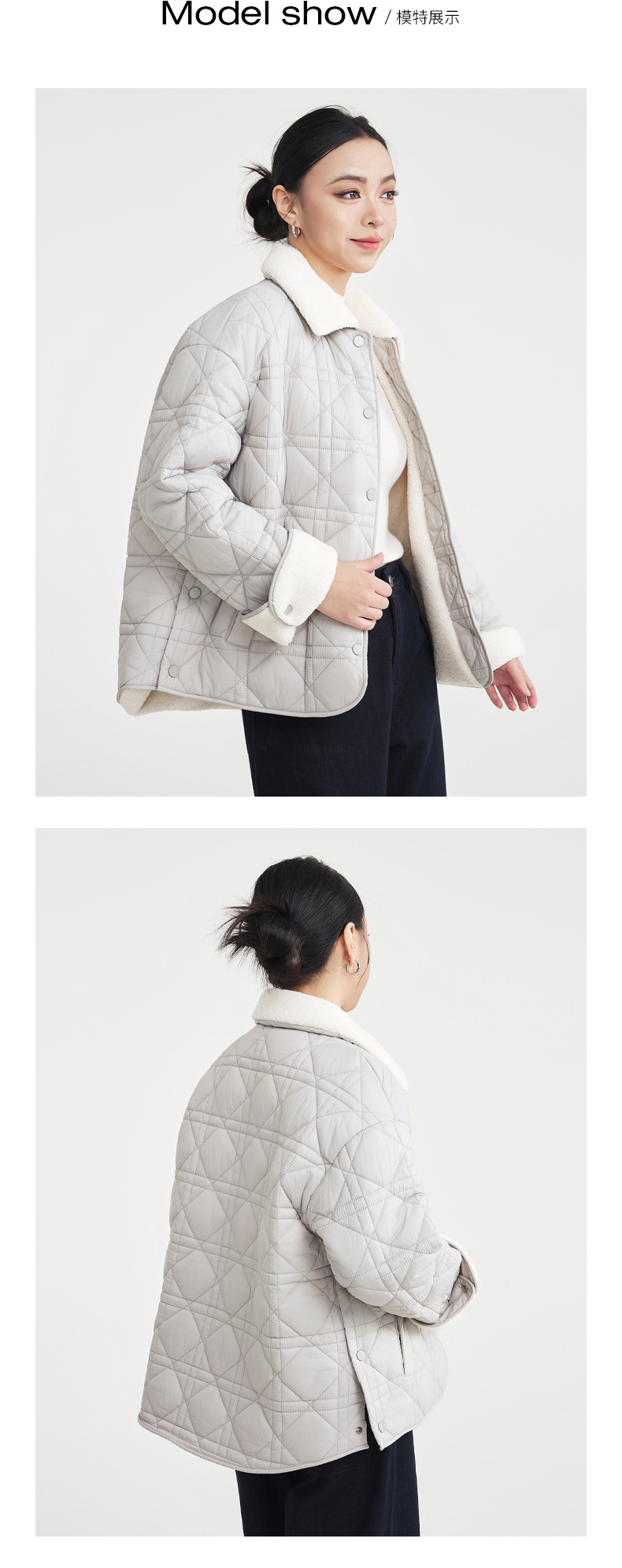 「自」全新升级【铂金会员293/天猫389/差价96】(20505)洛诗琳简约翻领撞色棉服2025冬季新款绗缝羊羔毛厚外套女