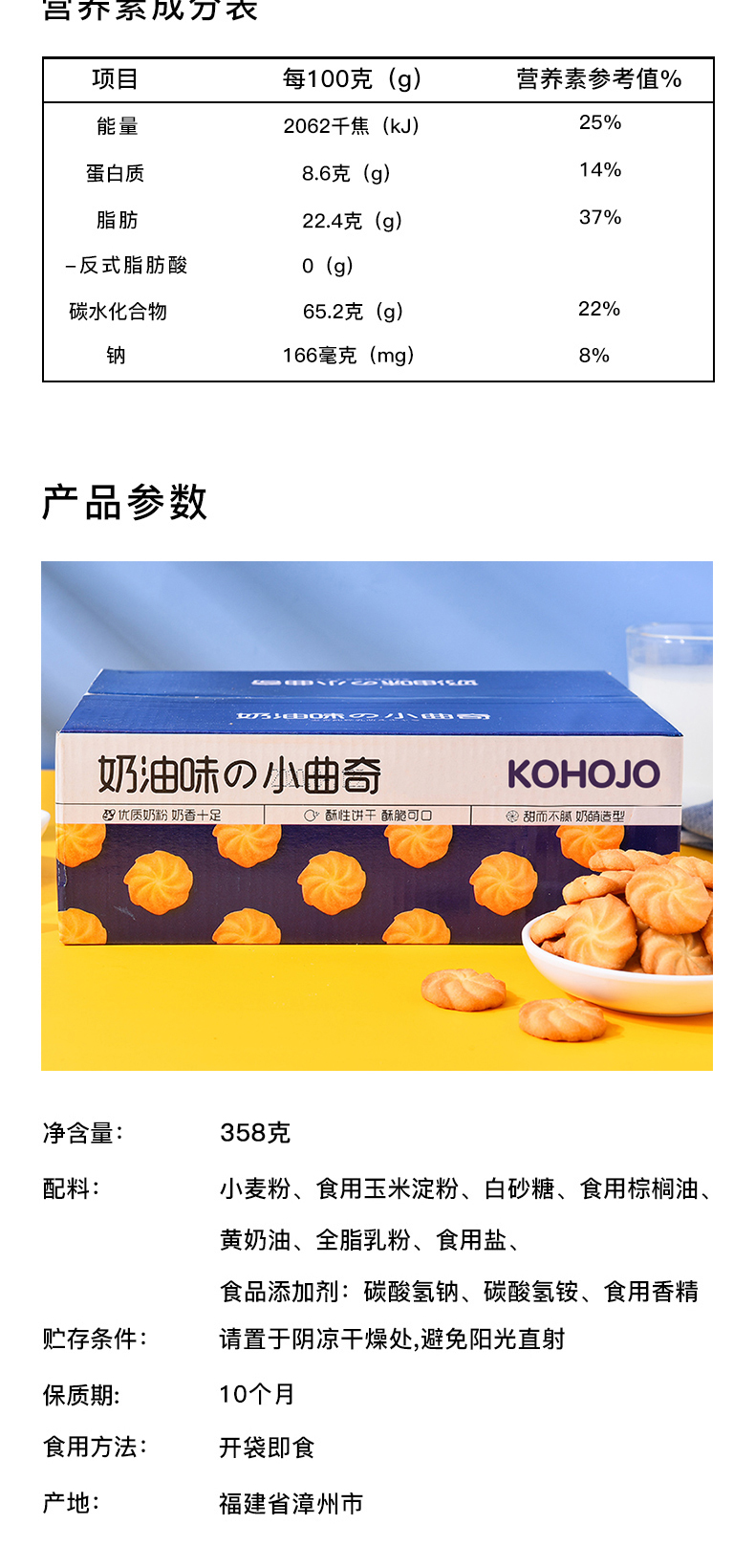 卡贺家KOHOJO奶油味の小曲奇 358g/箱 精选小麦粉,清新奶香,口感丰富浓郁,食而不腻