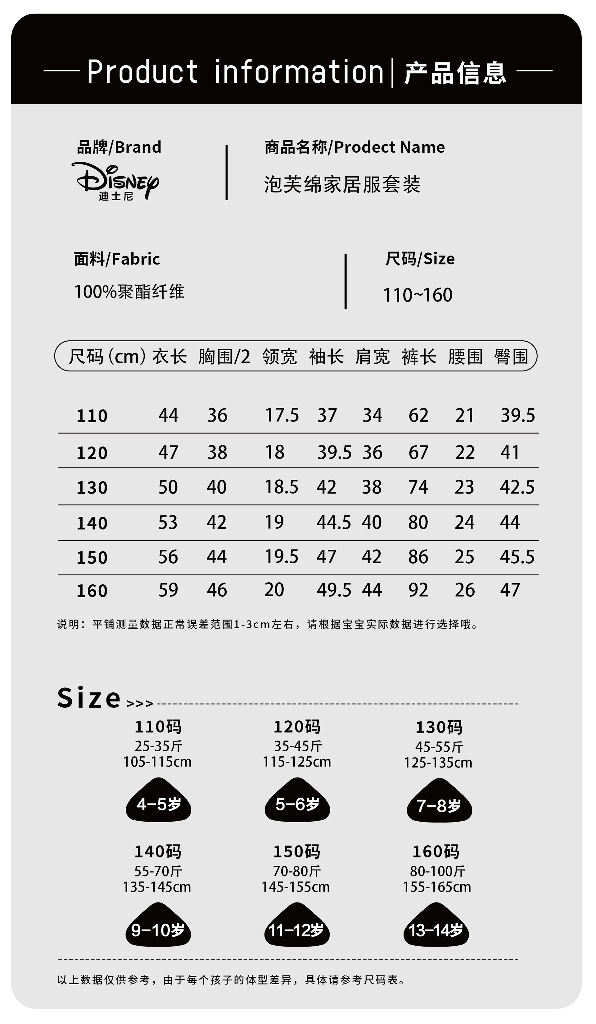 【预售-12月26日配送】Disney迪士尼泡芙棉儿童家居服(主旋律米奇-浅蓝色)/1套(150码,适合40-50kg)