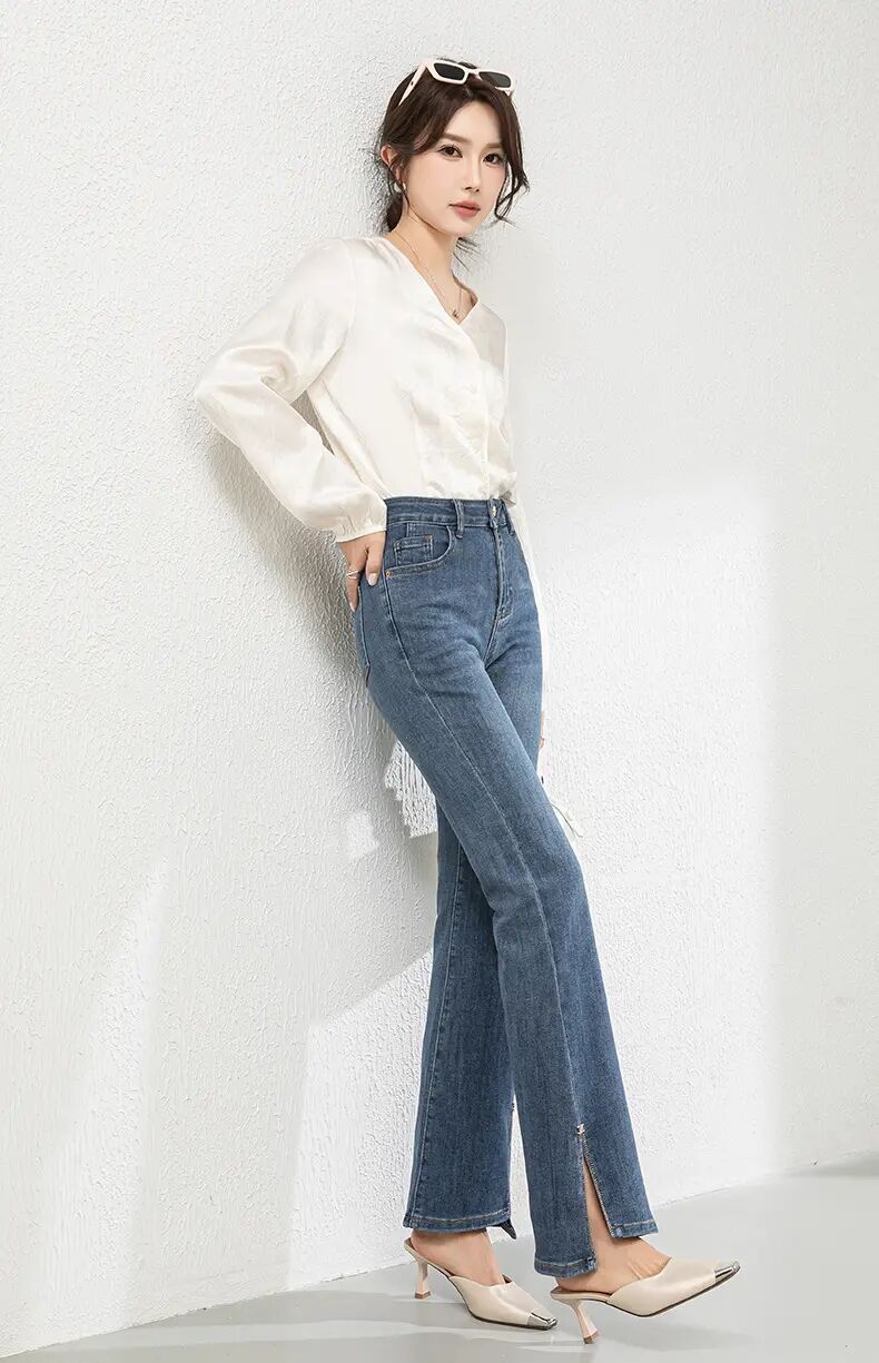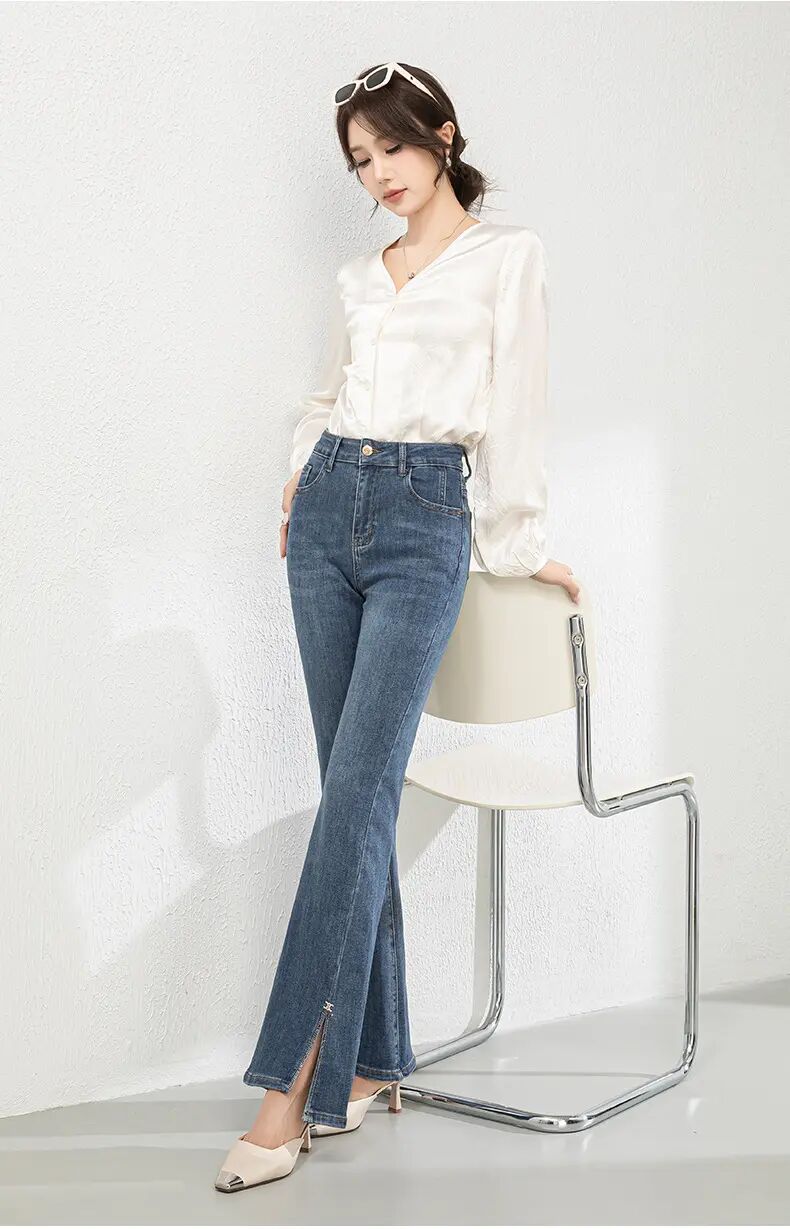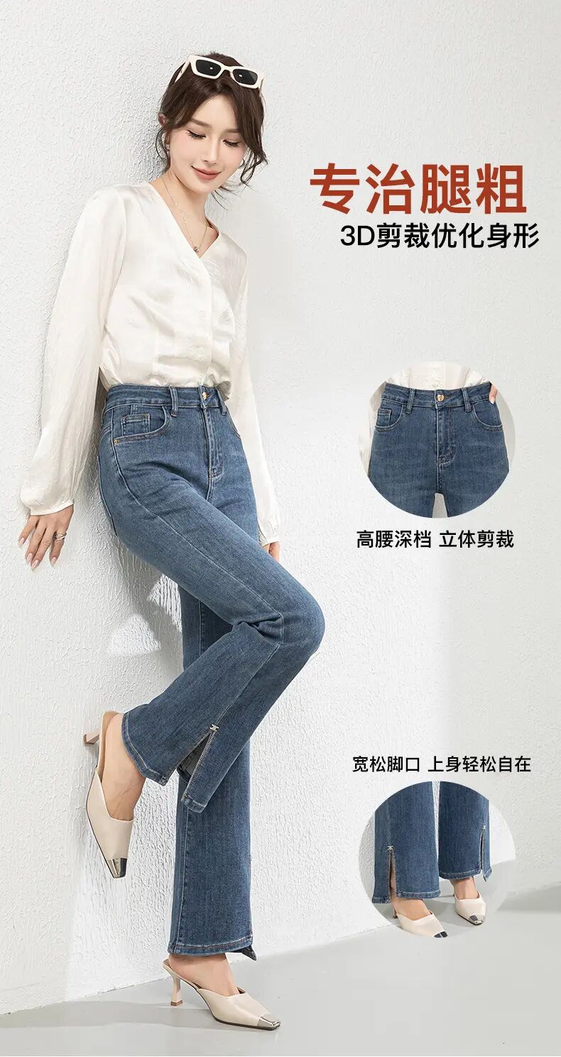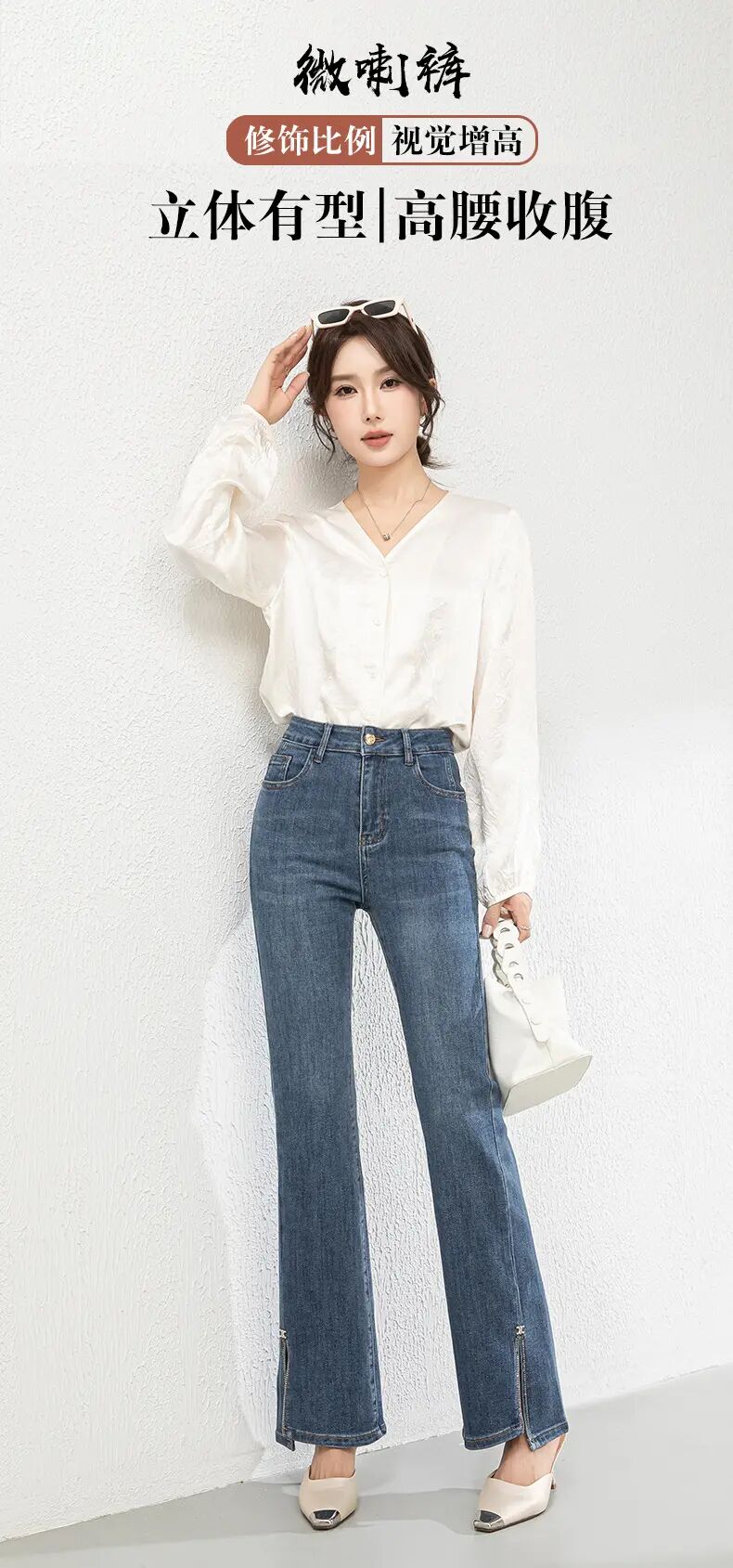 【高货rg】全新升级【铂金会员165/天猫219/差价54】(83554) 洛诗琳镶钻牛仔裤25春季高腰弹力不规则开叉脚口微喇叭裤