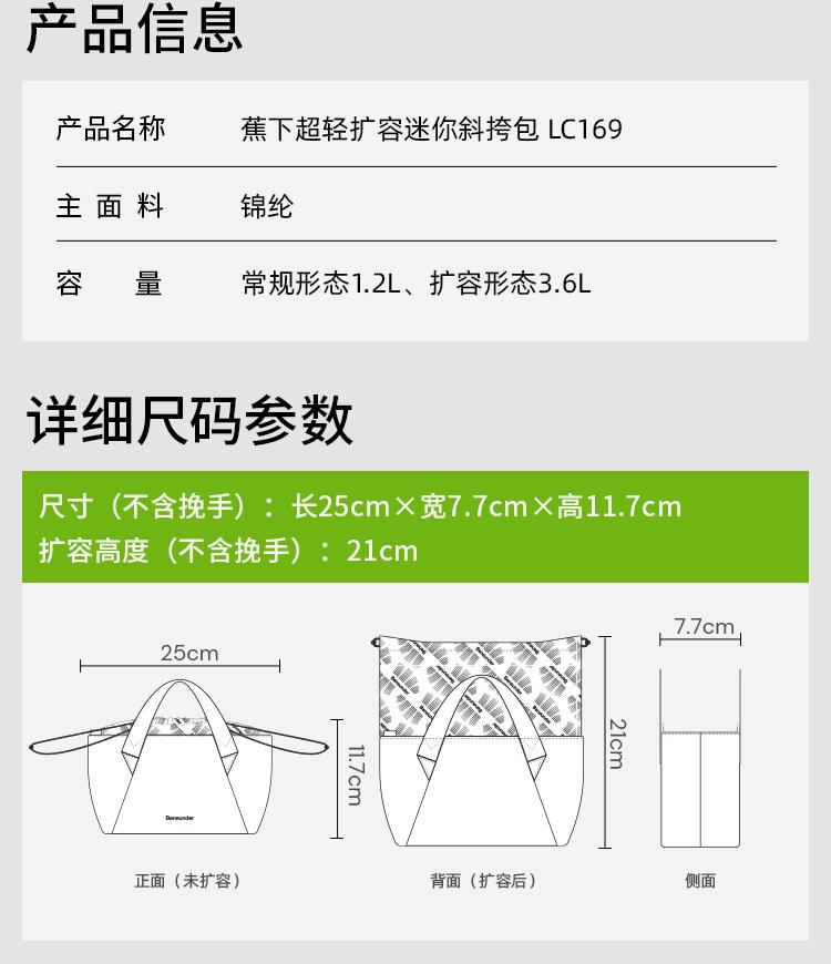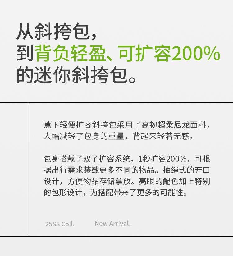 【新品】蕉下超轻扩容迷你斜挎包LC16925轻巧便携运动户外透气单肩包GF