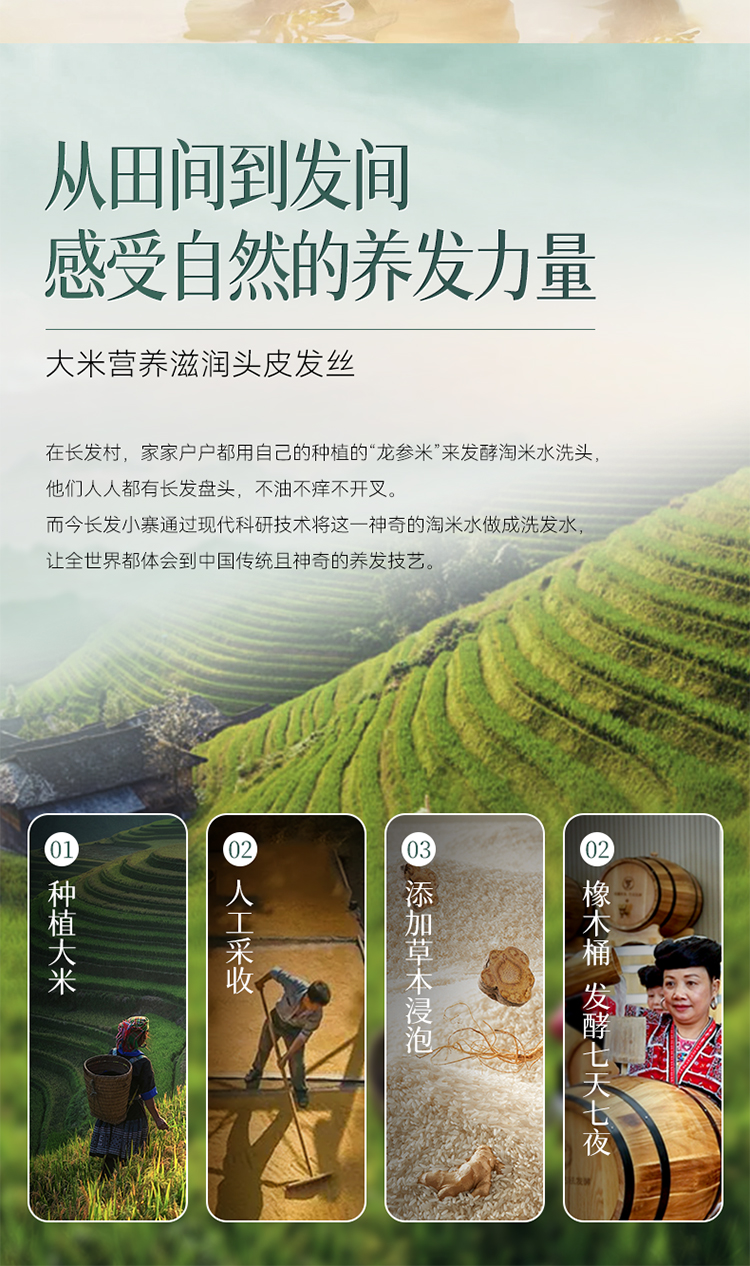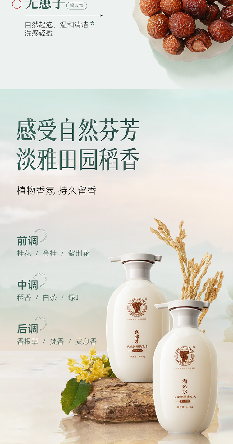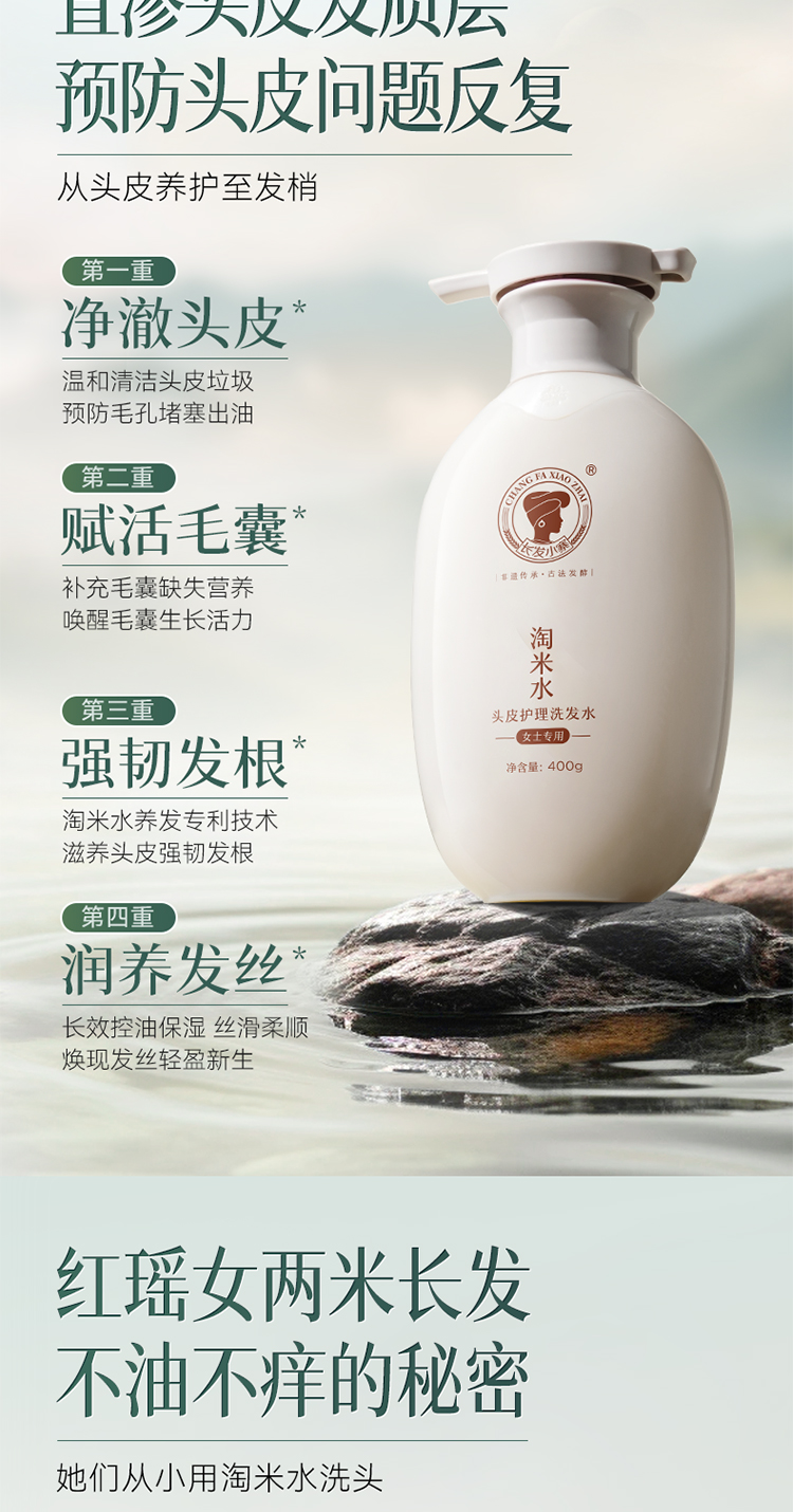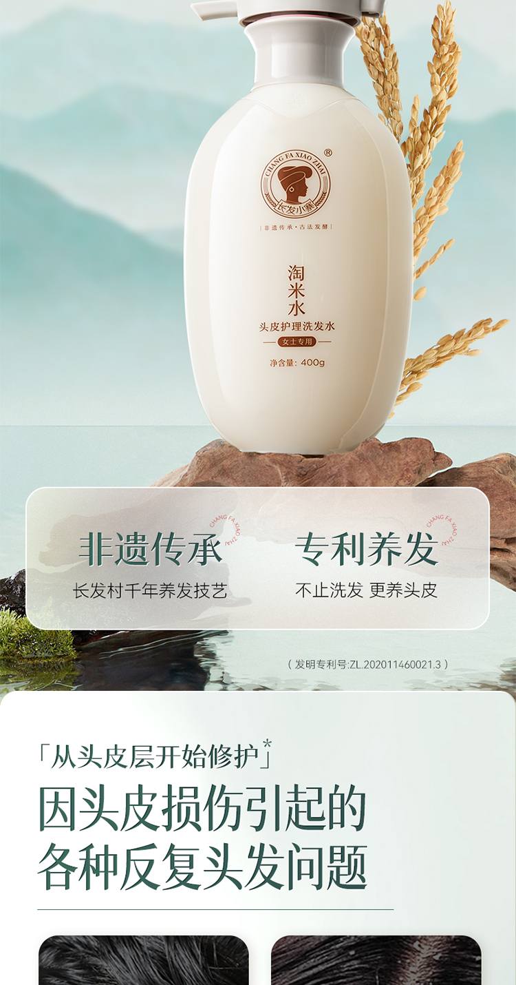 长发小寨淘米水洗发水控油去屑400g/瓶洗护套装