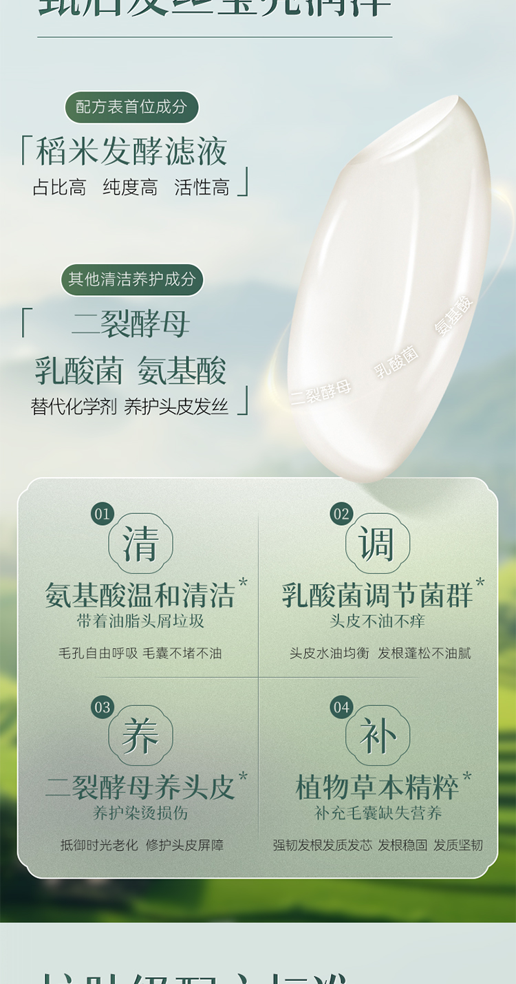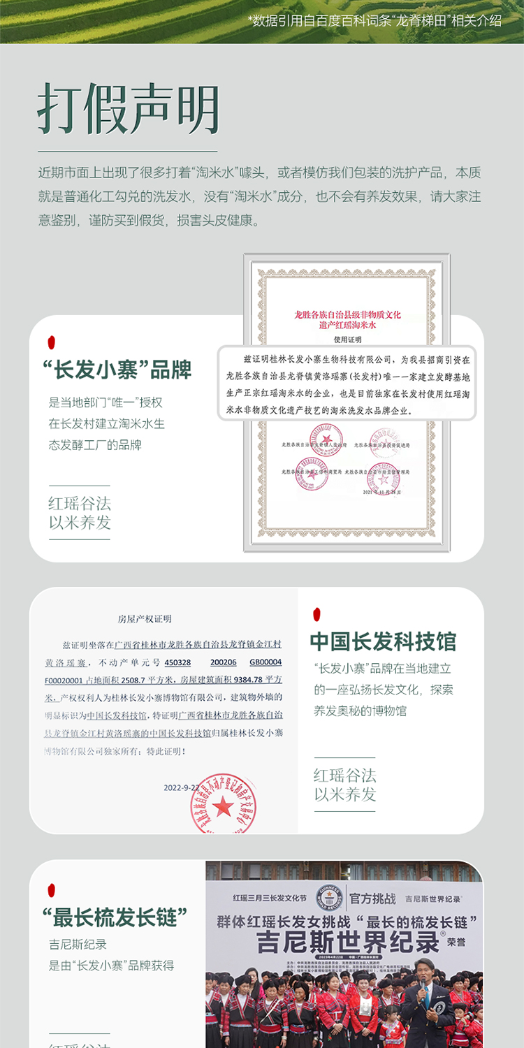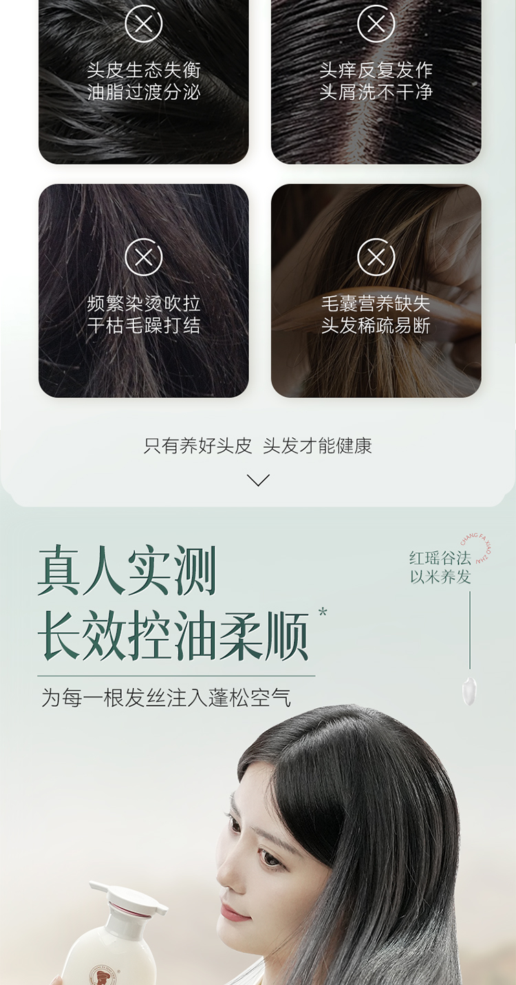 长发小寨淘米水洗发水控油去屑400g/瓶洗护套装
