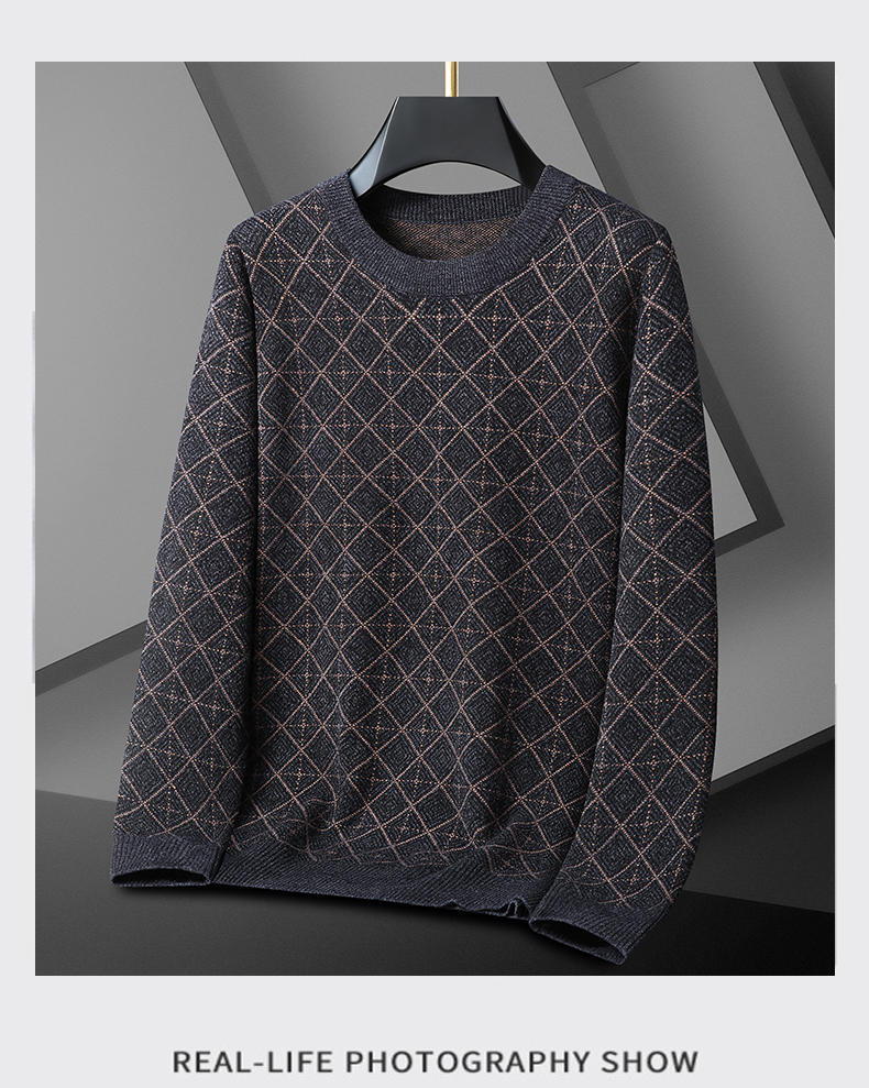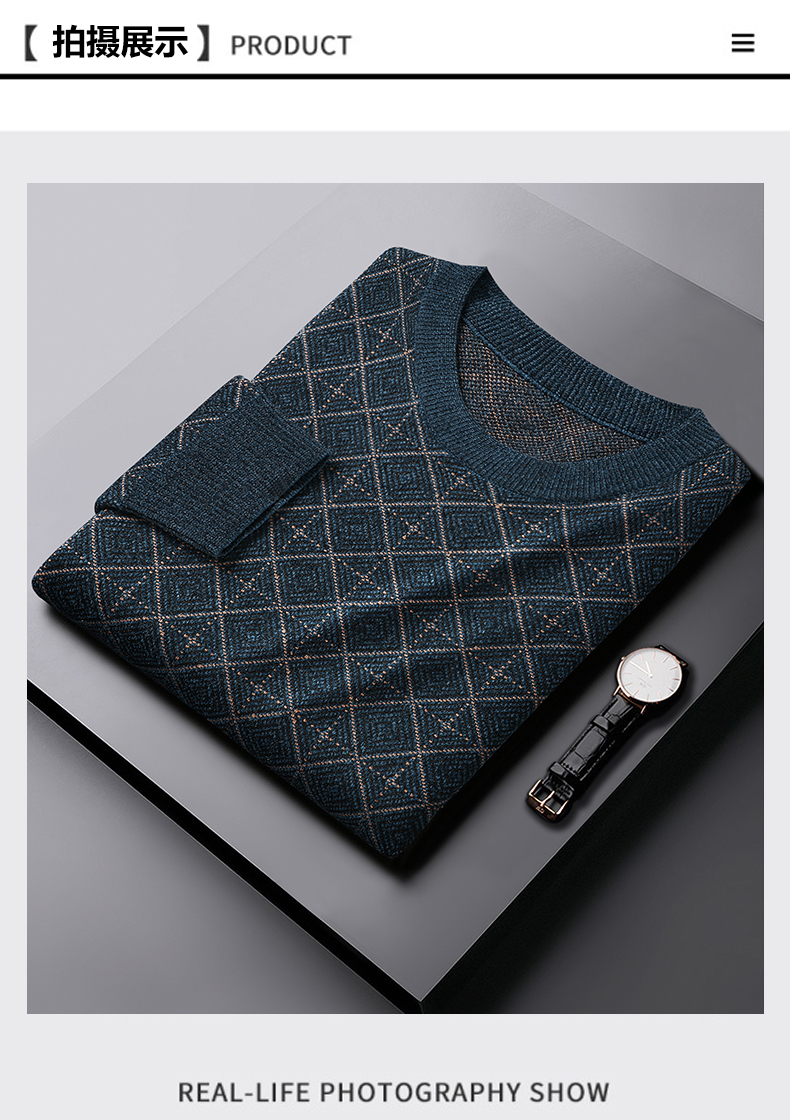 【新款DWP】大依优型大码针织衫圆领加肥加大毛衣大号胖子宽松毛衫男装上衣打底
