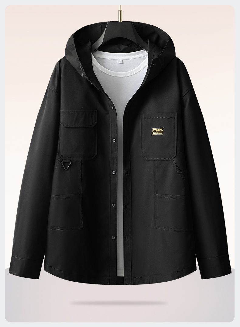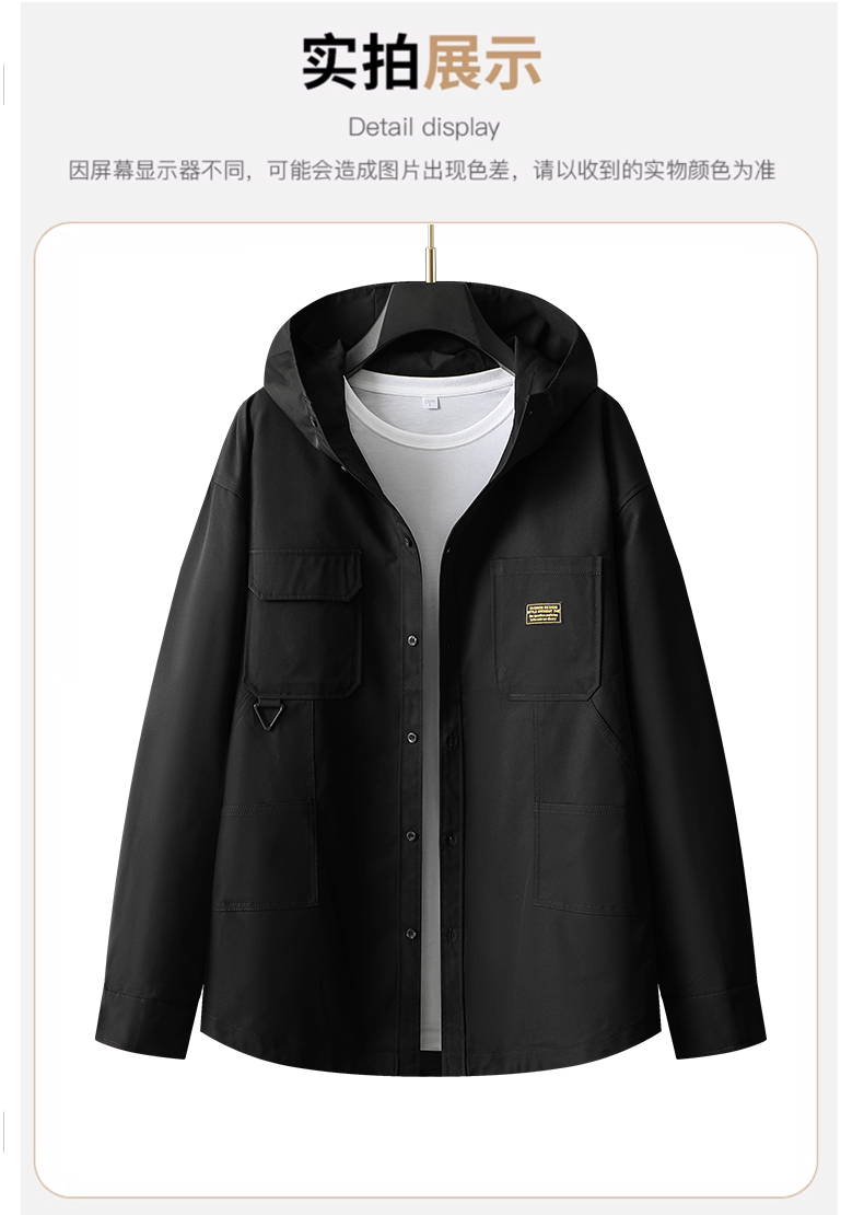 【新款DPX】大依优型大码前胸口袋工装连帽外套夹克男装胖子春夹克宽松外套男