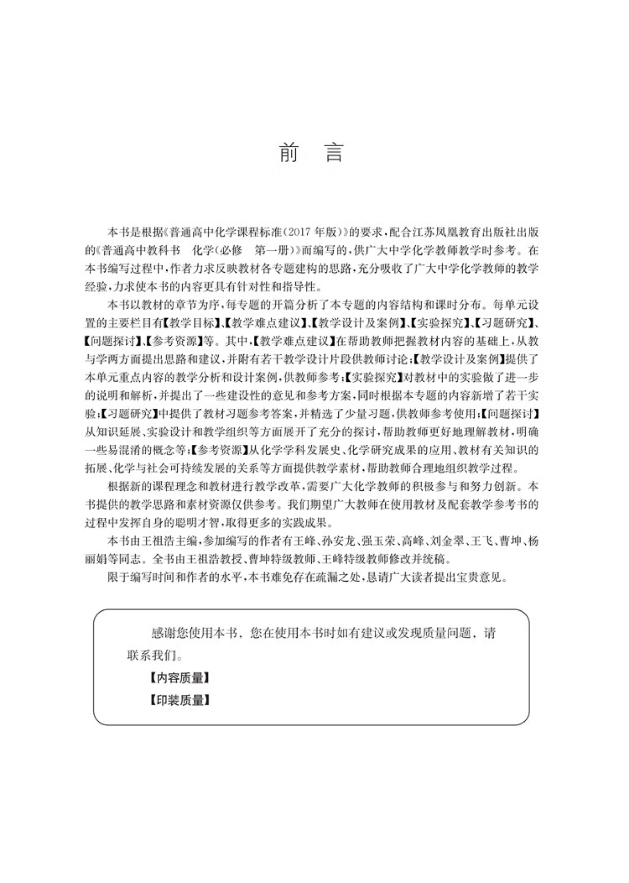 2025年 高中化学教学参考书 必修第一册 (含光盘) 配苏教版普通高中教科书 必修第1册 教师用书 江苏凤凰教育出版社