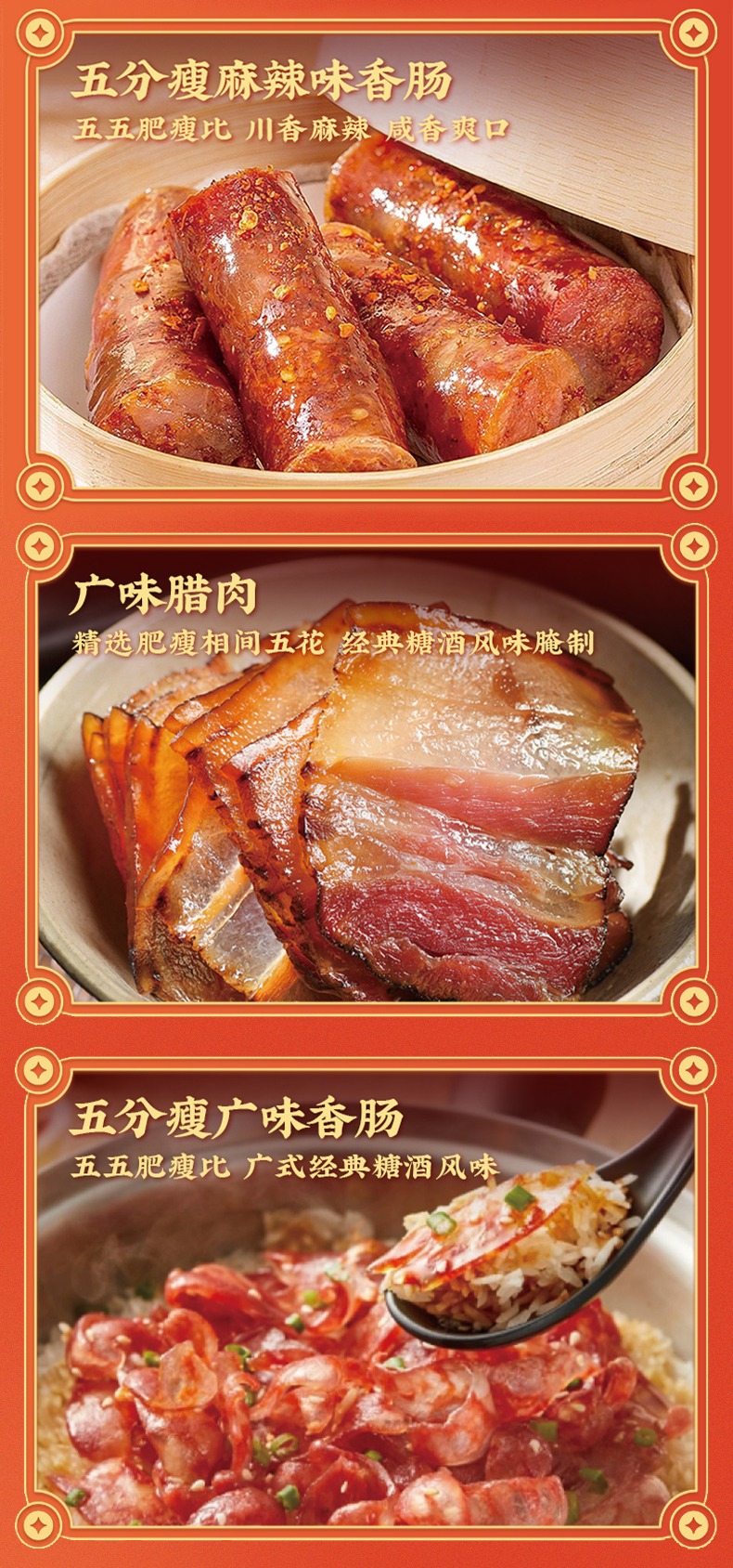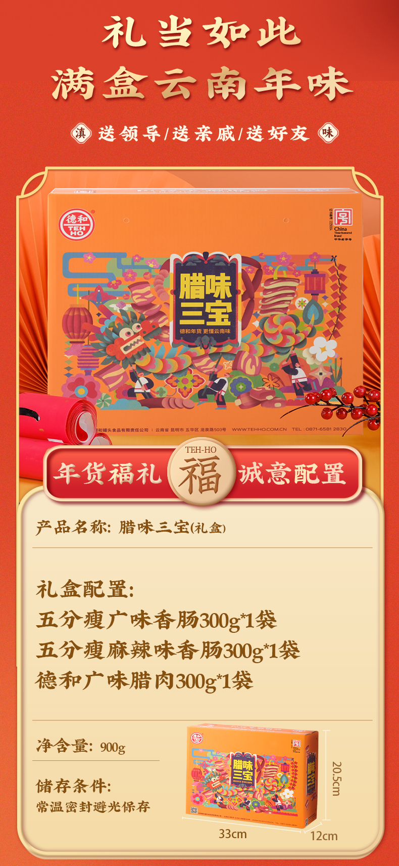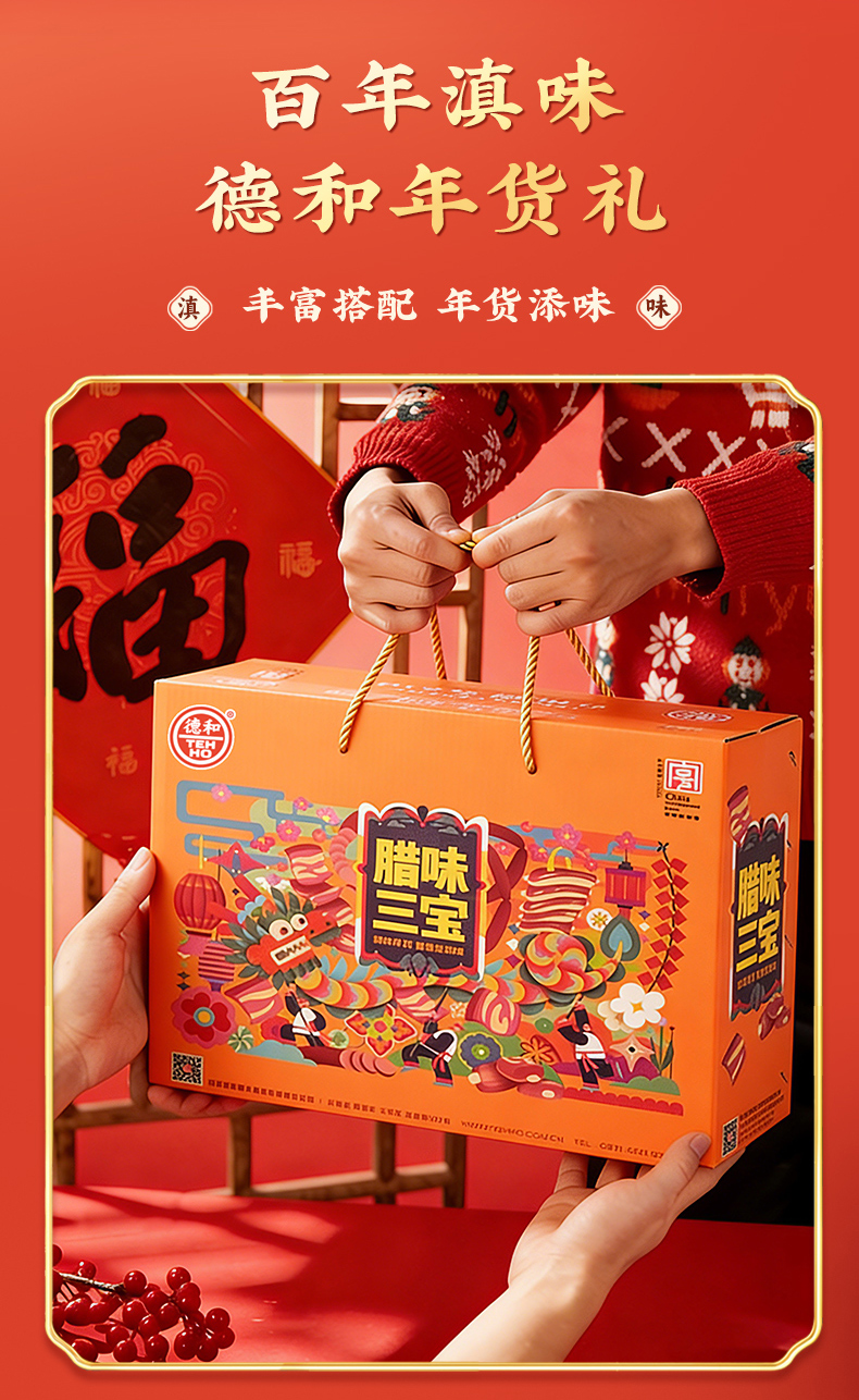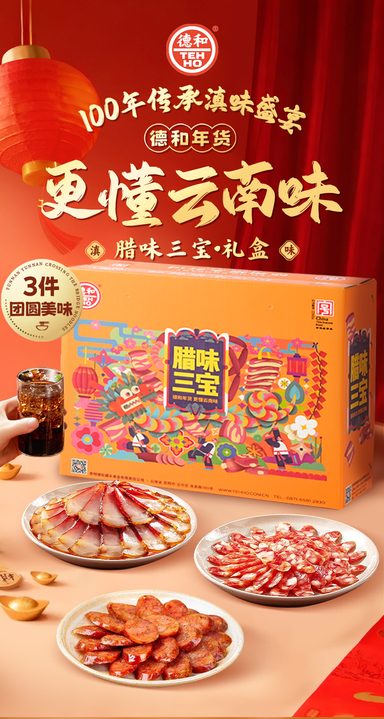 德和 腊味三宝礼盒 年货礼盒 香肠腊肉组合 春节过年送礼物