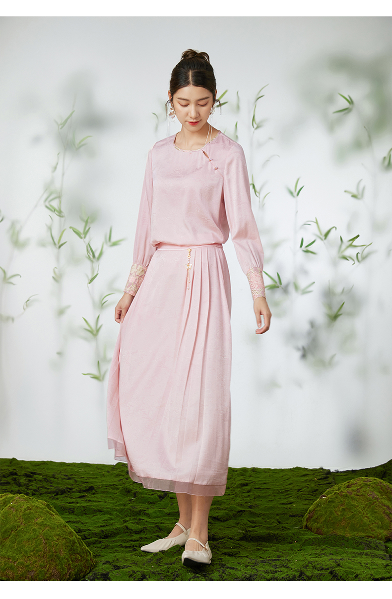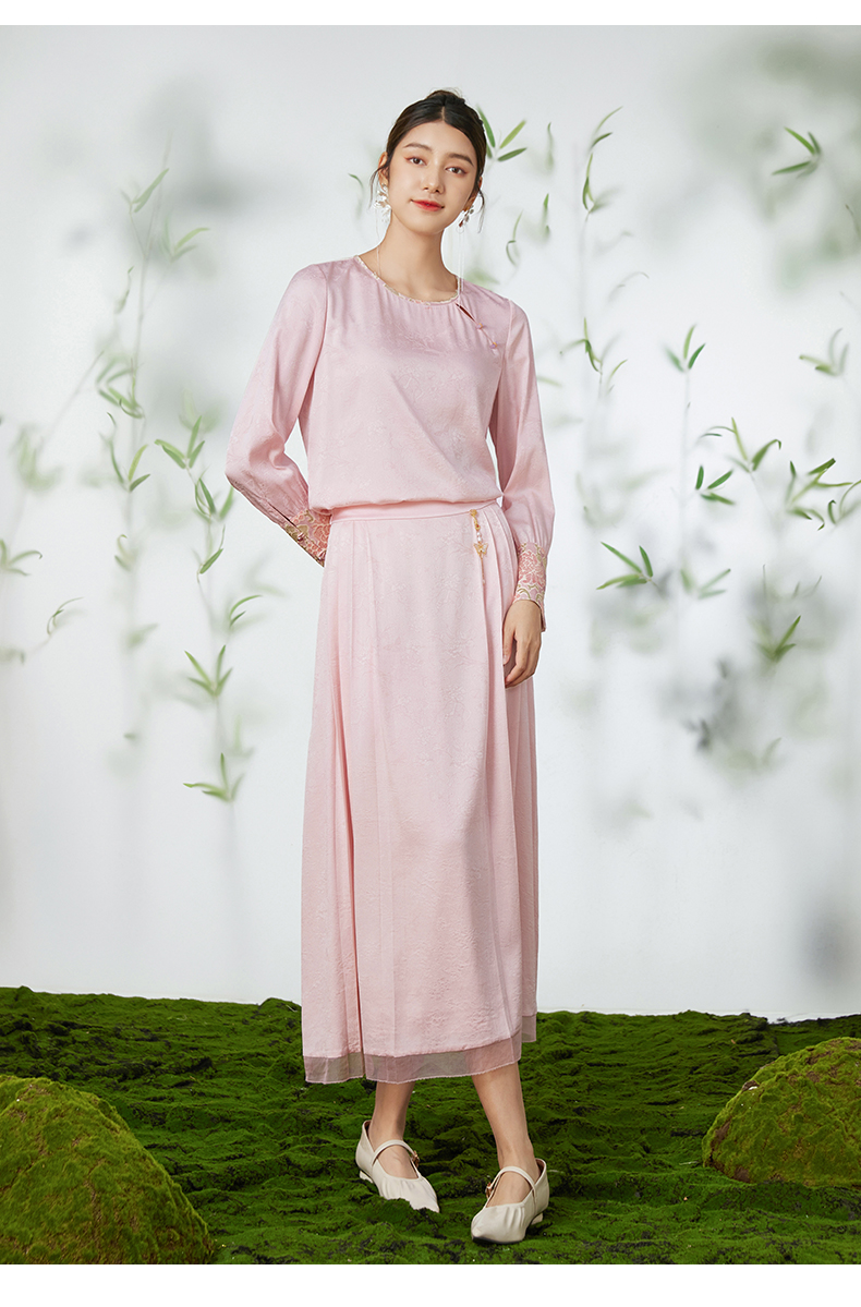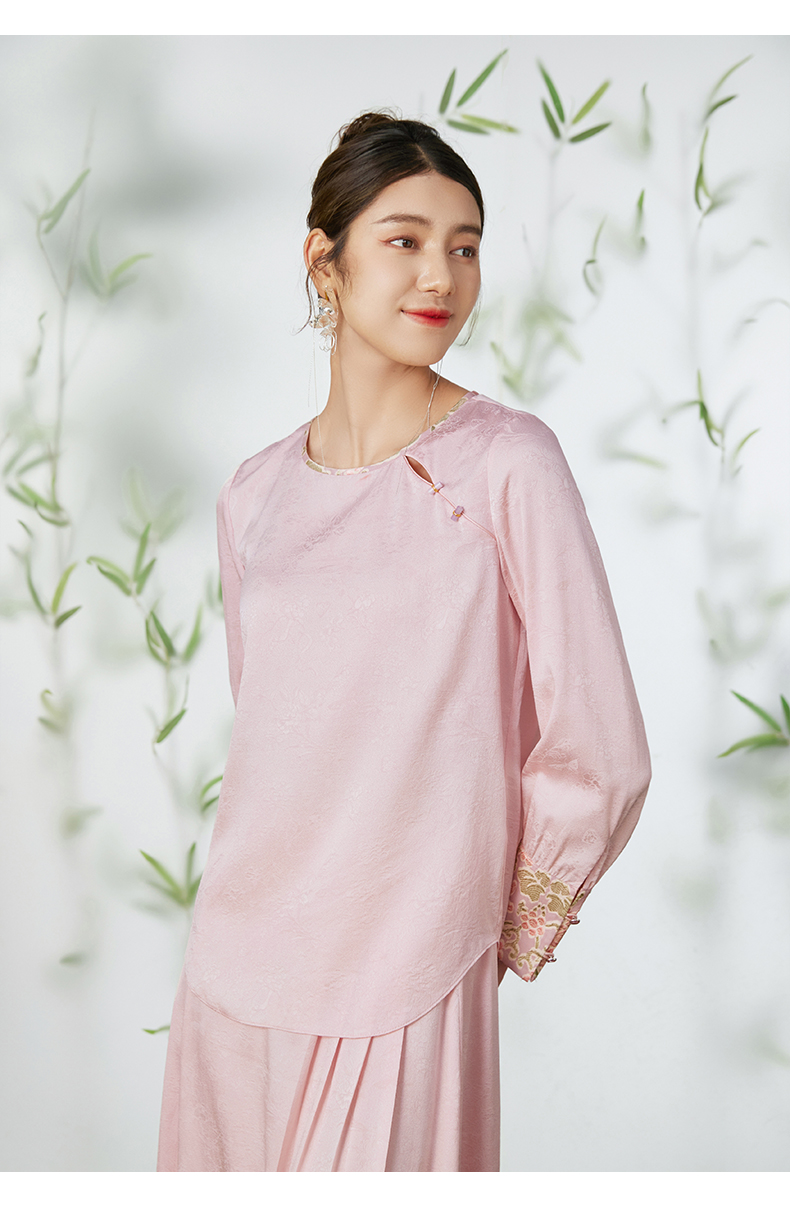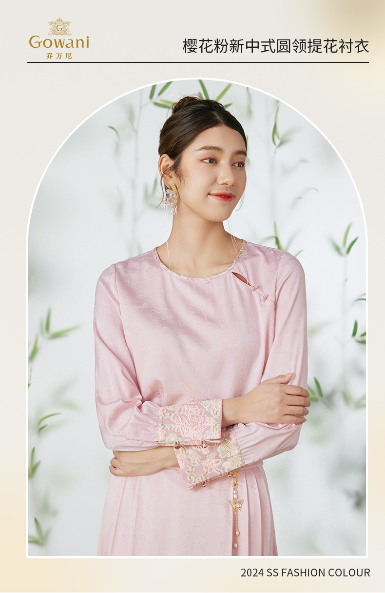 乔万尼真丝衬衫19mm提花缎面国风桑蚕丝上衣EM2C927